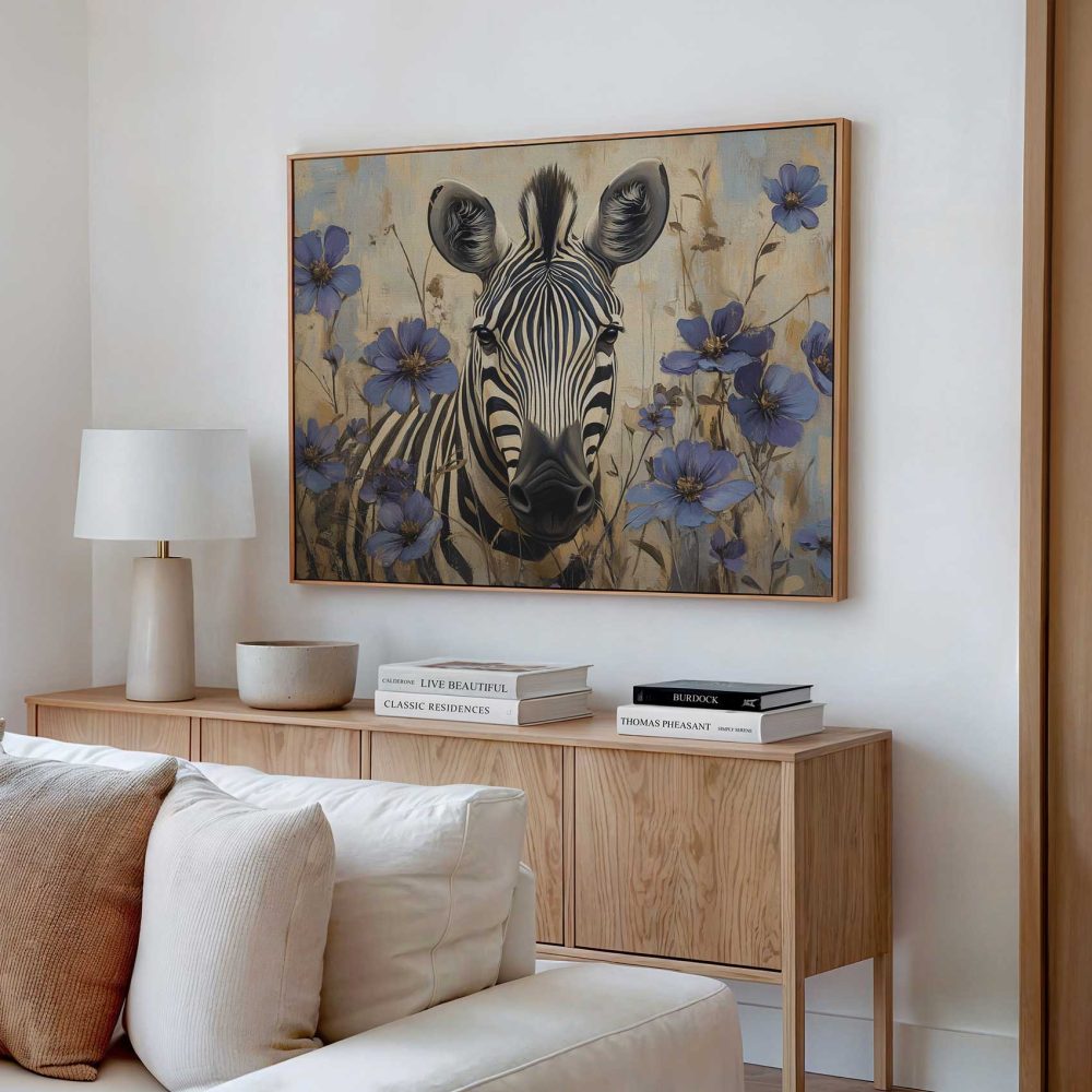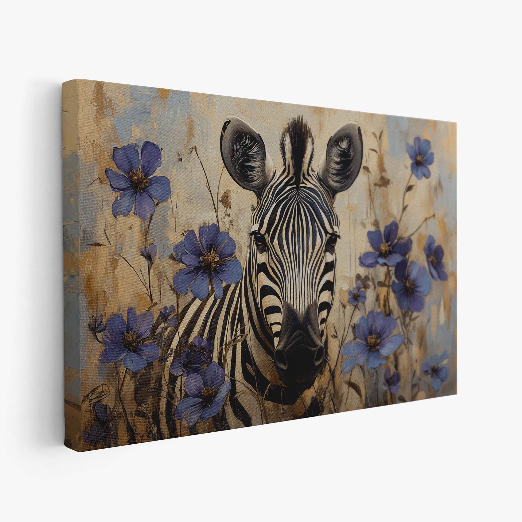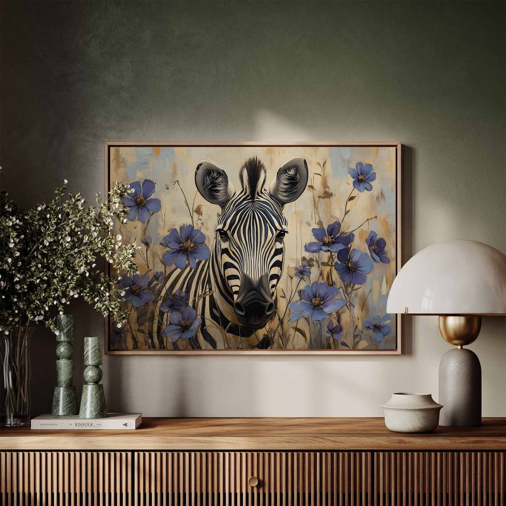 Zebra met blauwe bloemen
