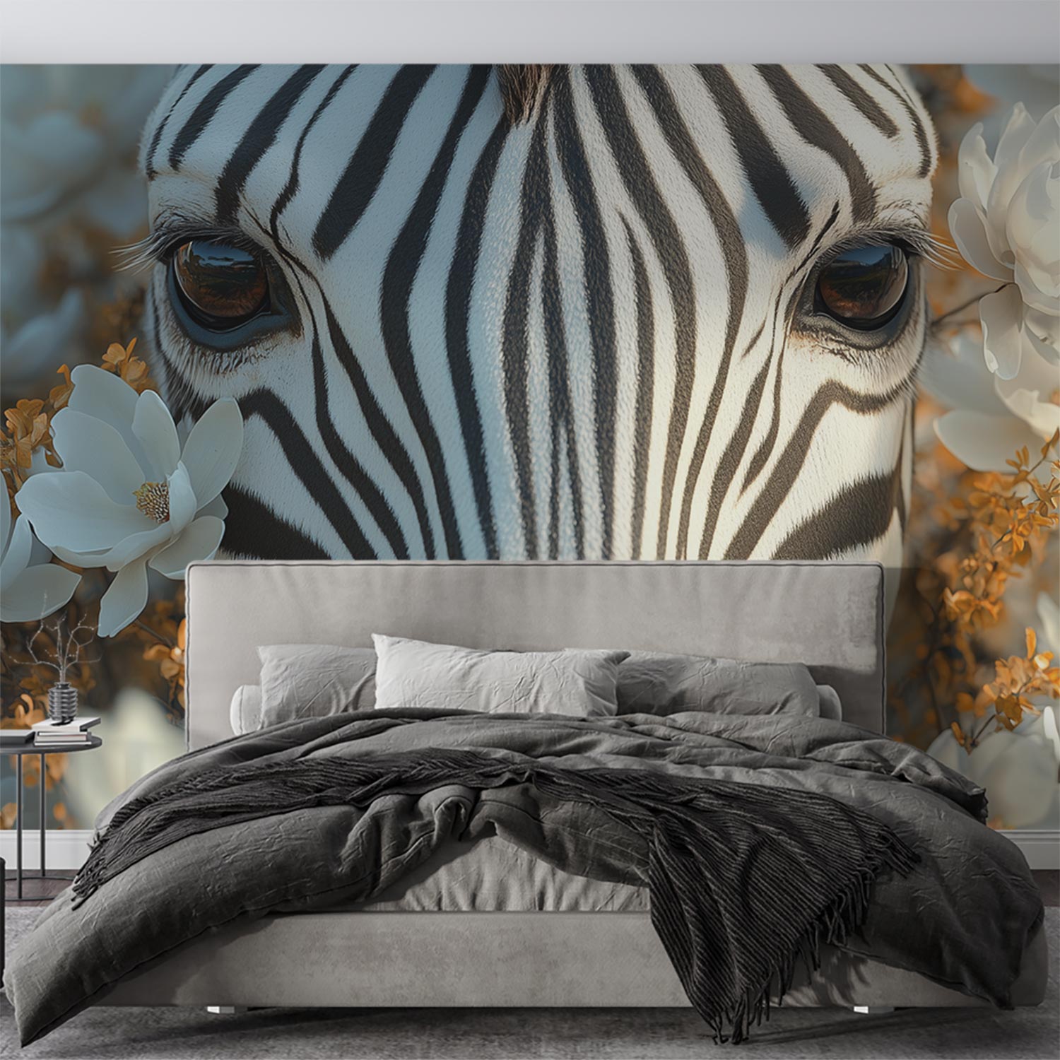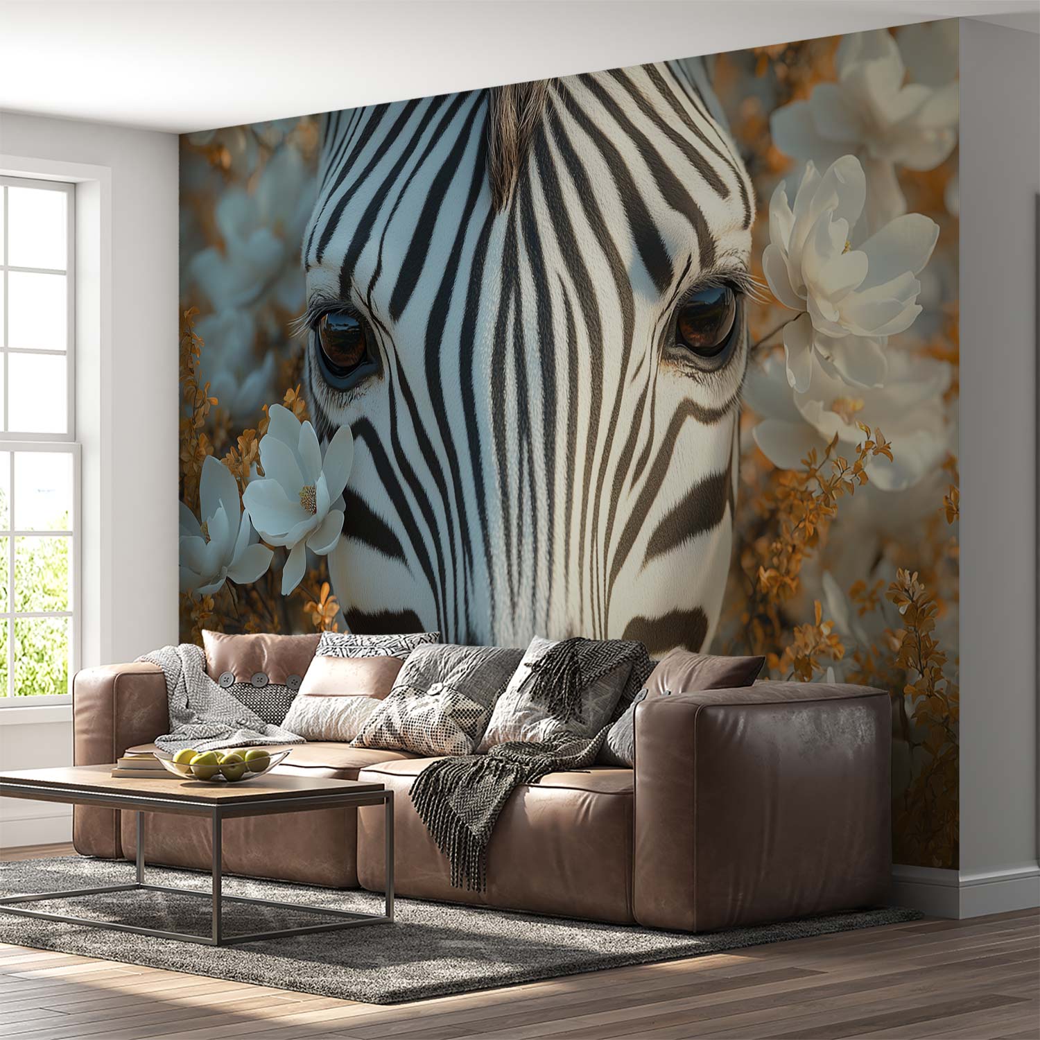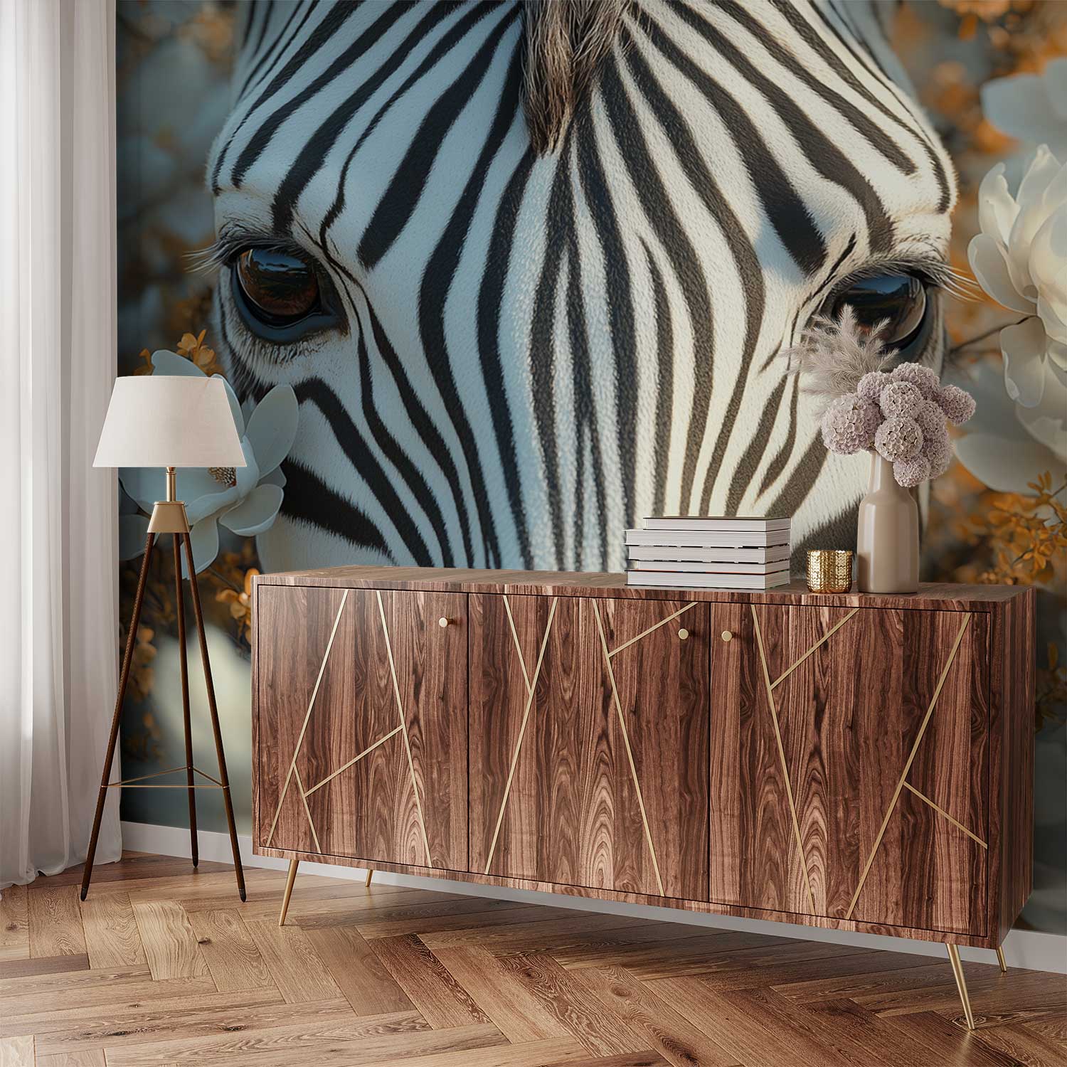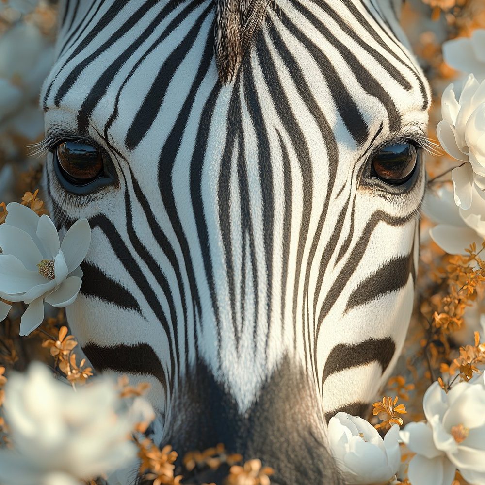 Zebra tussen bloemen behang
