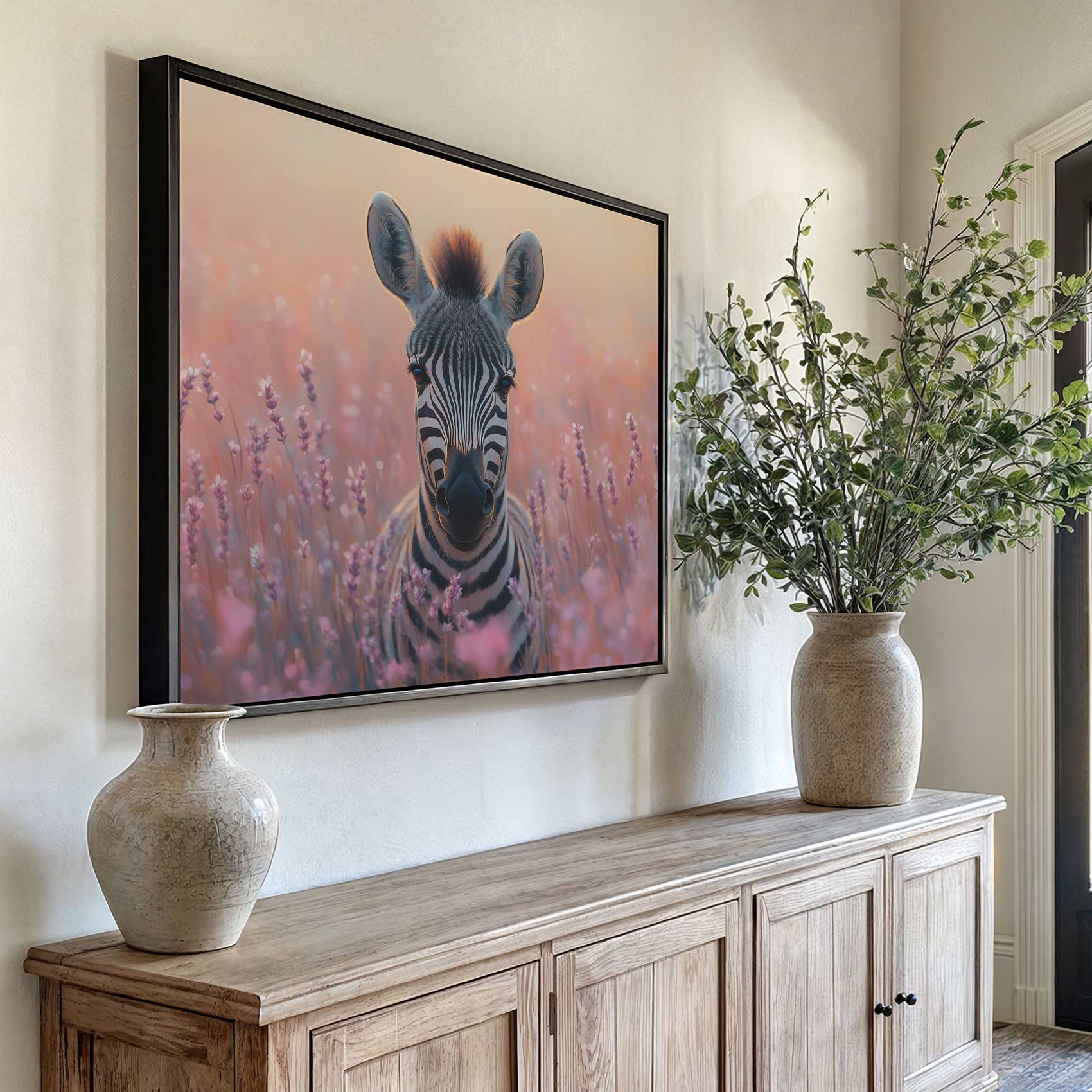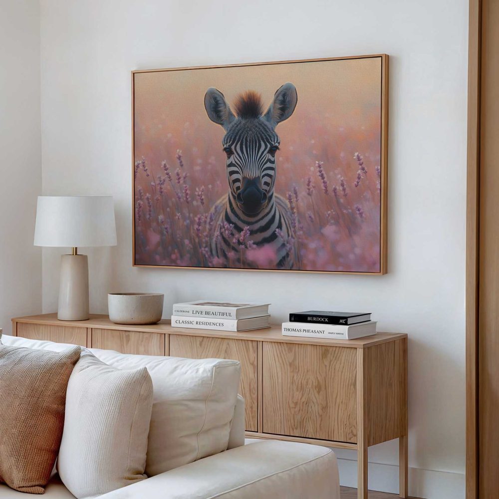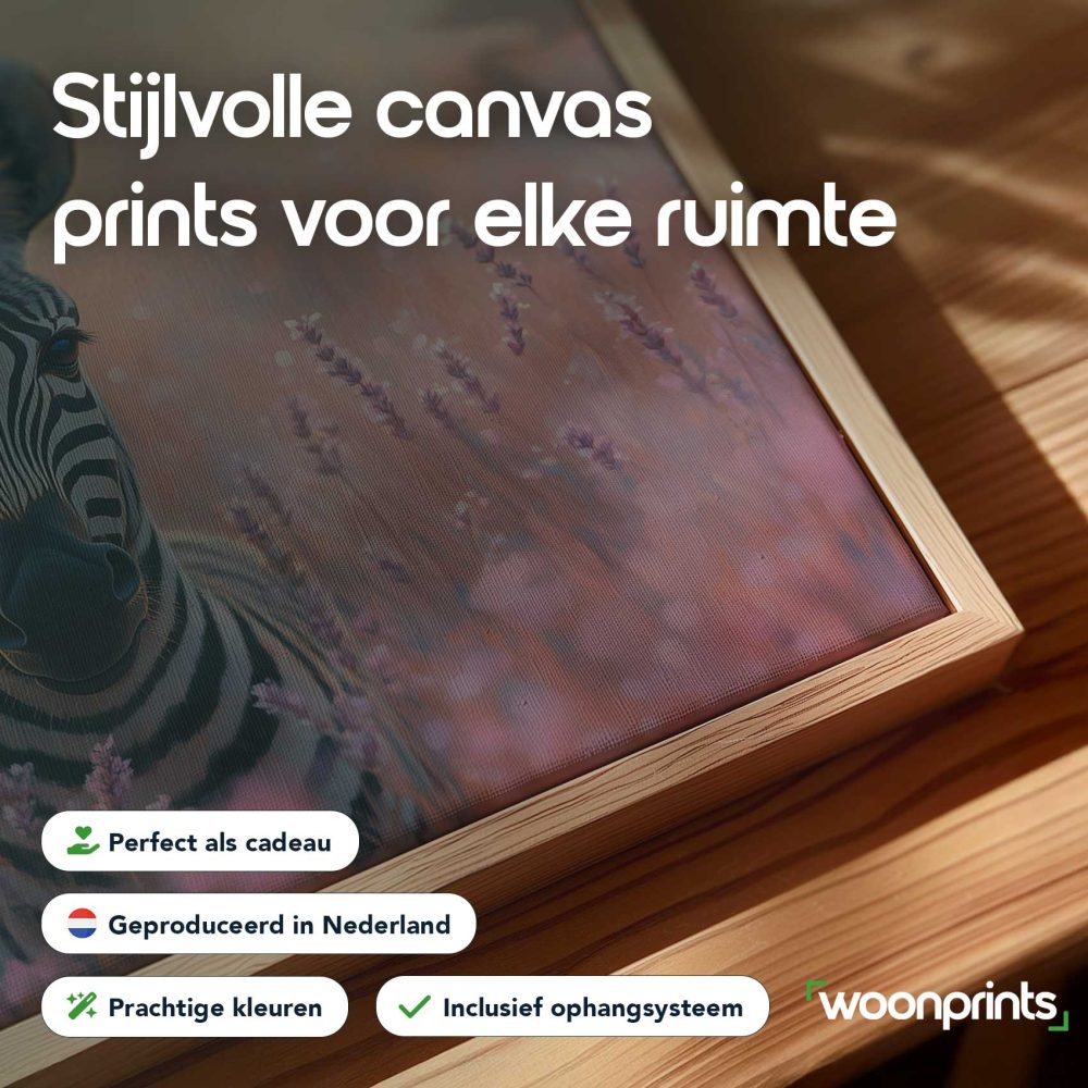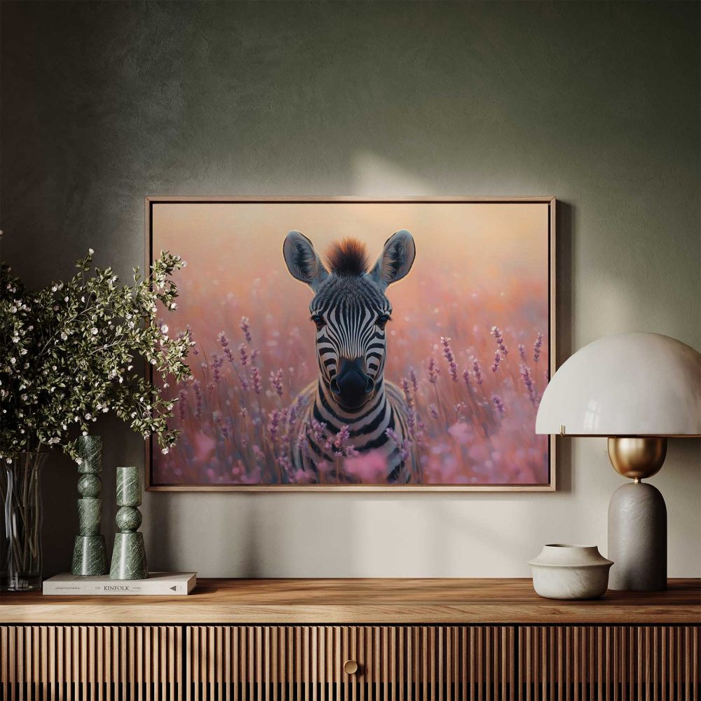 Terug naar collectie / Schilderijen / Bloemen Schilderij / Zebra tussen paarse bloemen