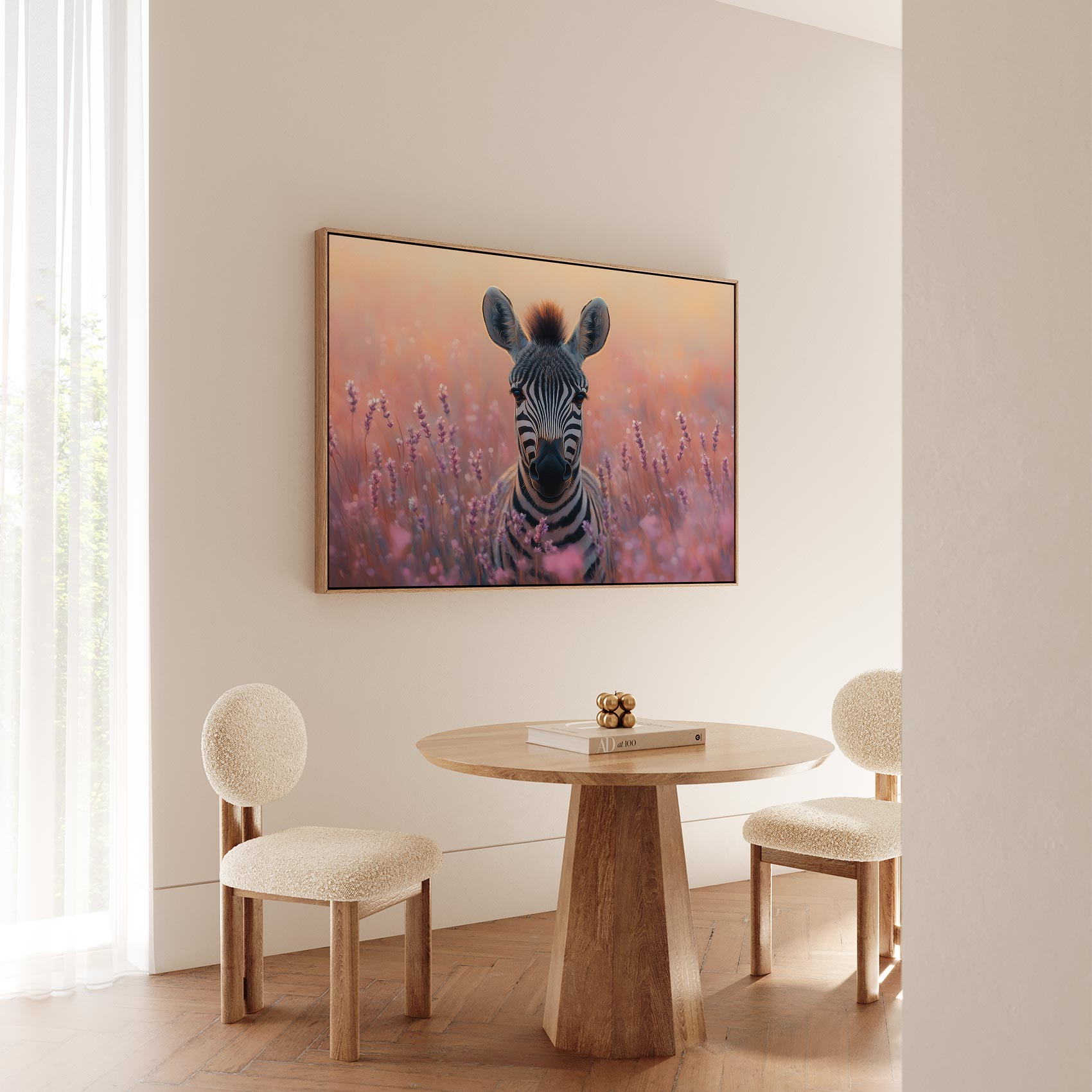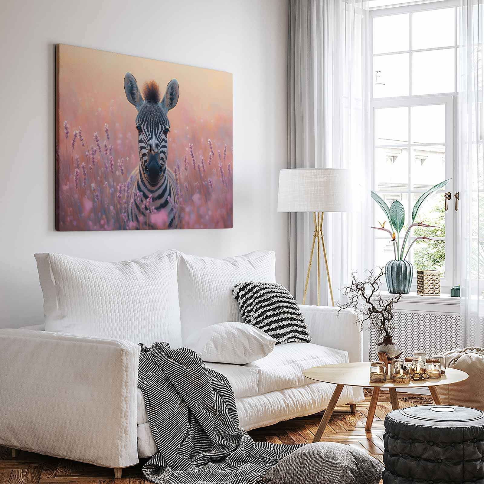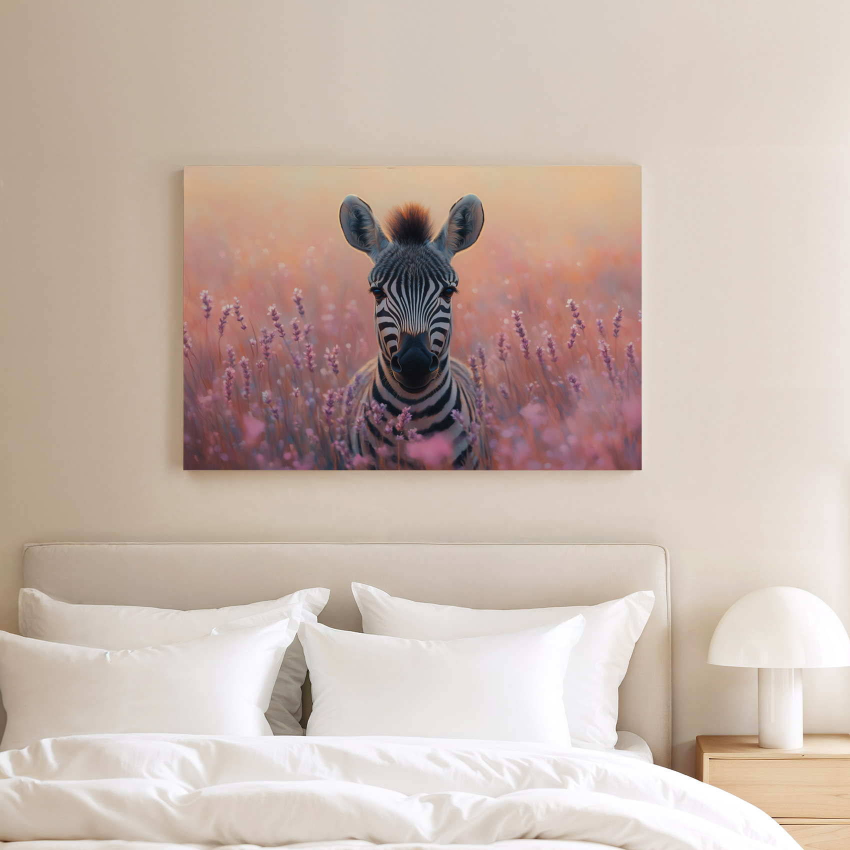 Terug naar collectie / Schilderijen / Bloemen Schilderij / Zebra tussen paarse bloemen