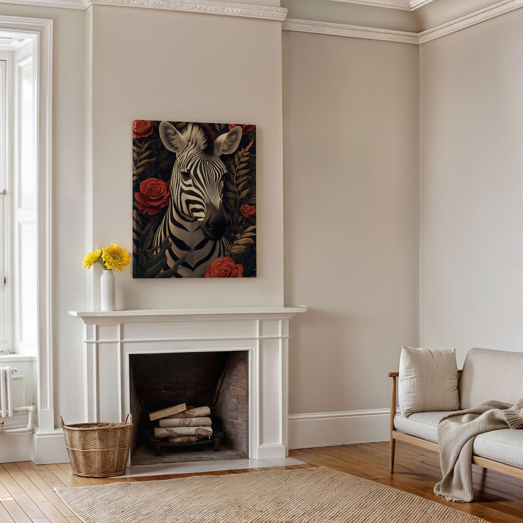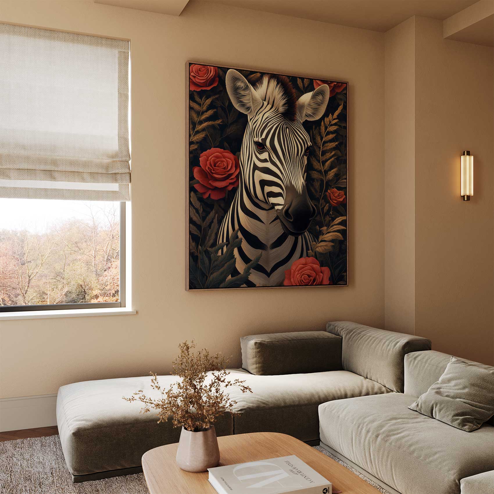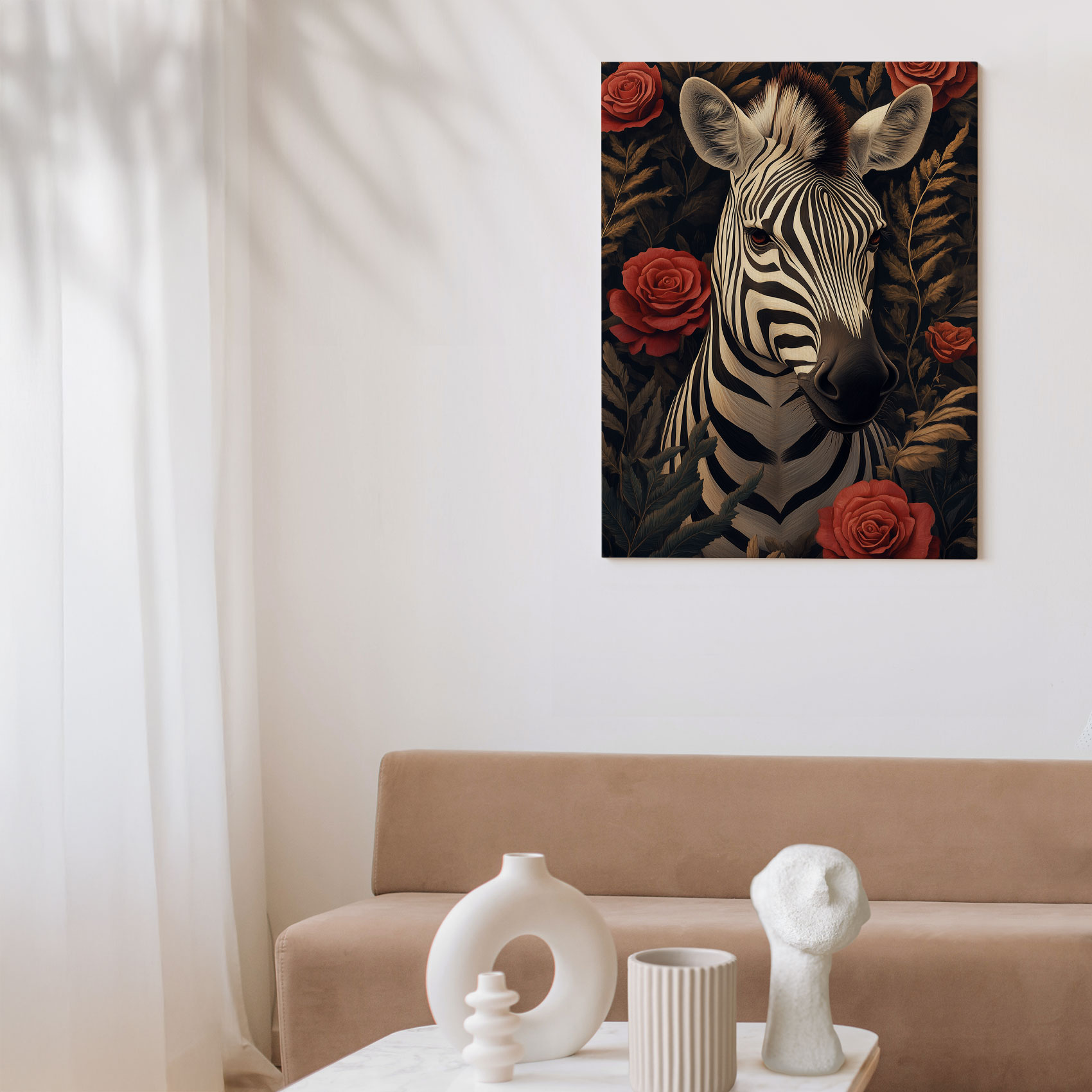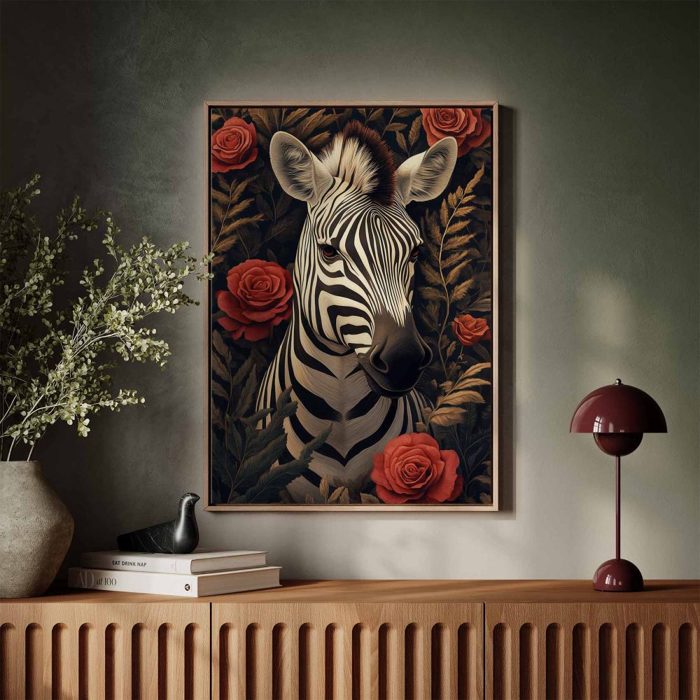 Zebra tussen rode rozen