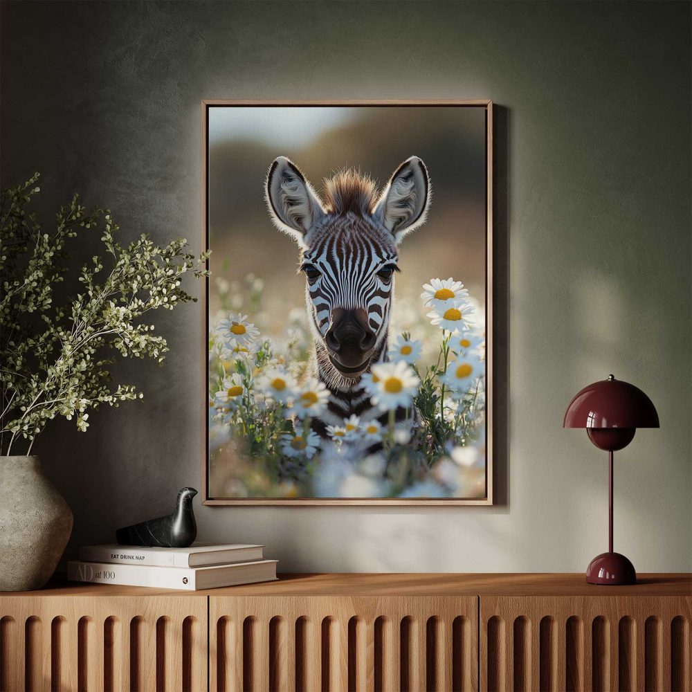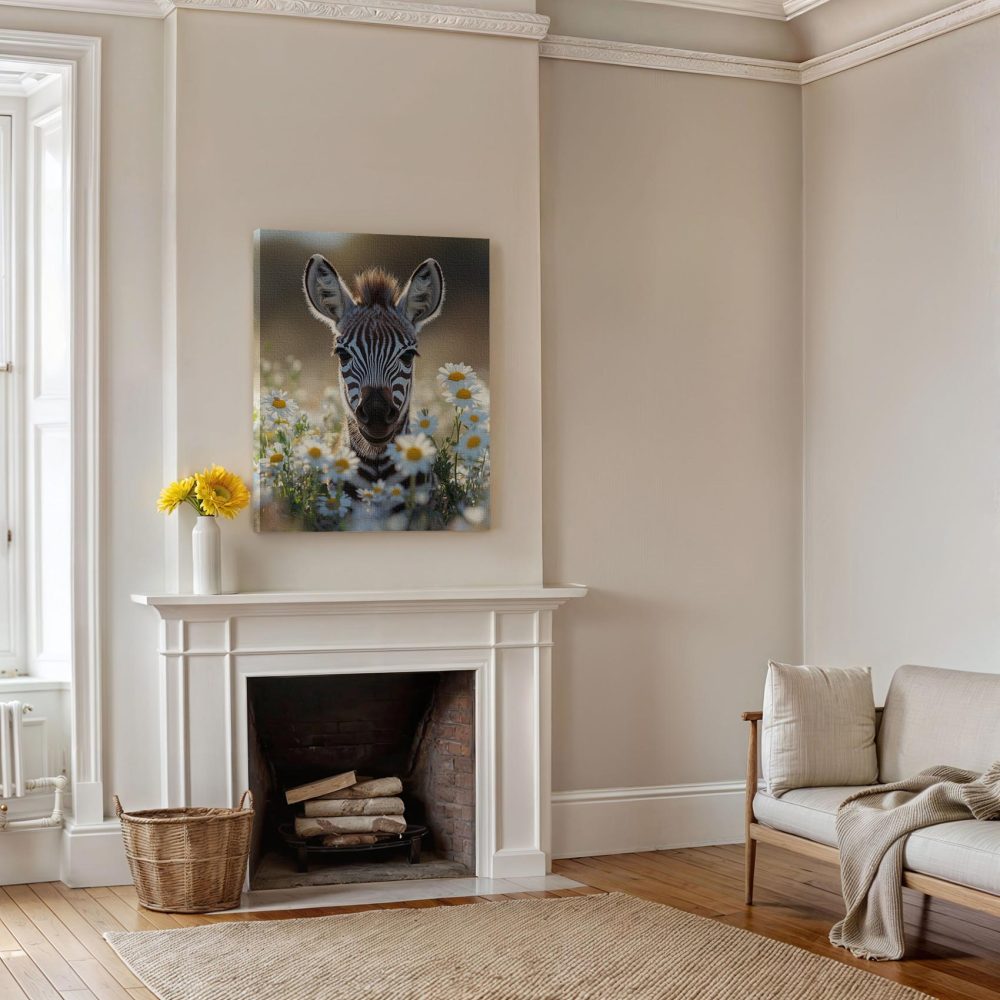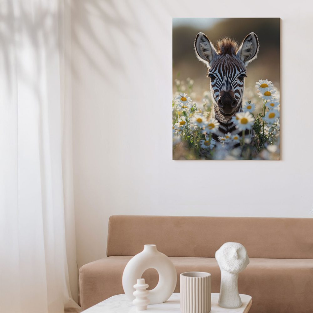Terug naar collectie / Schilderijen / Bloemen Schilderij / Zebra tussen witte madeliefjes