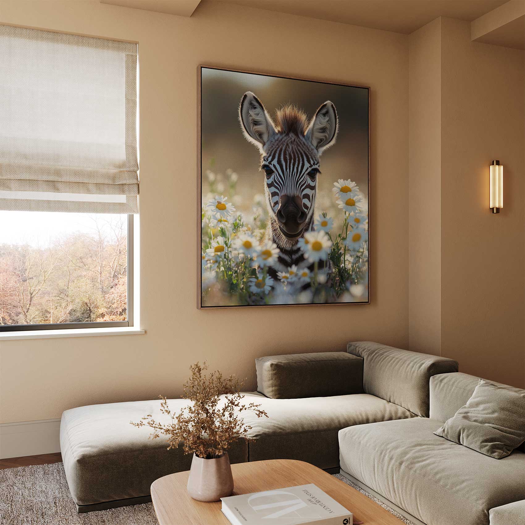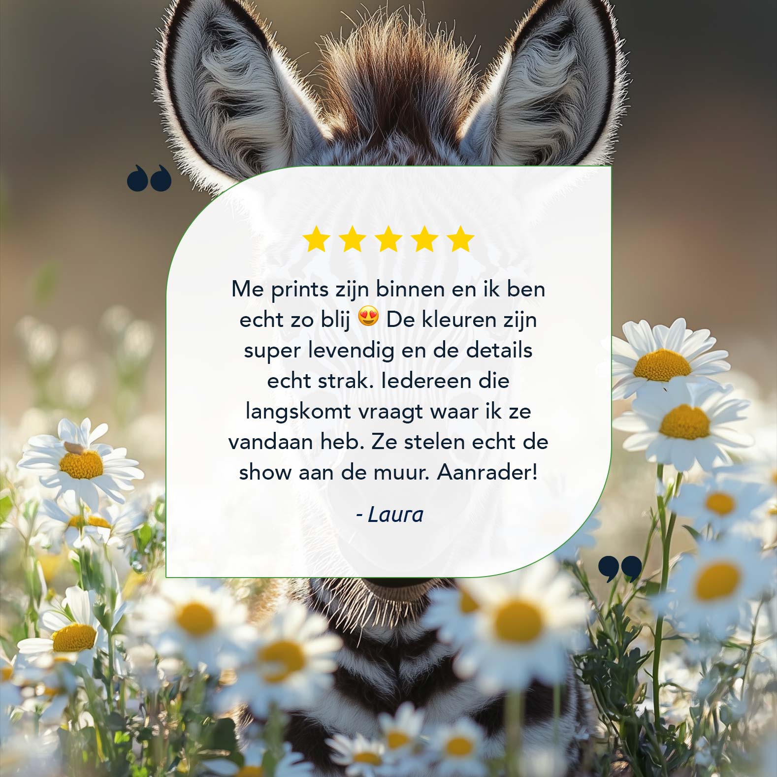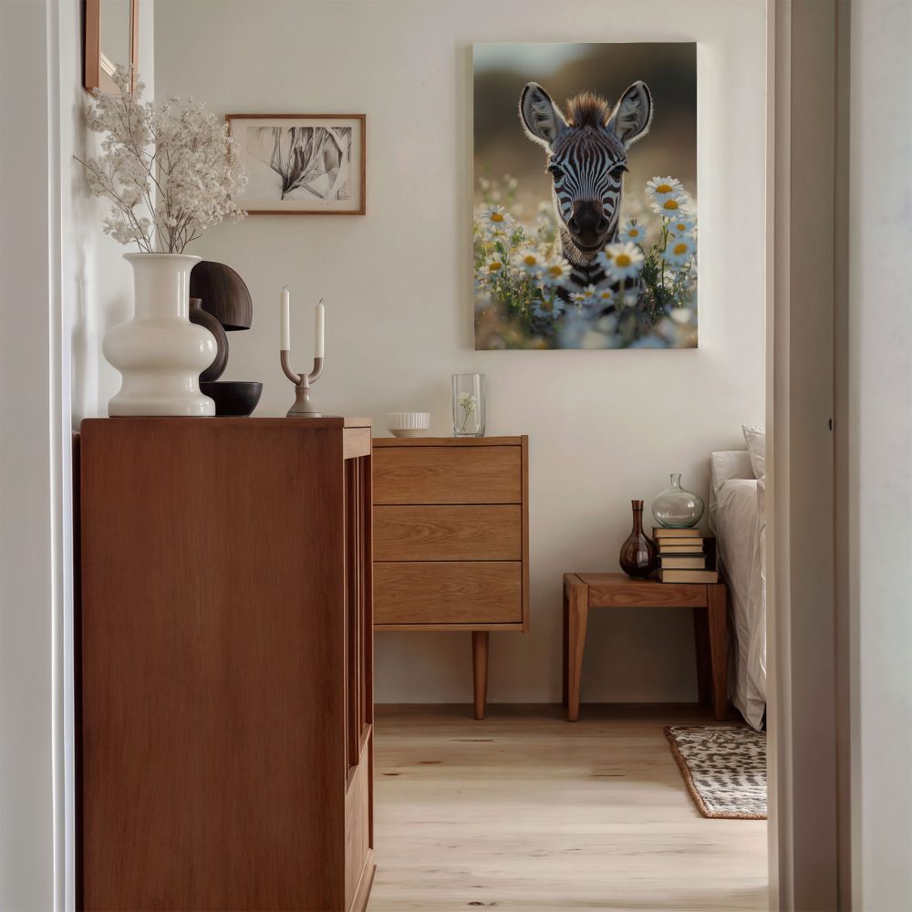Terug naar collectie / Schilderijen / Bloemen Schilderij / Zebra tussen witte madeliefjes