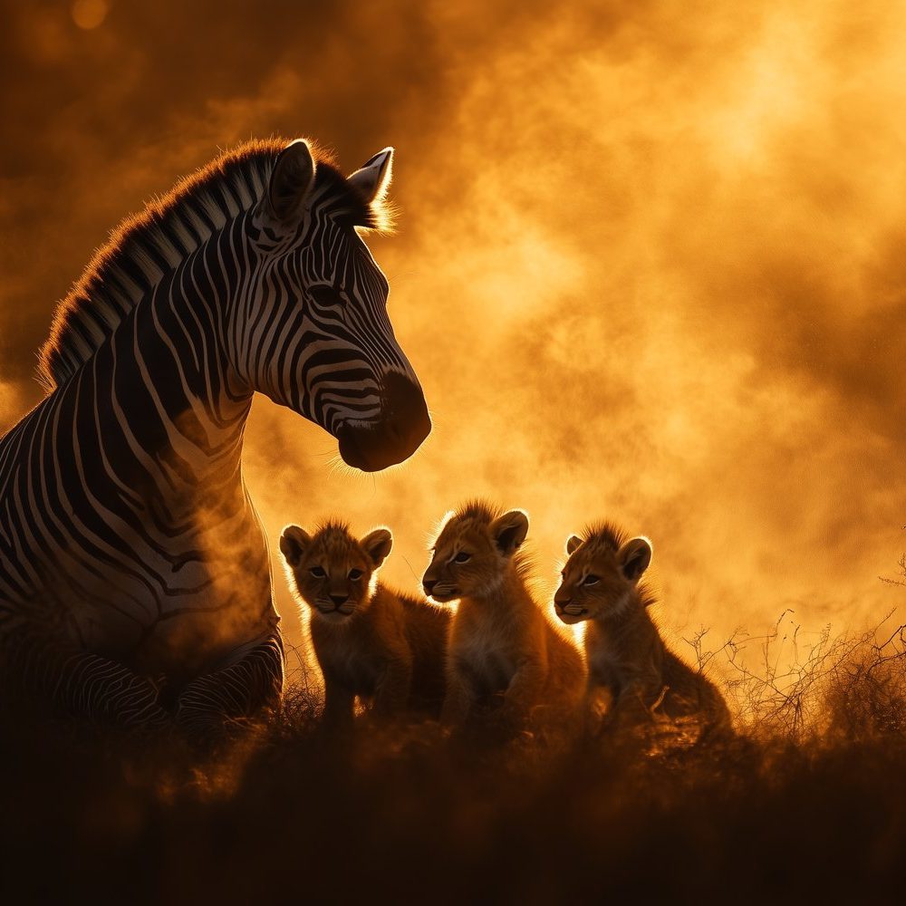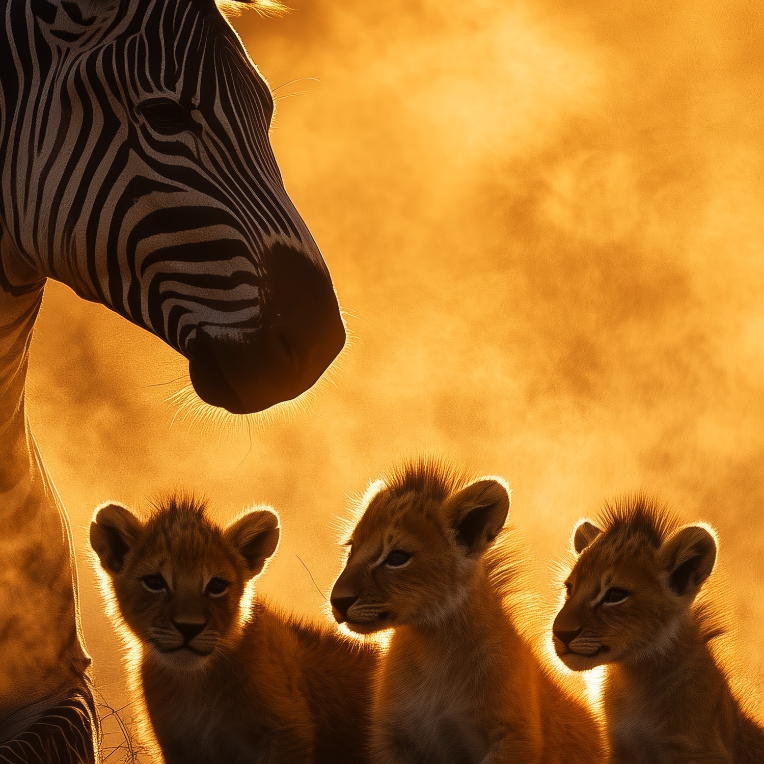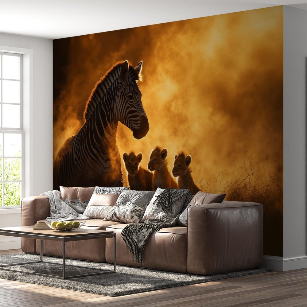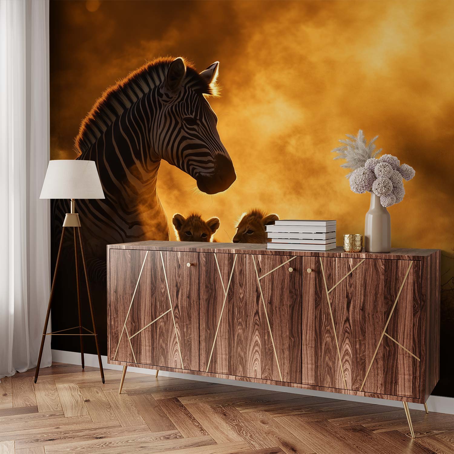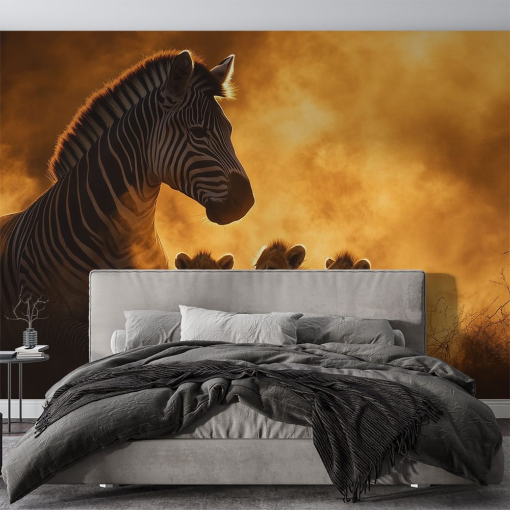 Terug naar collectie / Behang / Zebra’s in gouden savanne behang
