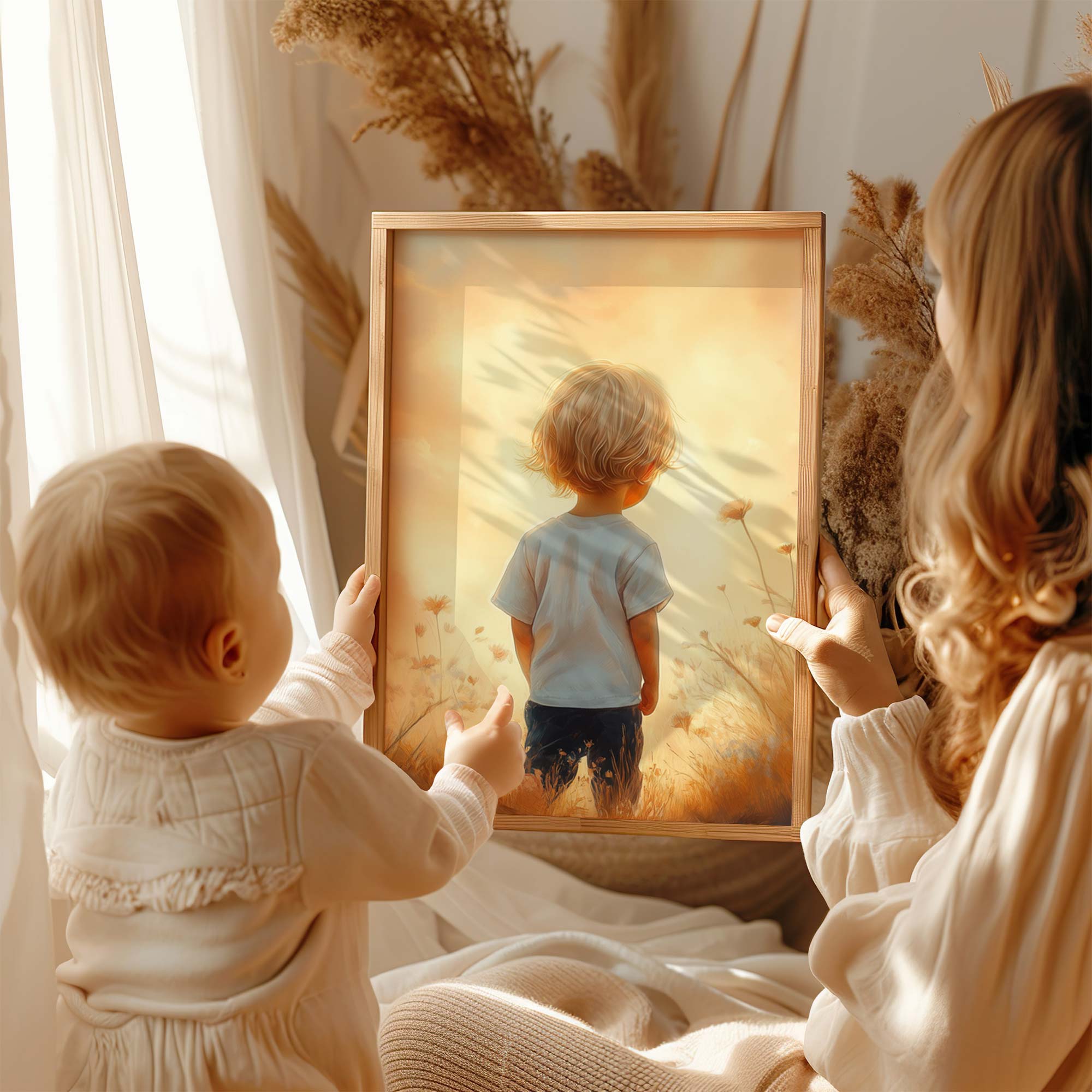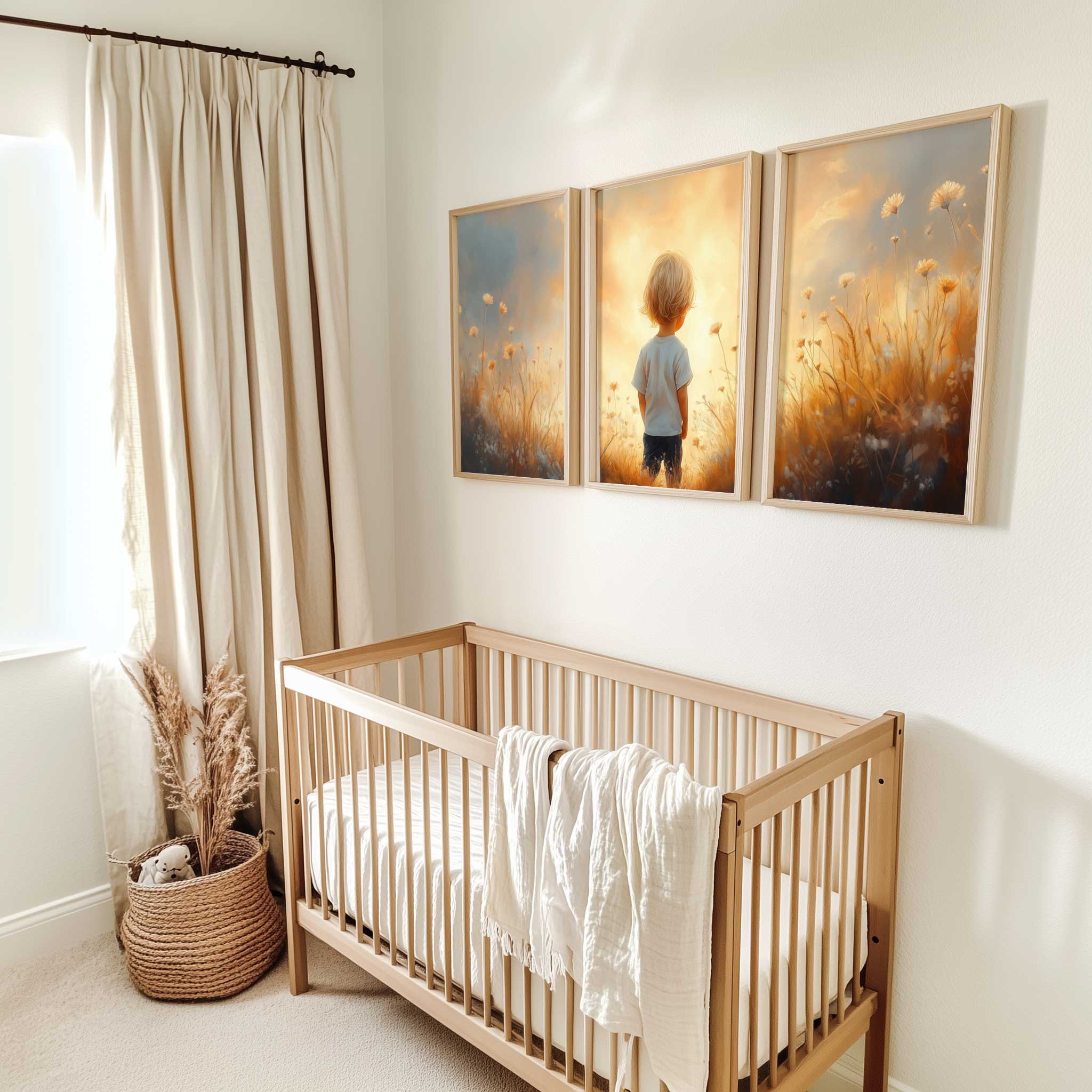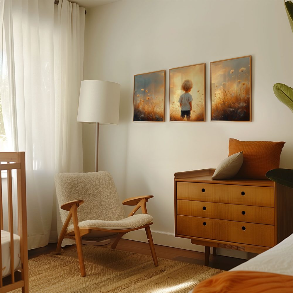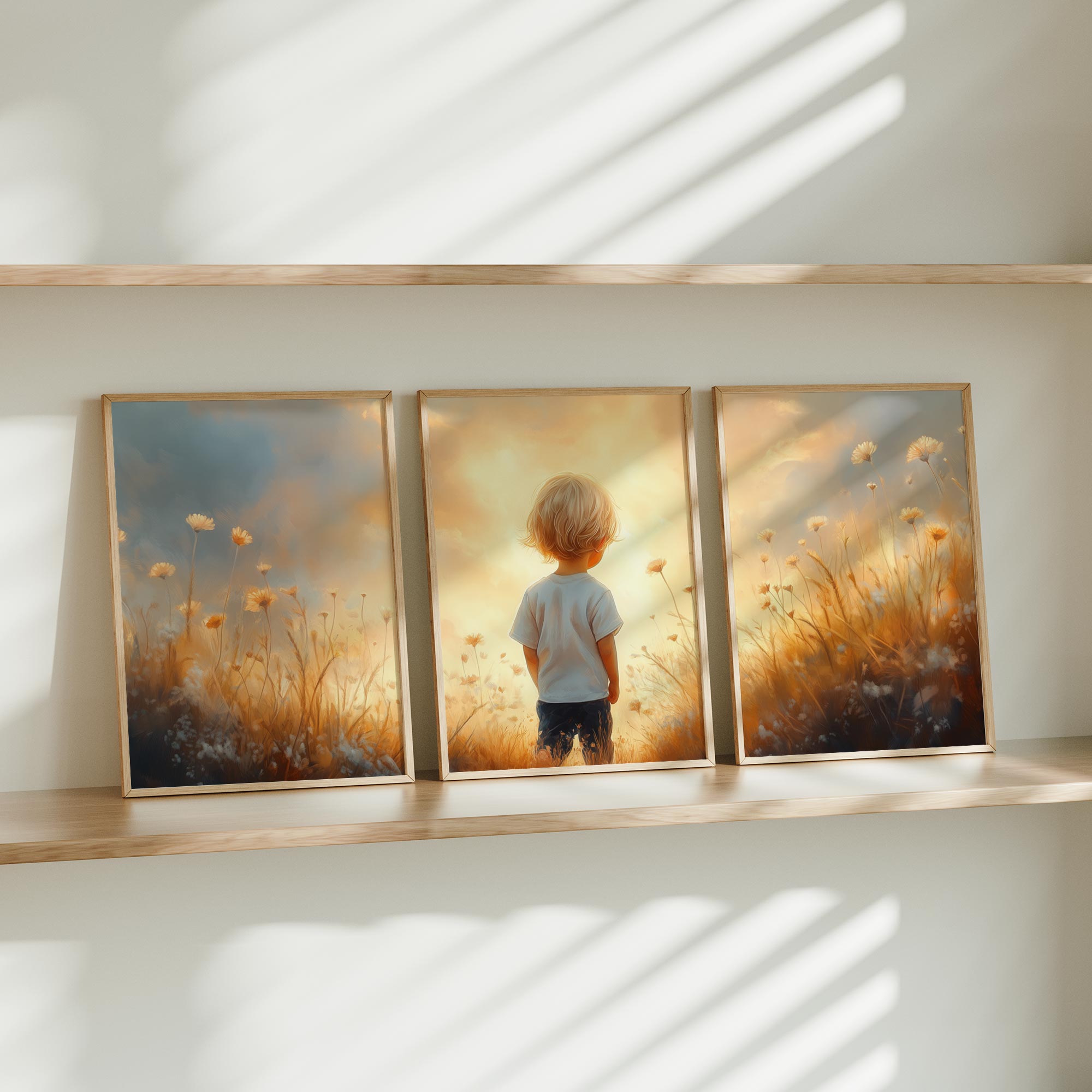 Terug naar collectie / Kinderkamer posters / Bloemen posters / Zonnig Bloemenveld met Dromerige Jongen