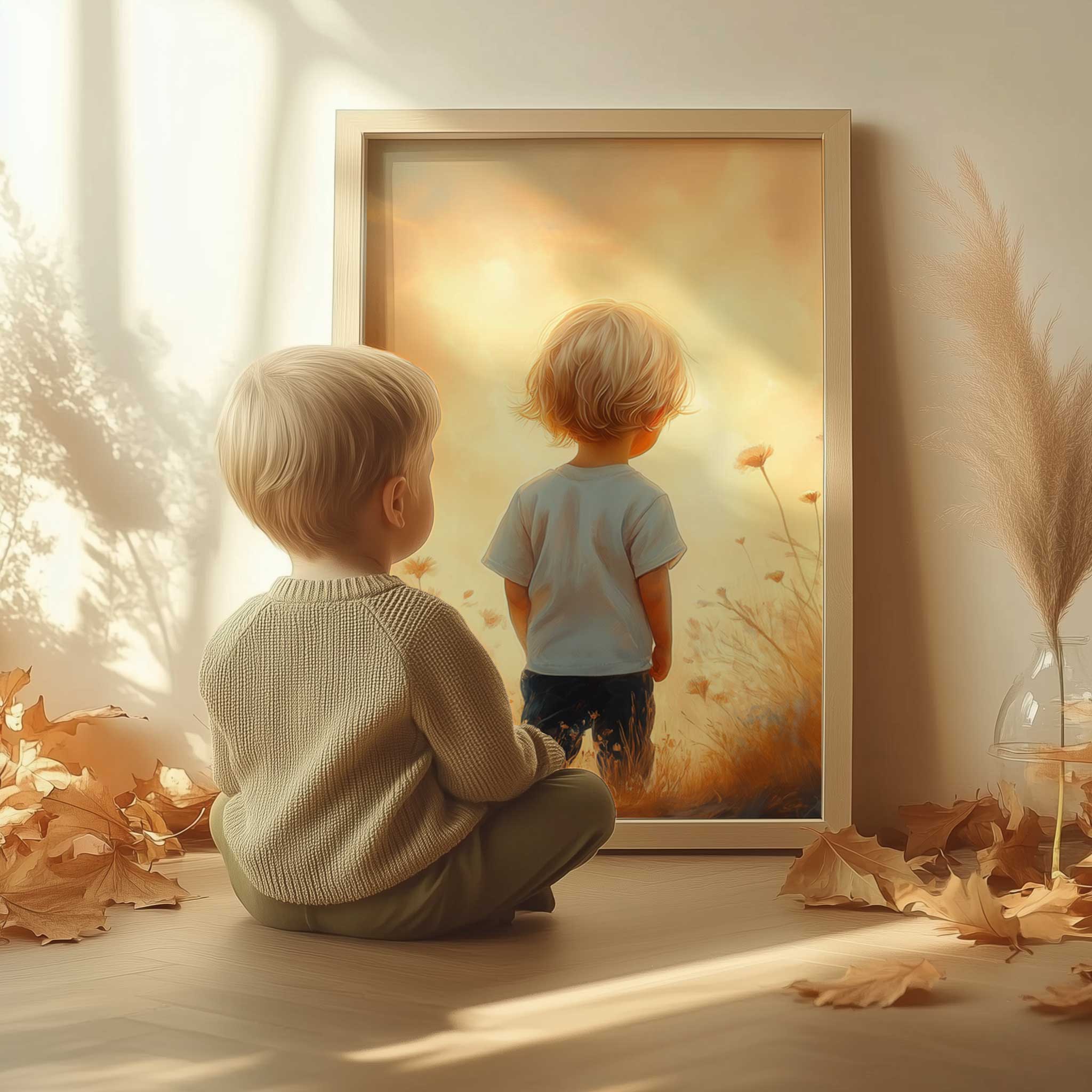 Zonnig Bloemenveld met Dromerige Jongen