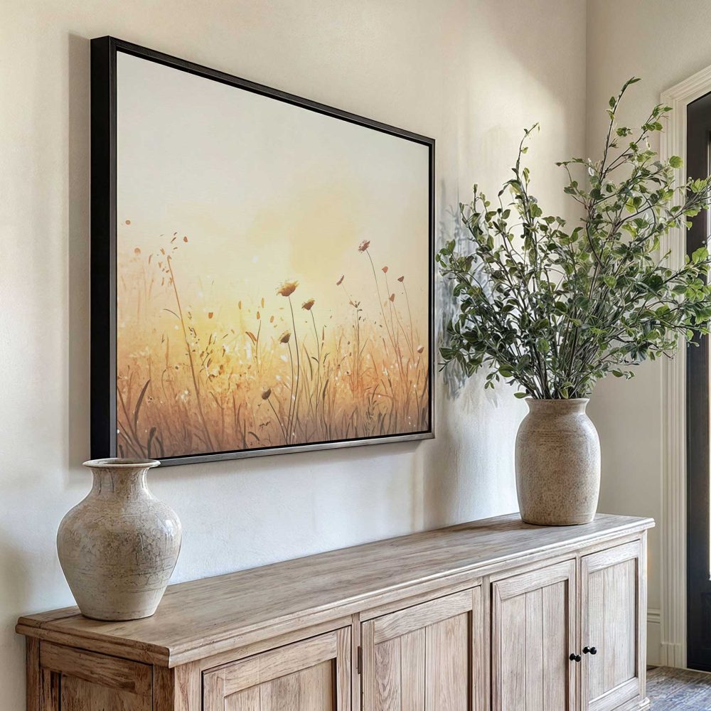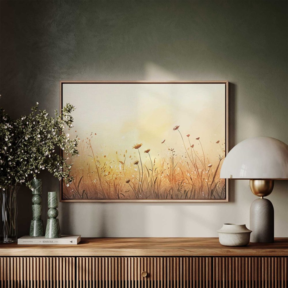 Terug naar collectie / Schilderijen / Bloemen Schilderij / Zonnig bloemenveld waterverfschilderij