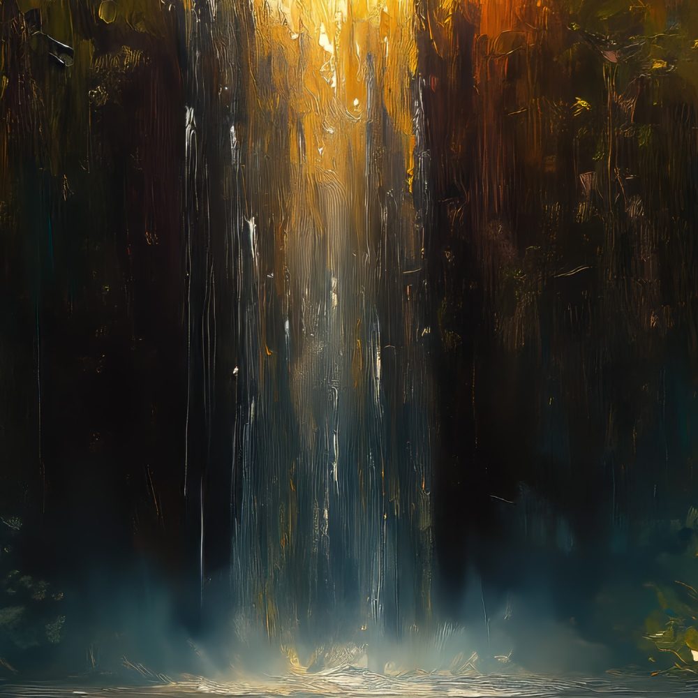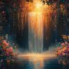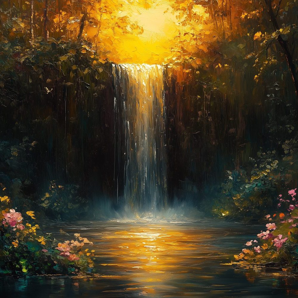 Terug naar collectie / Behang / Zonnig boswaterval schilderij behang