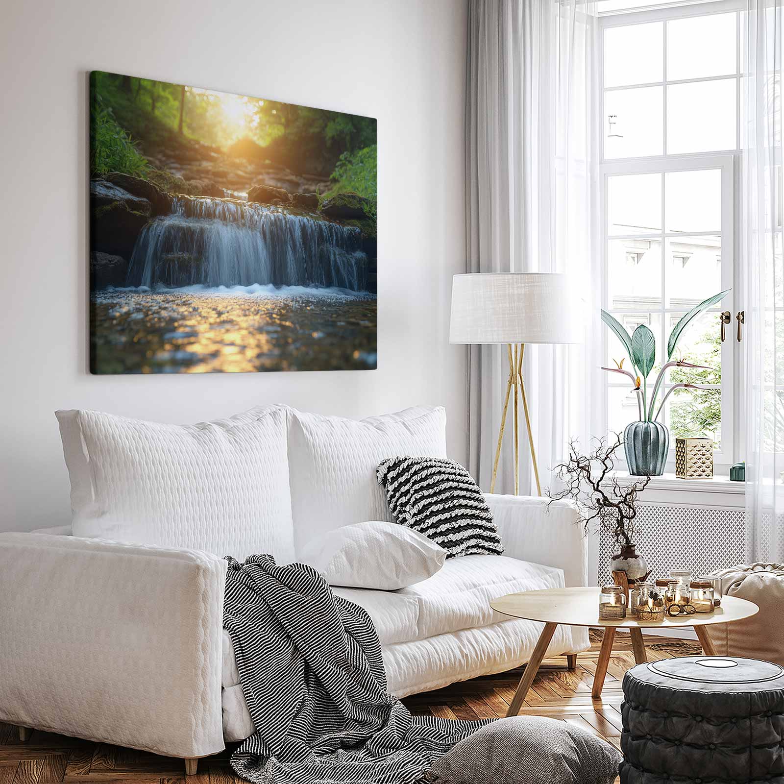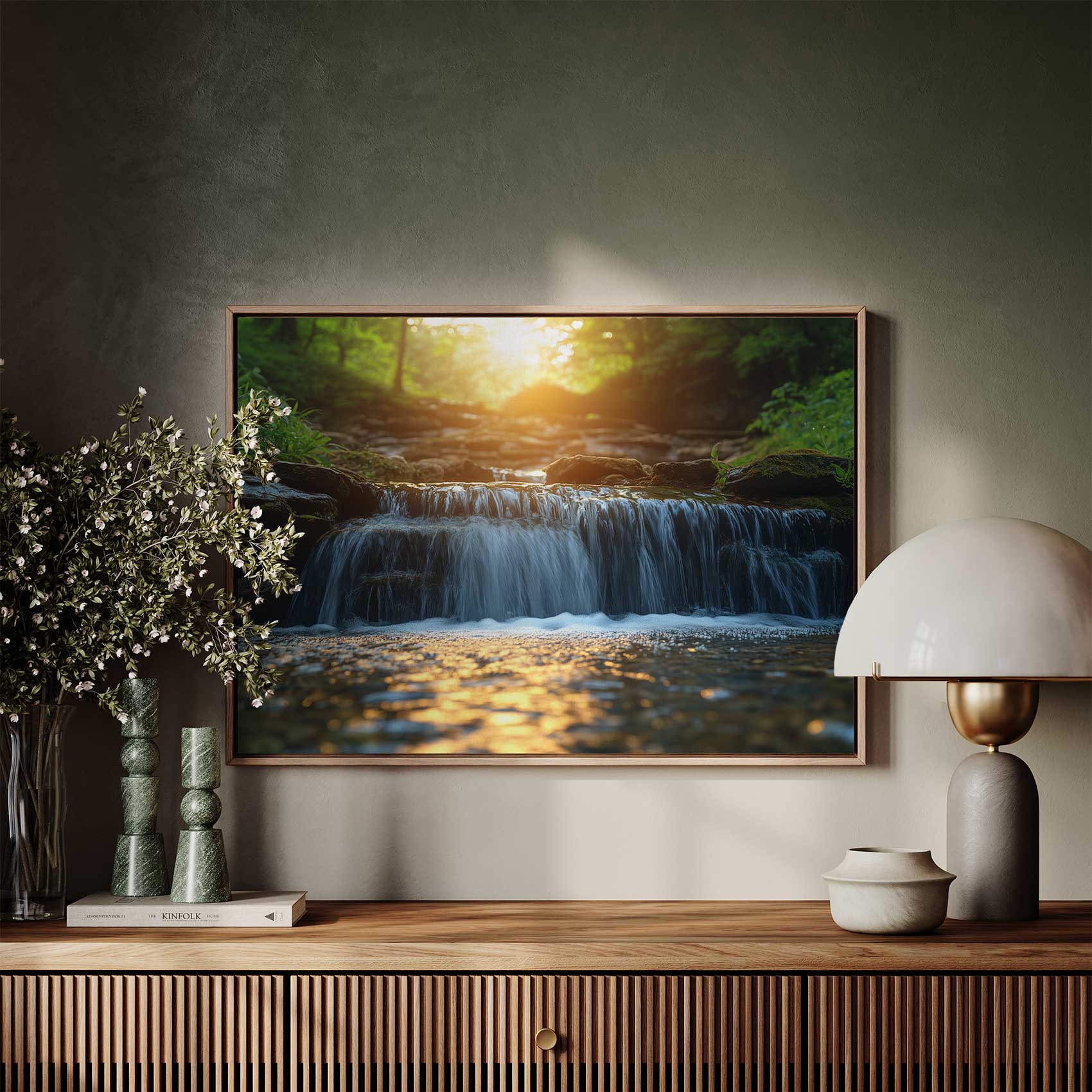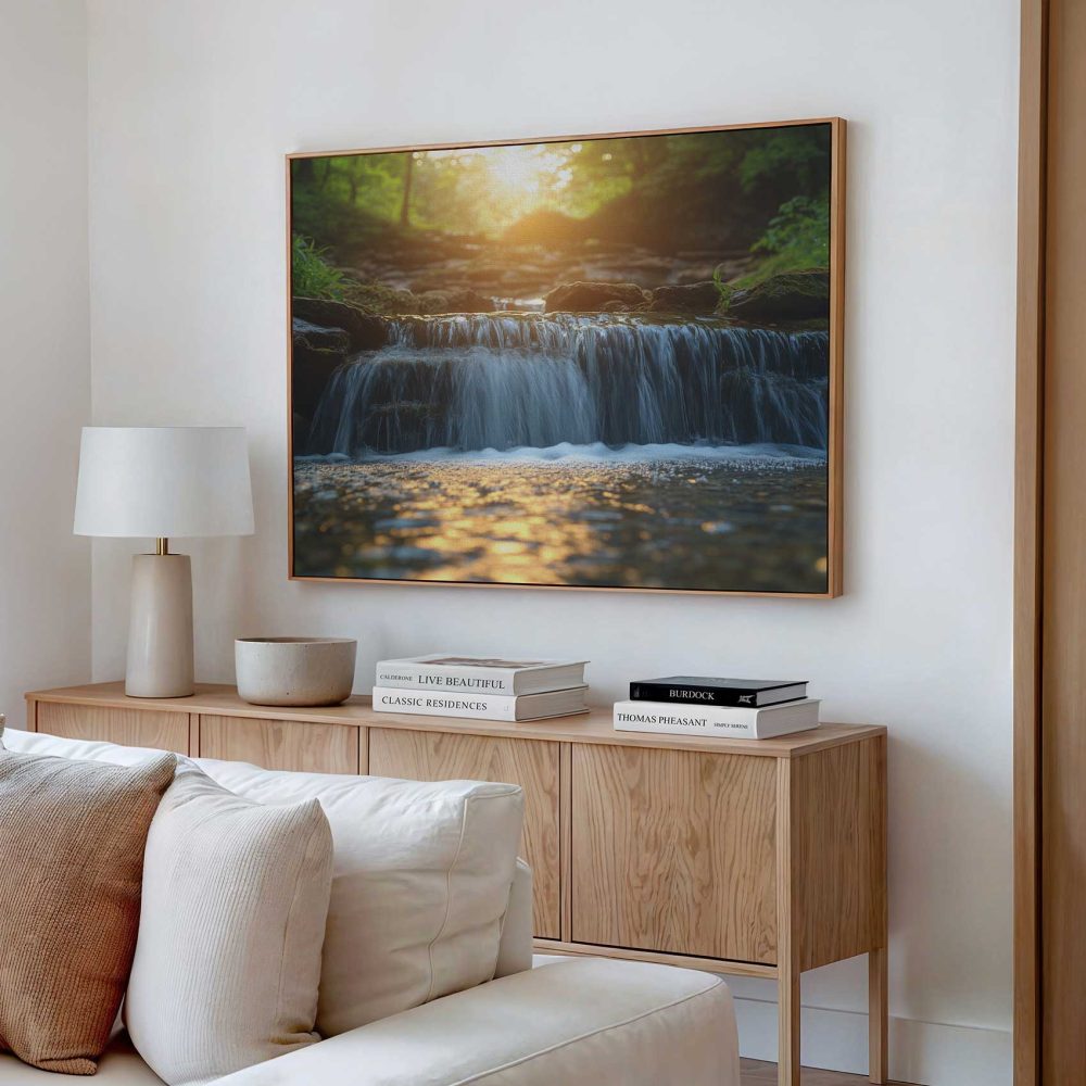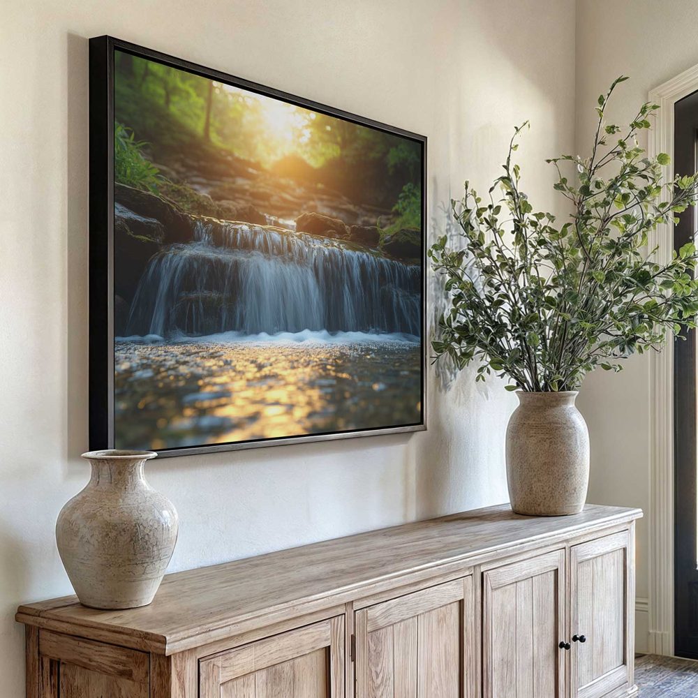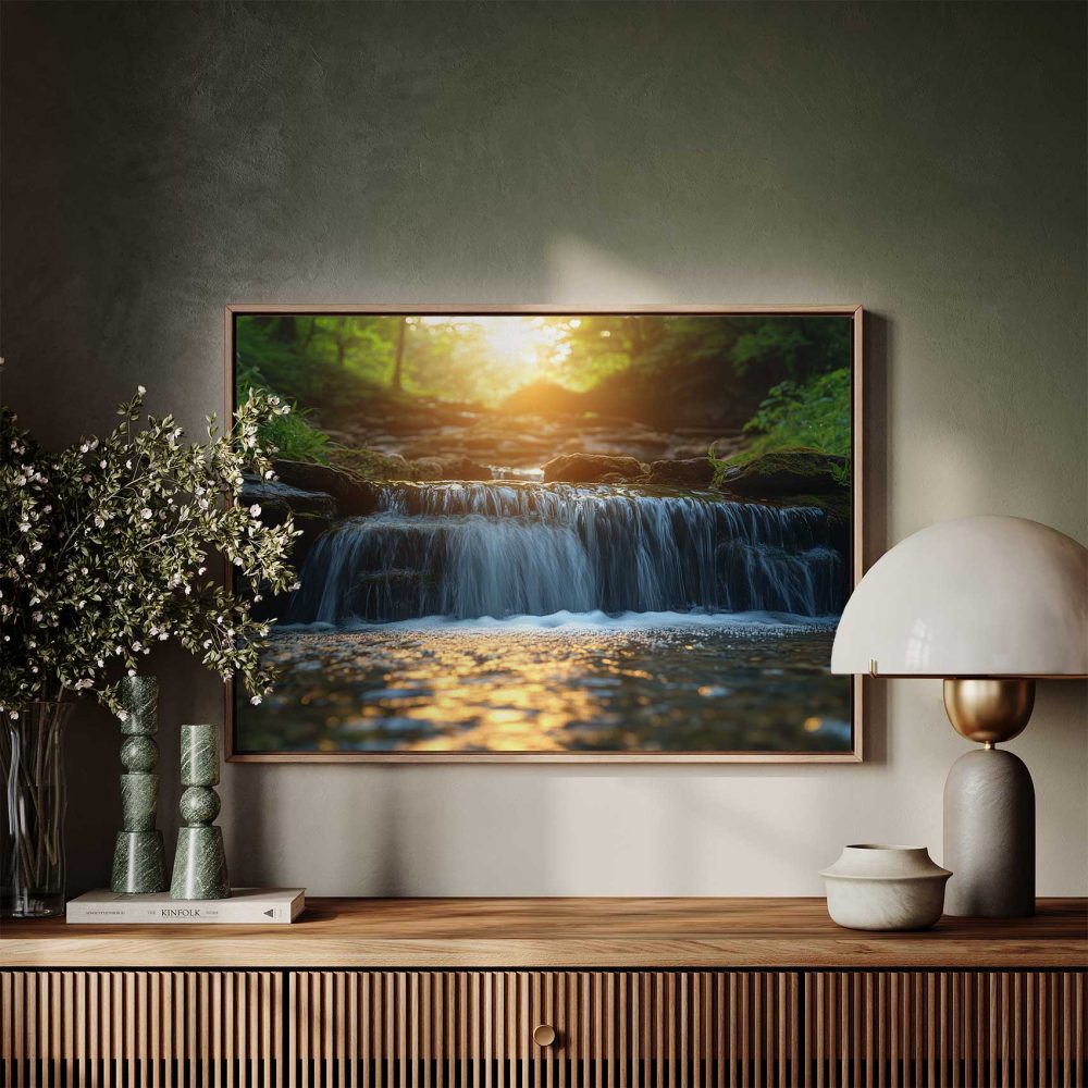 Terug naar collectie / Schilderijen / Bloemen Schilderij / Zonnig boswaterval tafereel