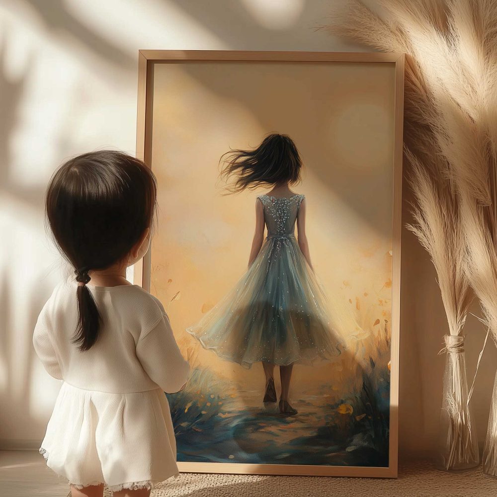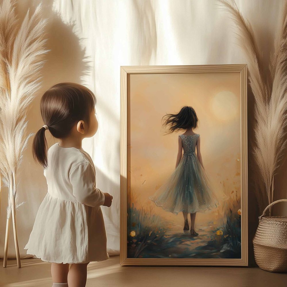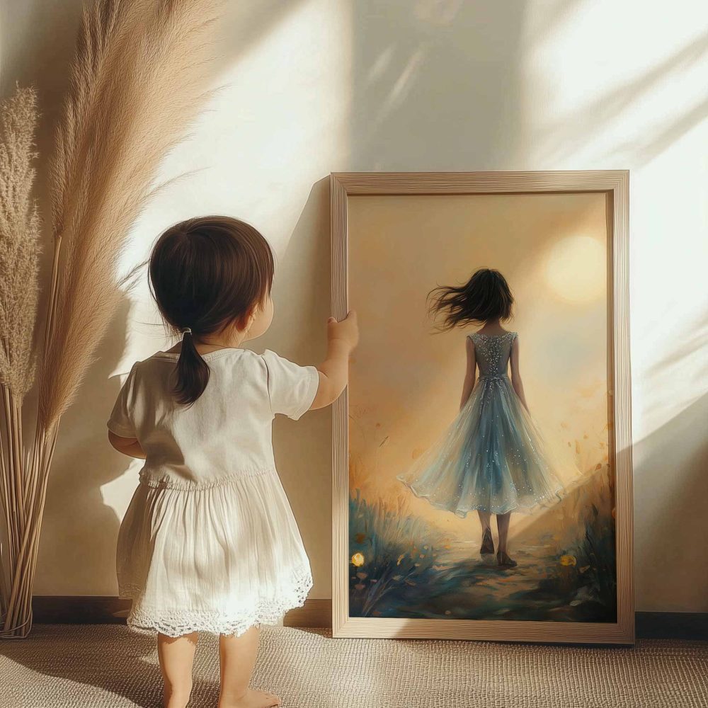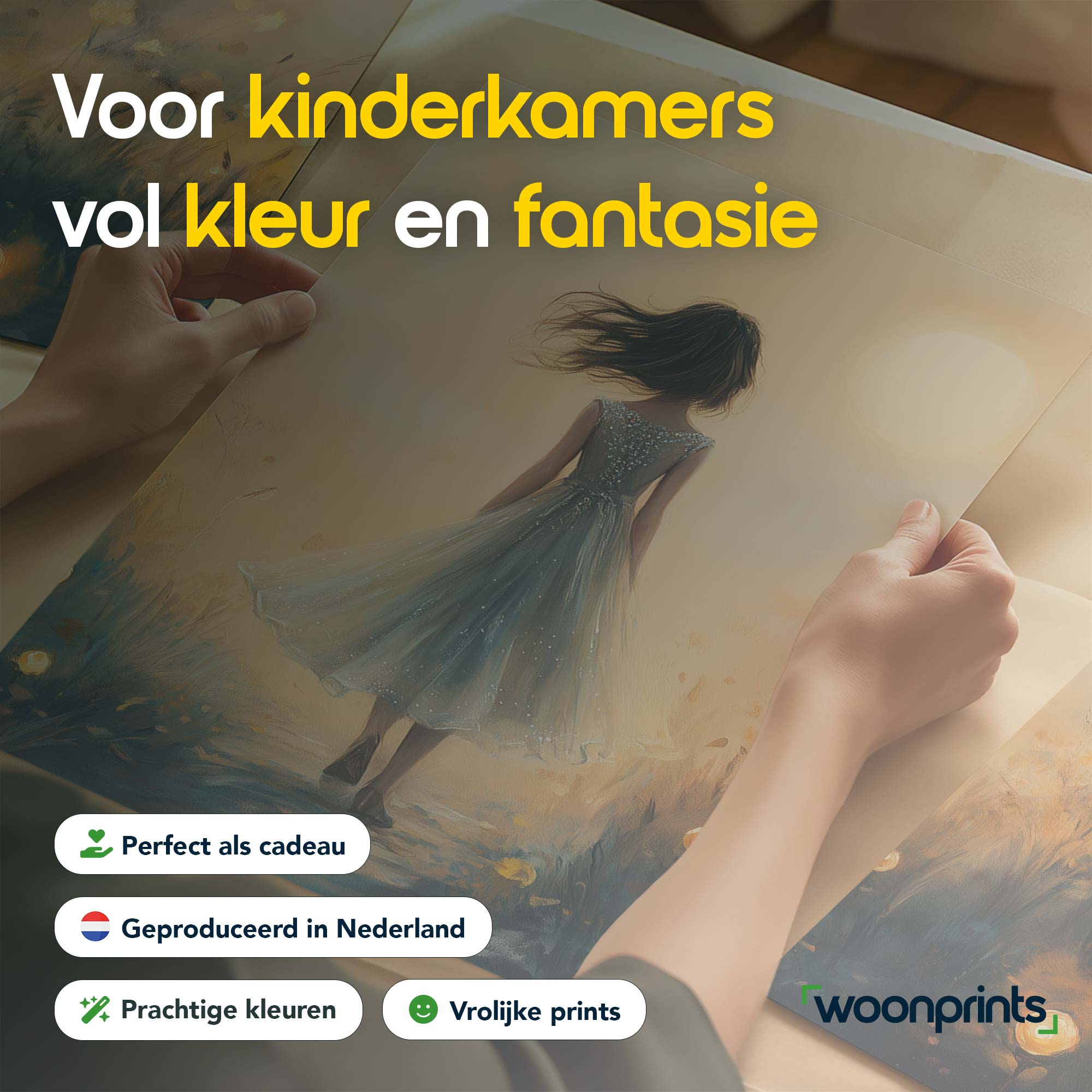 Zonnig Meisje in Bloemenveld – Pastel Droomdecor