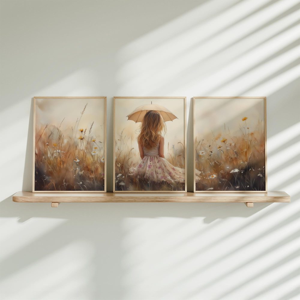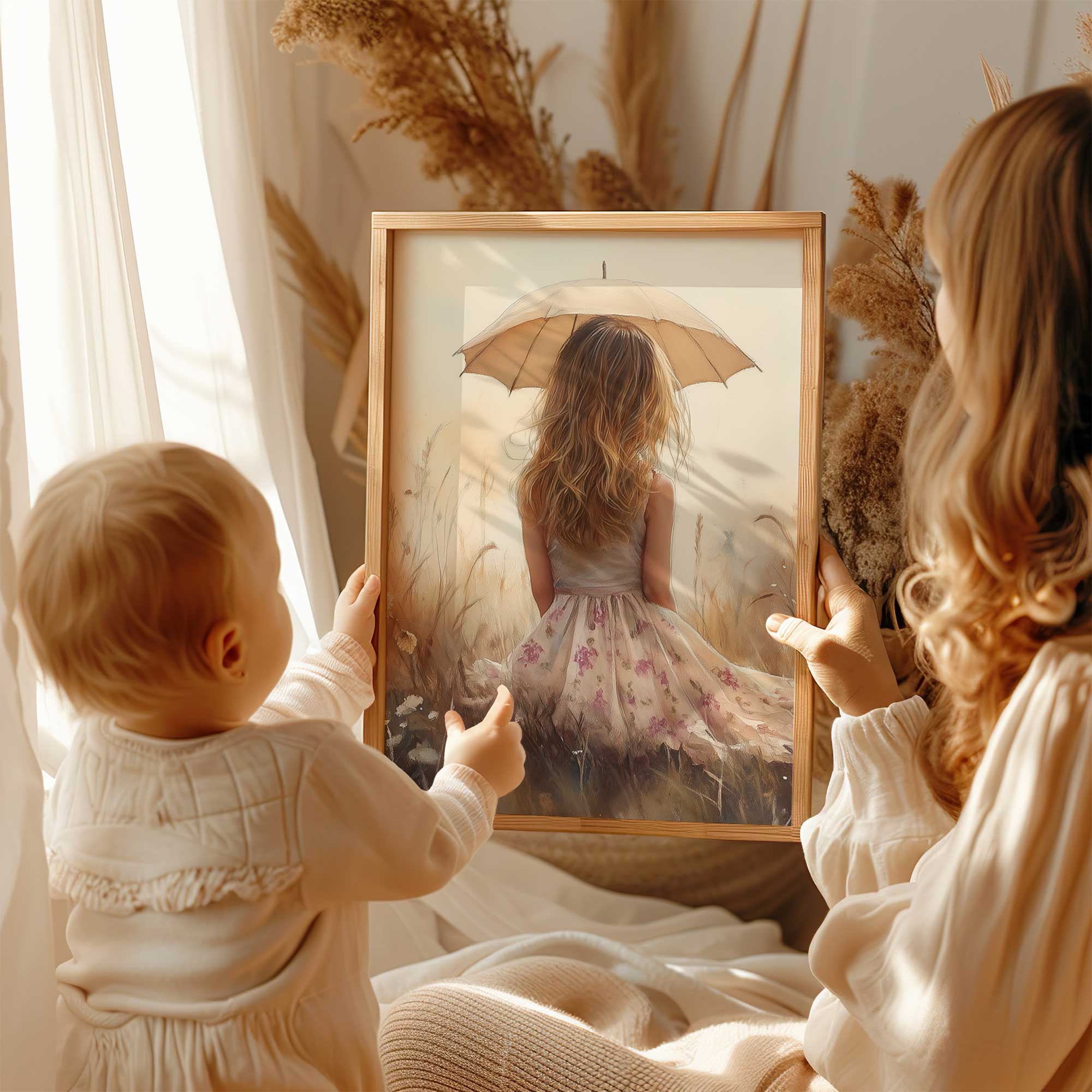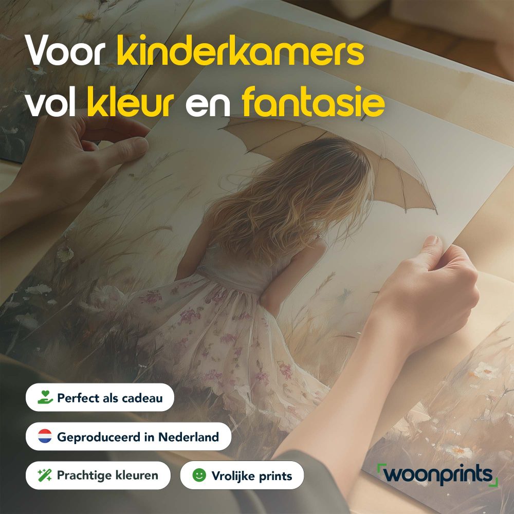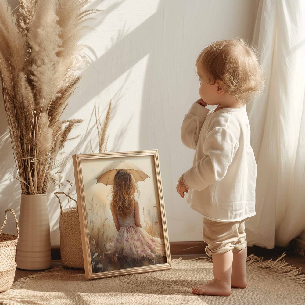 Terug naar collectie / Uncategorized / Zonnig Meisje met Paraplu in Bloemenveld