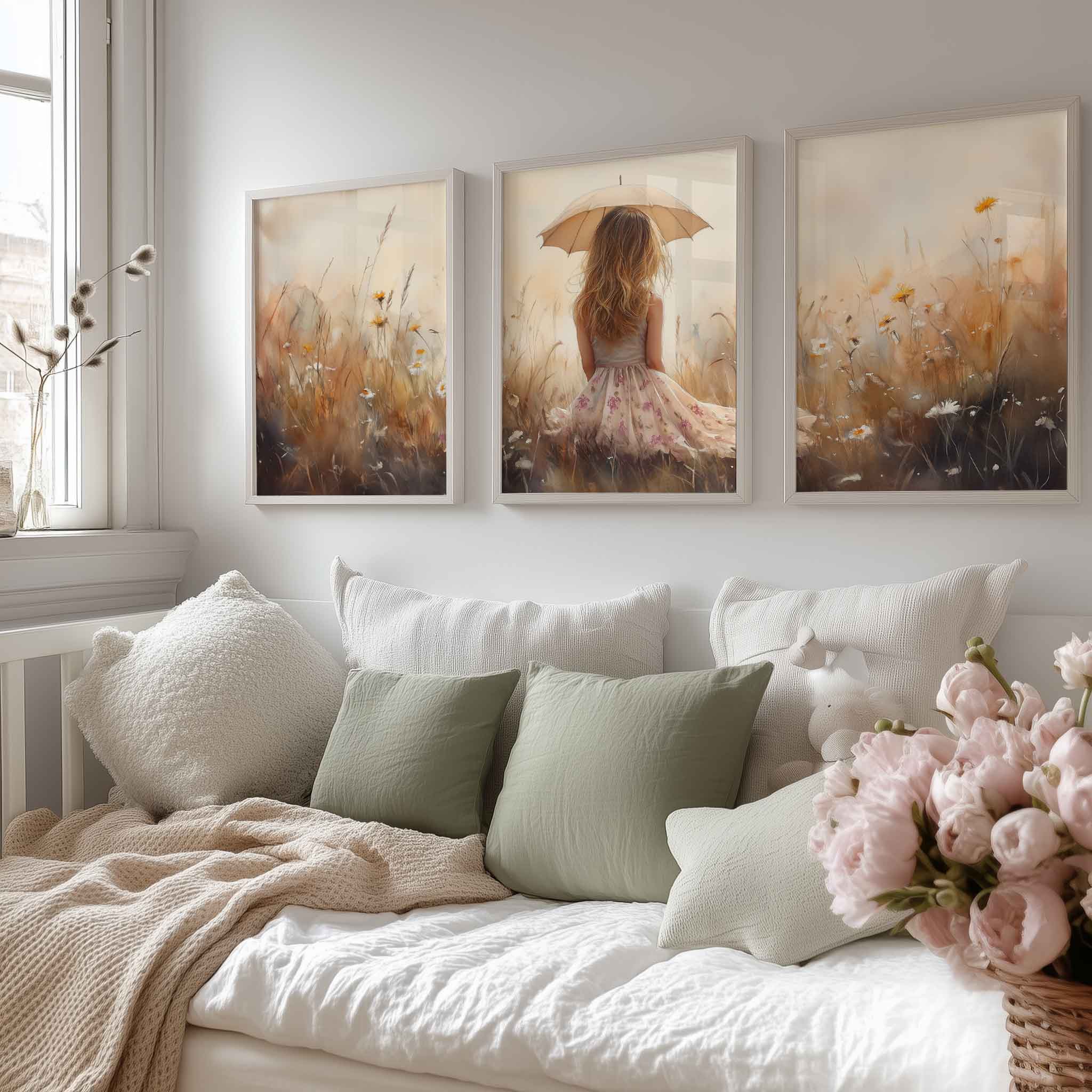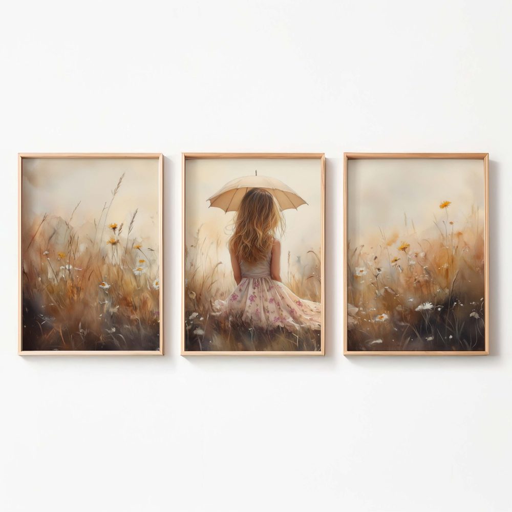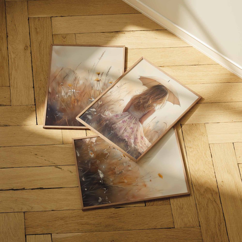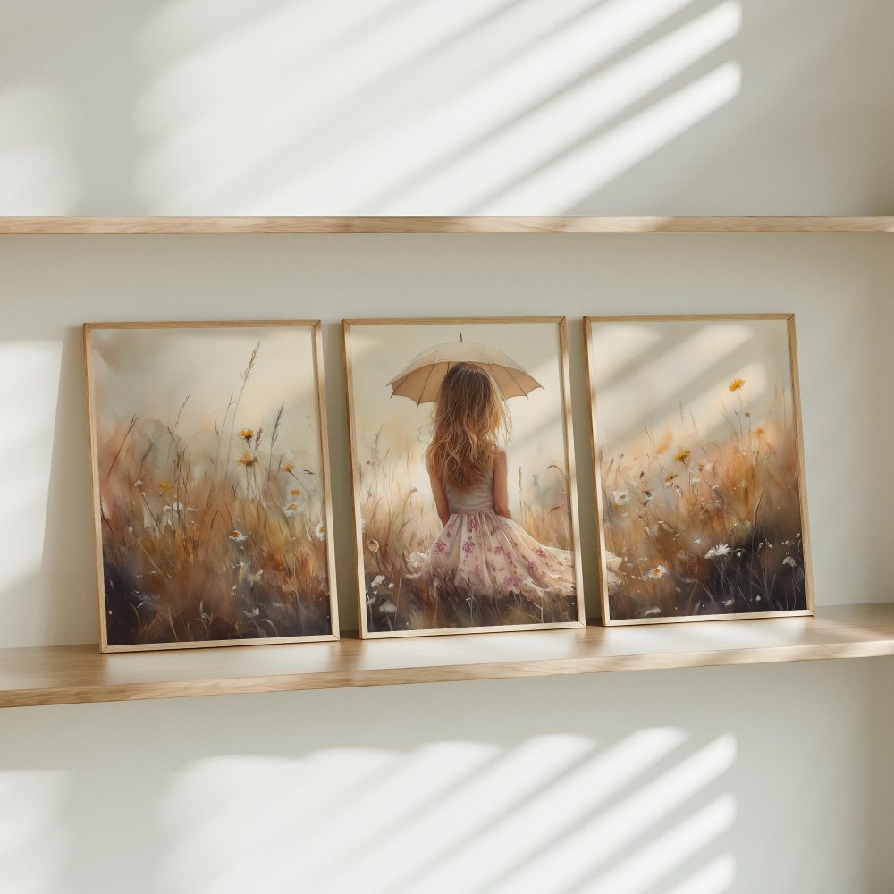 Terug naar collectie / Uncategorized / Zonnig Meisje met Paraplu in Bloemenveld