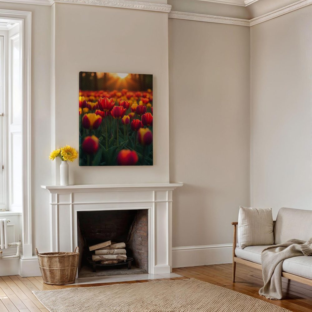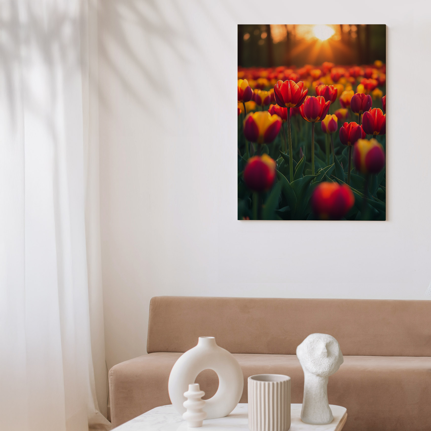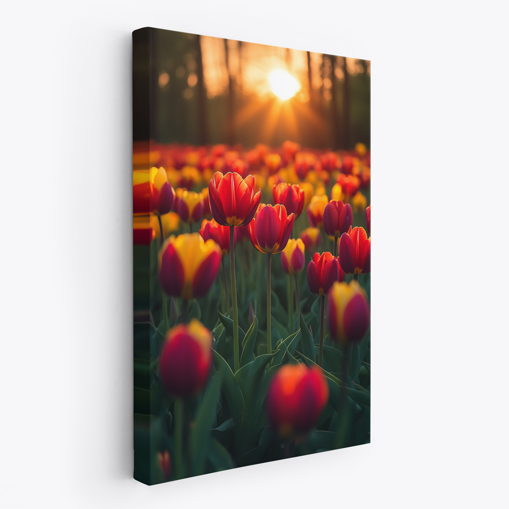 Terug naar collectie / Schilderijen / Bloemen Schilderij / Zonnig tulpenveld in bloei