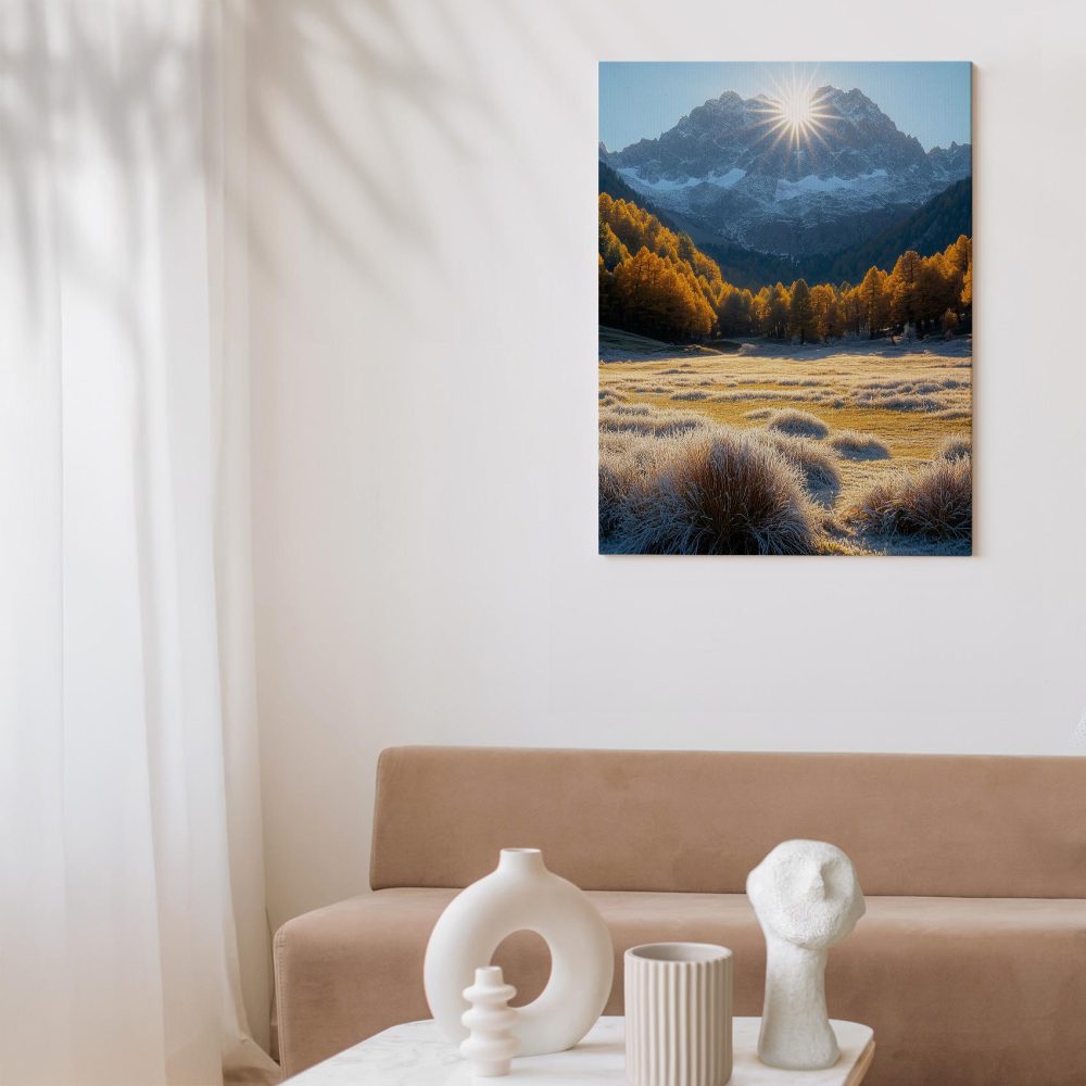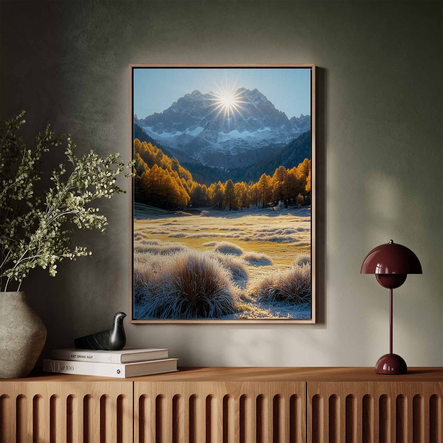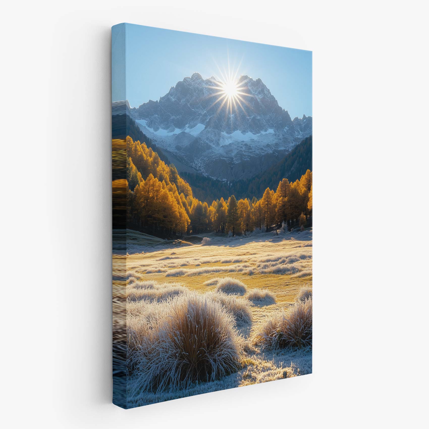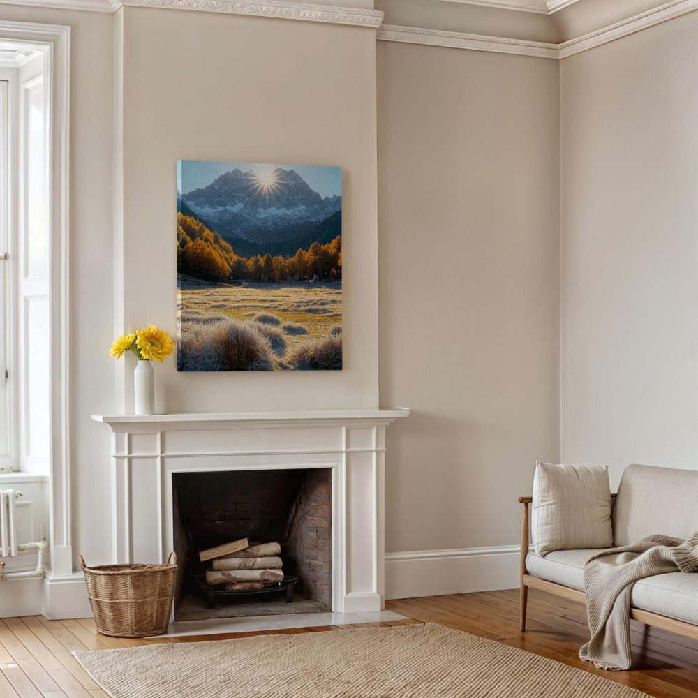 Terug naar collectie / Schilderijen / Bergen Schilderij / Zonnige Berglandschap met Sneeuw