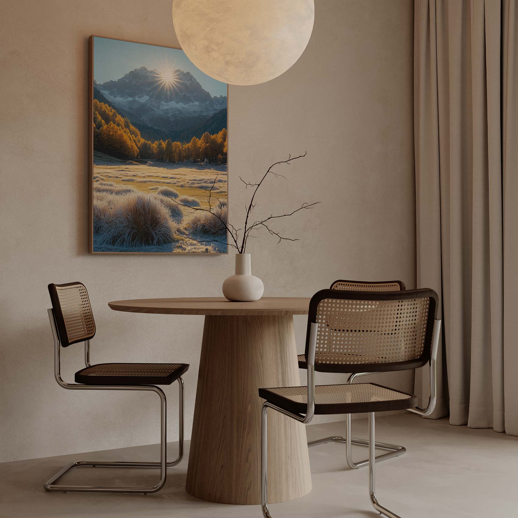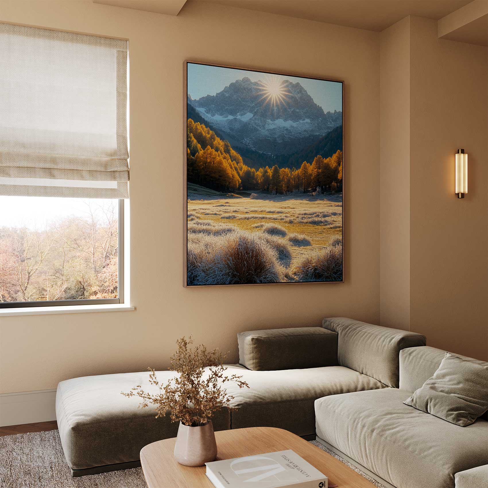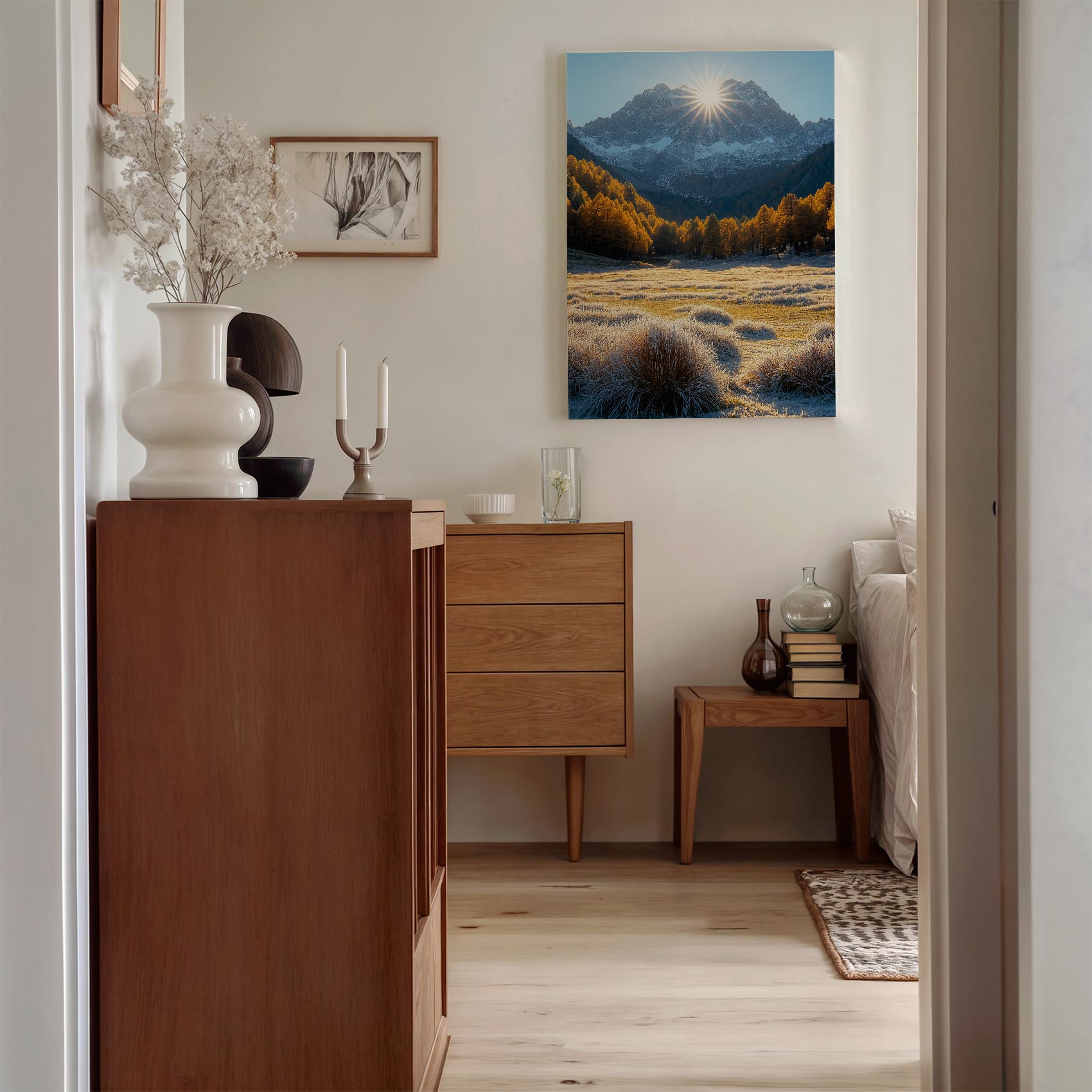 Terug naar collectie / Schilderijen / Bergen Schilderij / Zonnige Berglandschap met Sneeuw