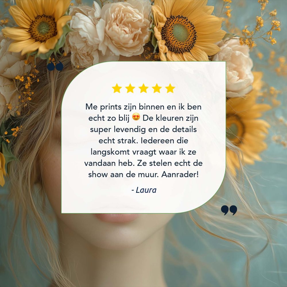 Terug naar collectie / Schilderijen / Bloemen Schilderij / Zonnige bloemenkroon vrouw