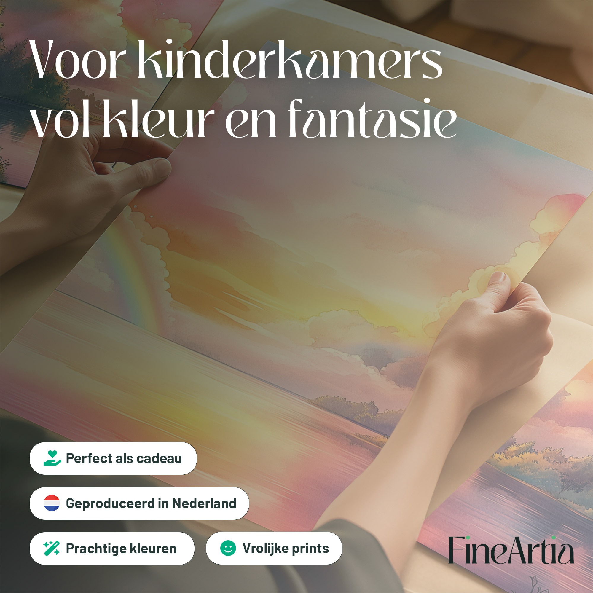 Terug naar collectie / Kinderkamer posters / Zonnige Regenboogdroom aan het Meer