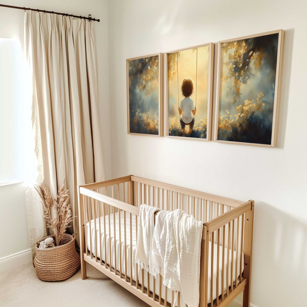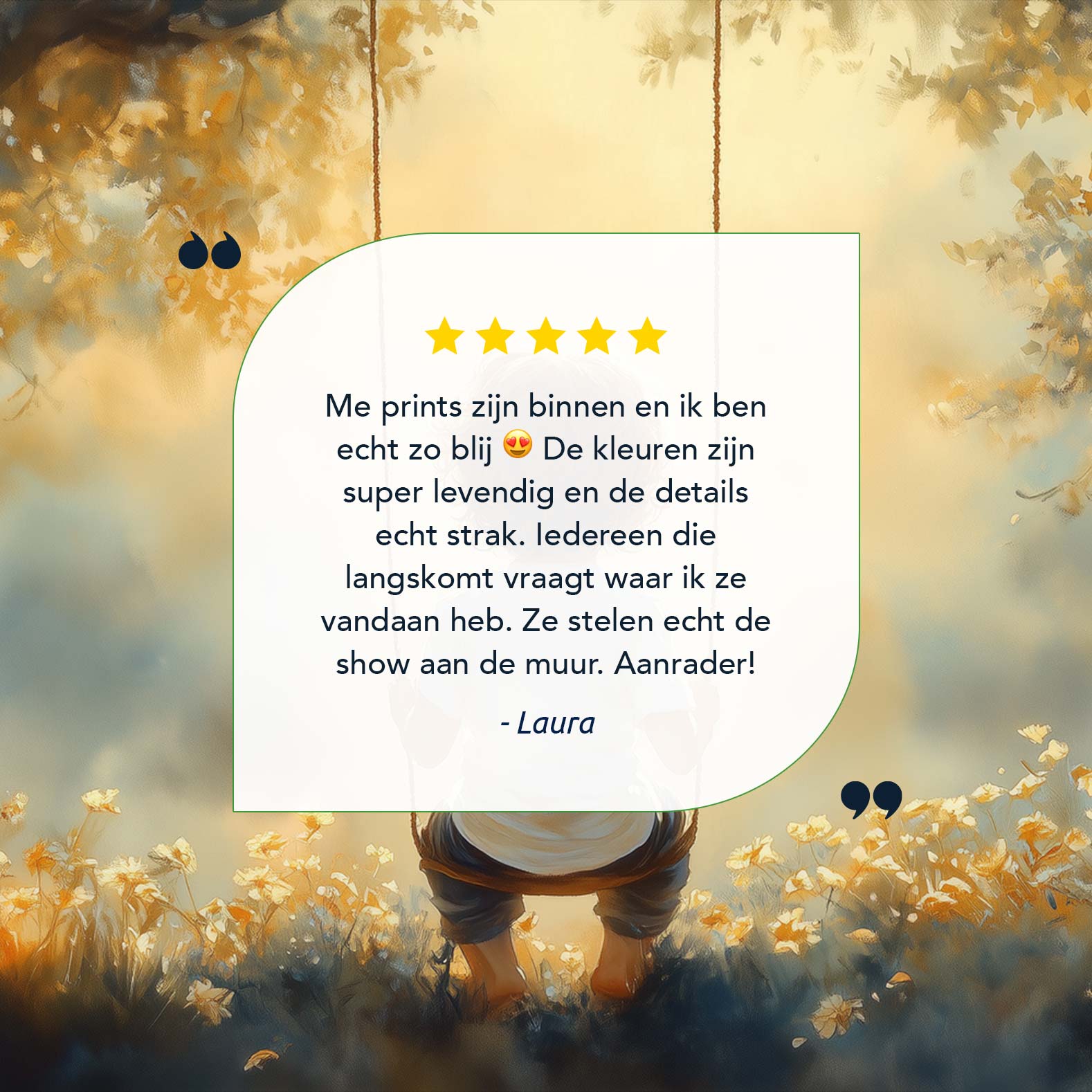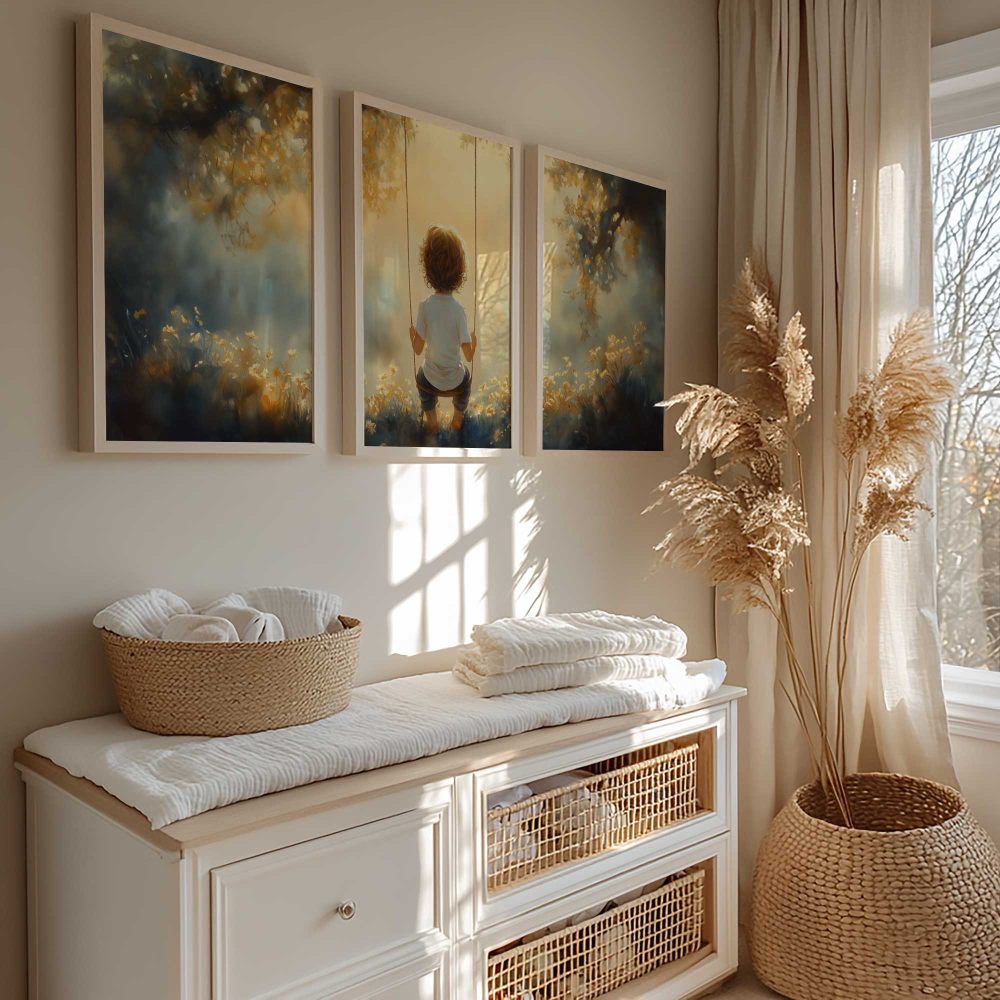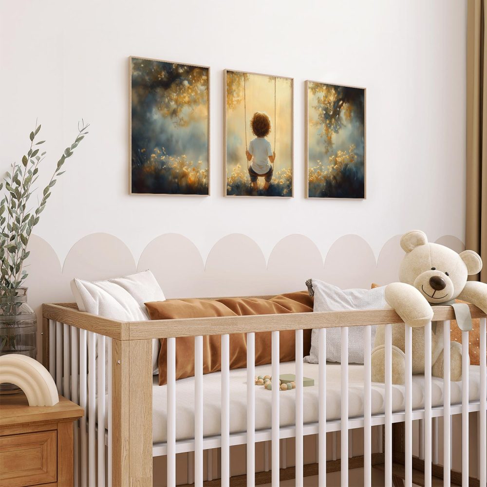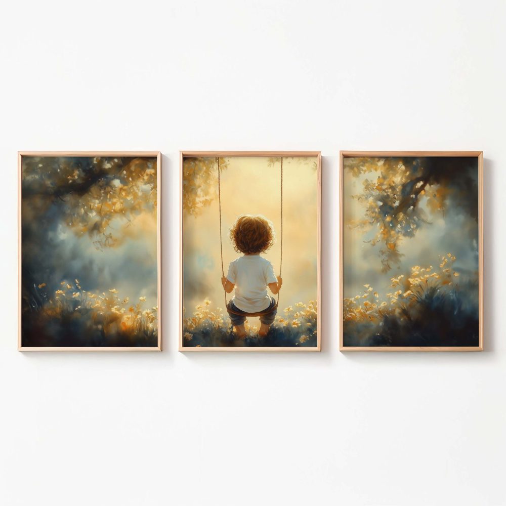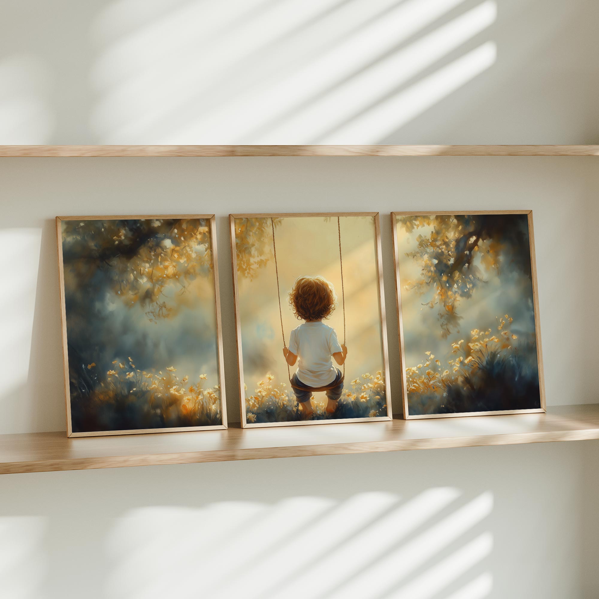 Terug naar collectie / Kinderkamer posters / Bloemen posters / Zonnige schommel in een bloemenveld