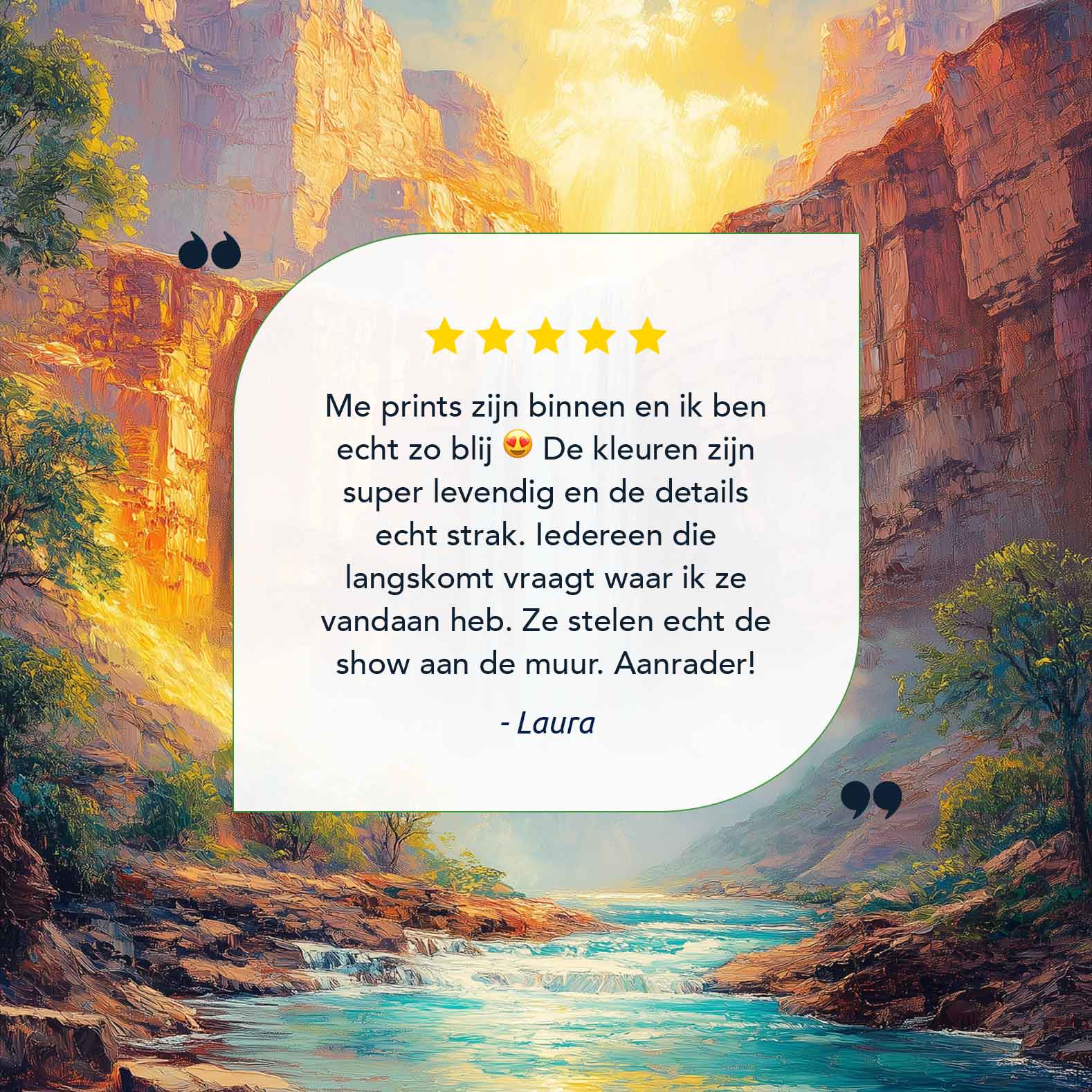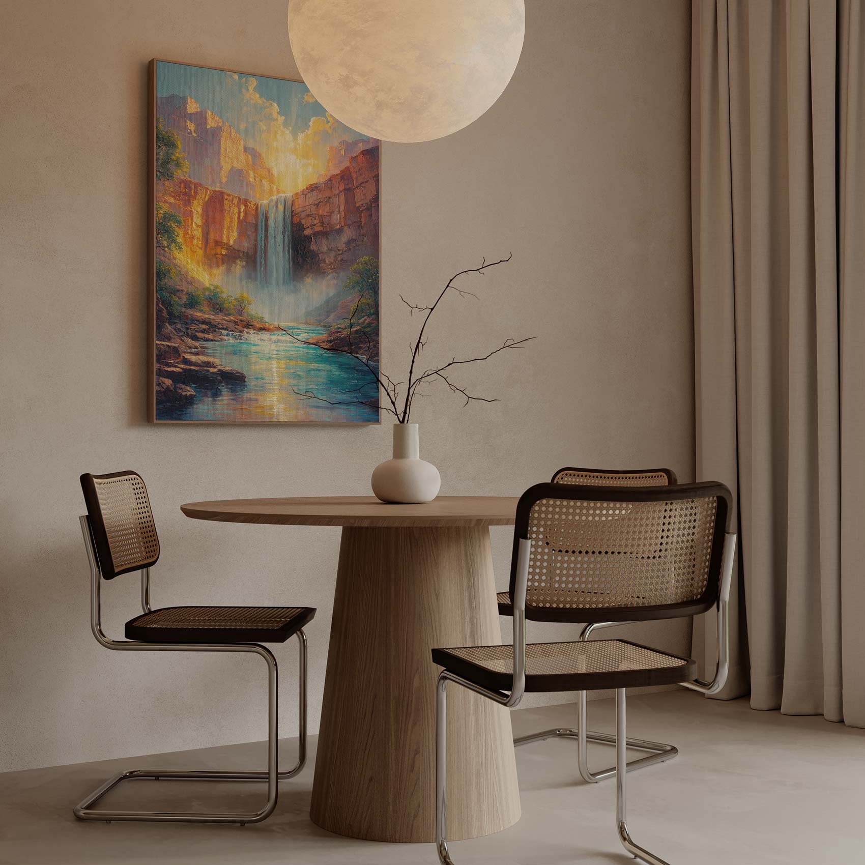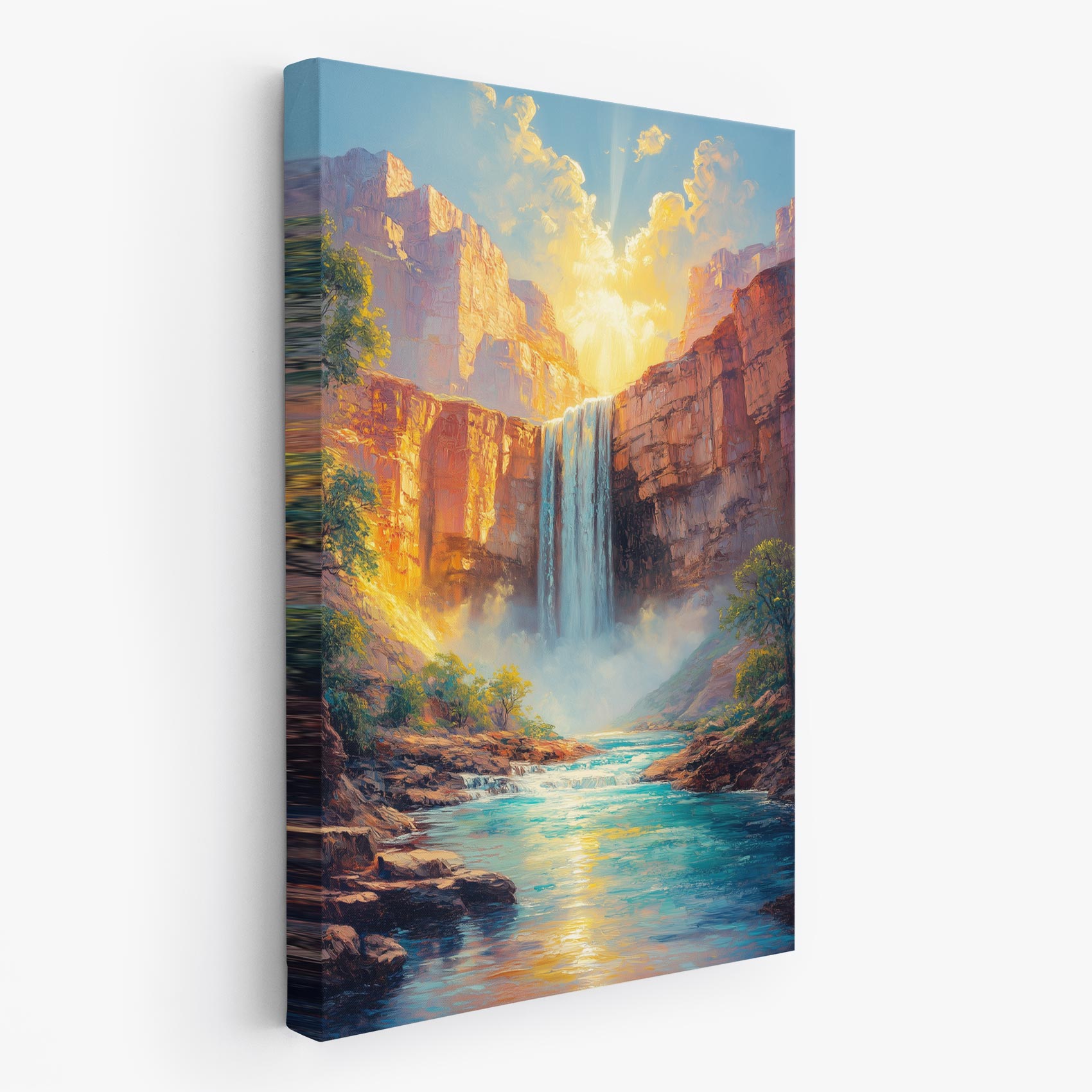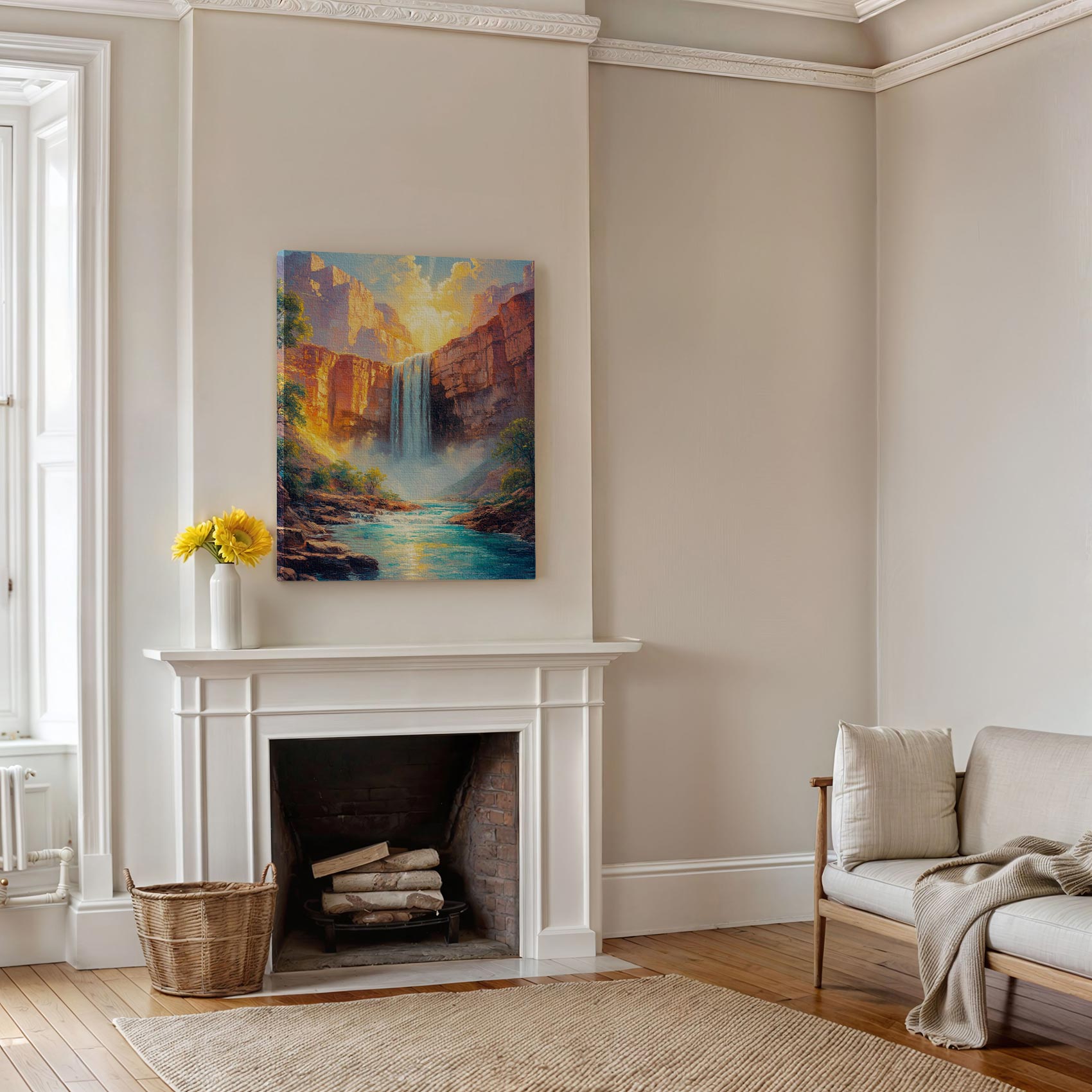 Terug naar collectie / Schilderijen / Bergen Schilderij / Zonnige waterval in bergen