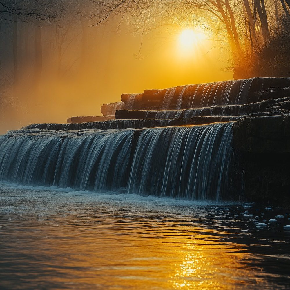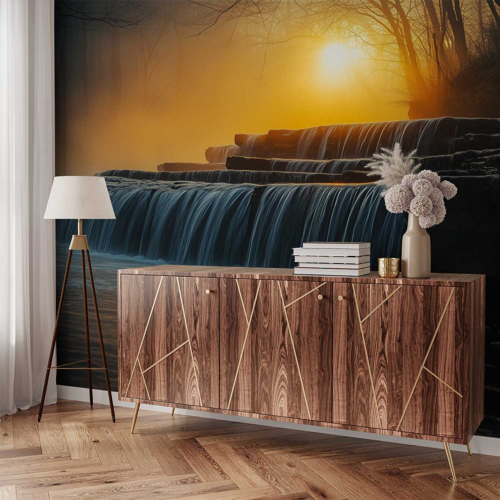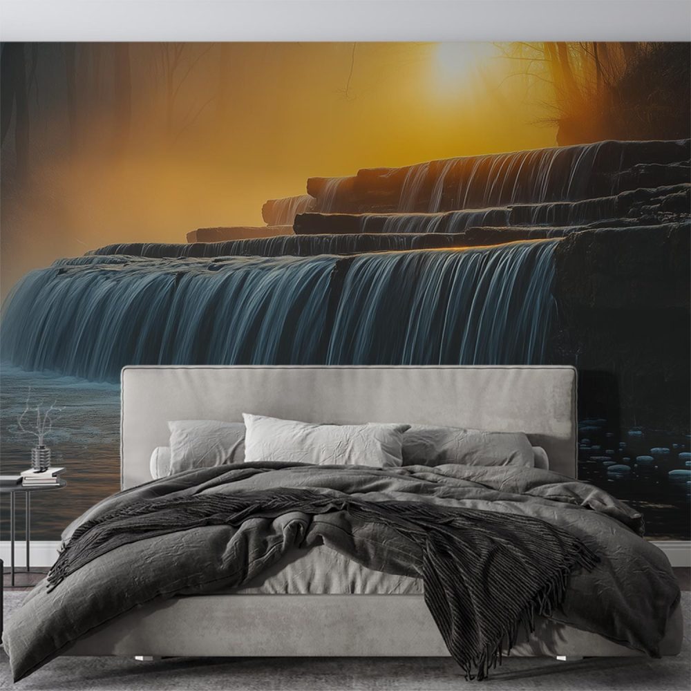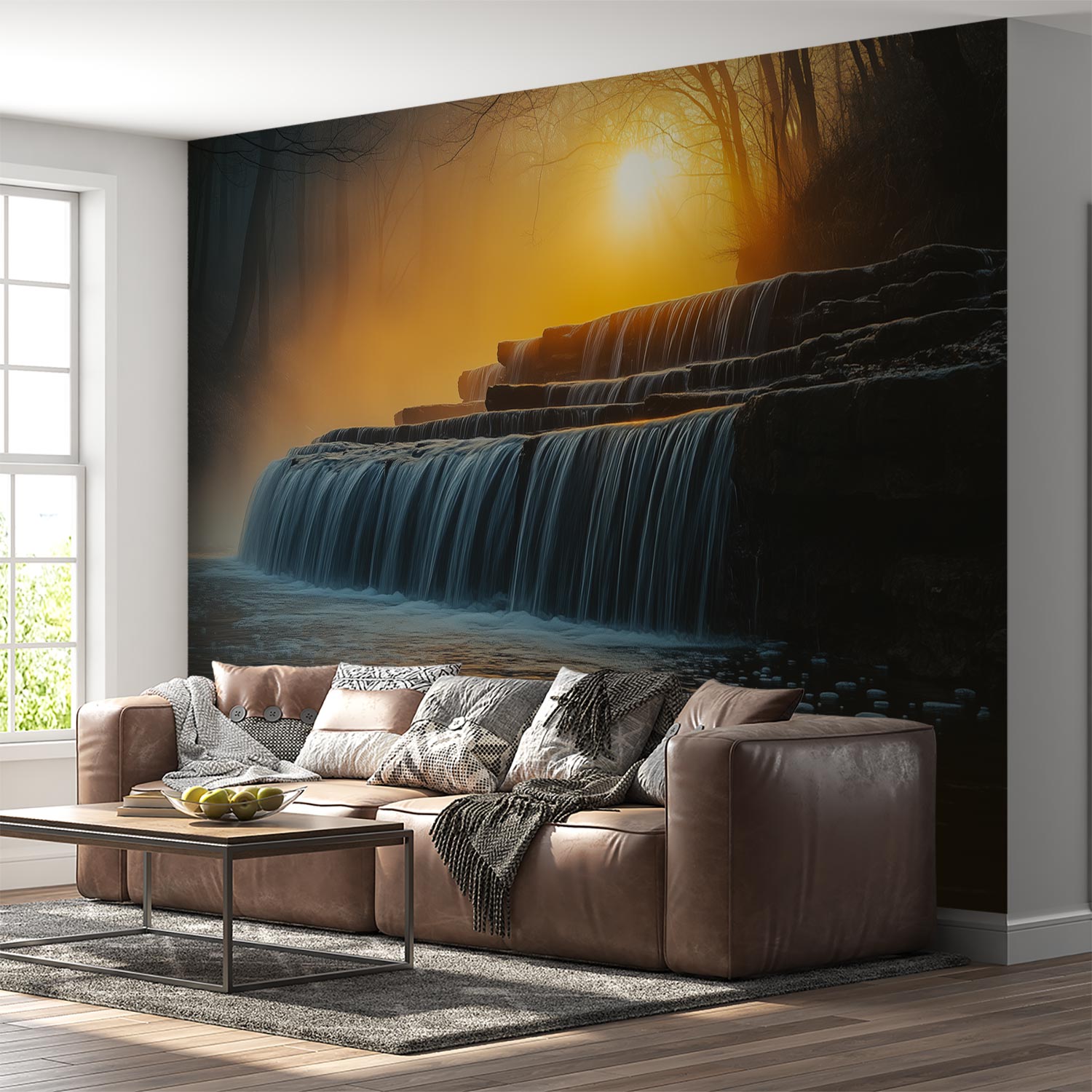 Terug naar collectie / Behang / Zonnige waterval in bos behang