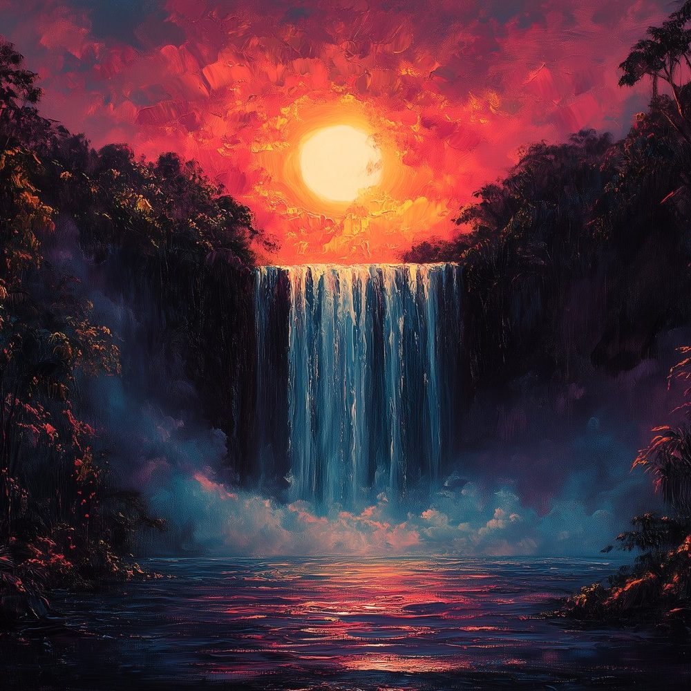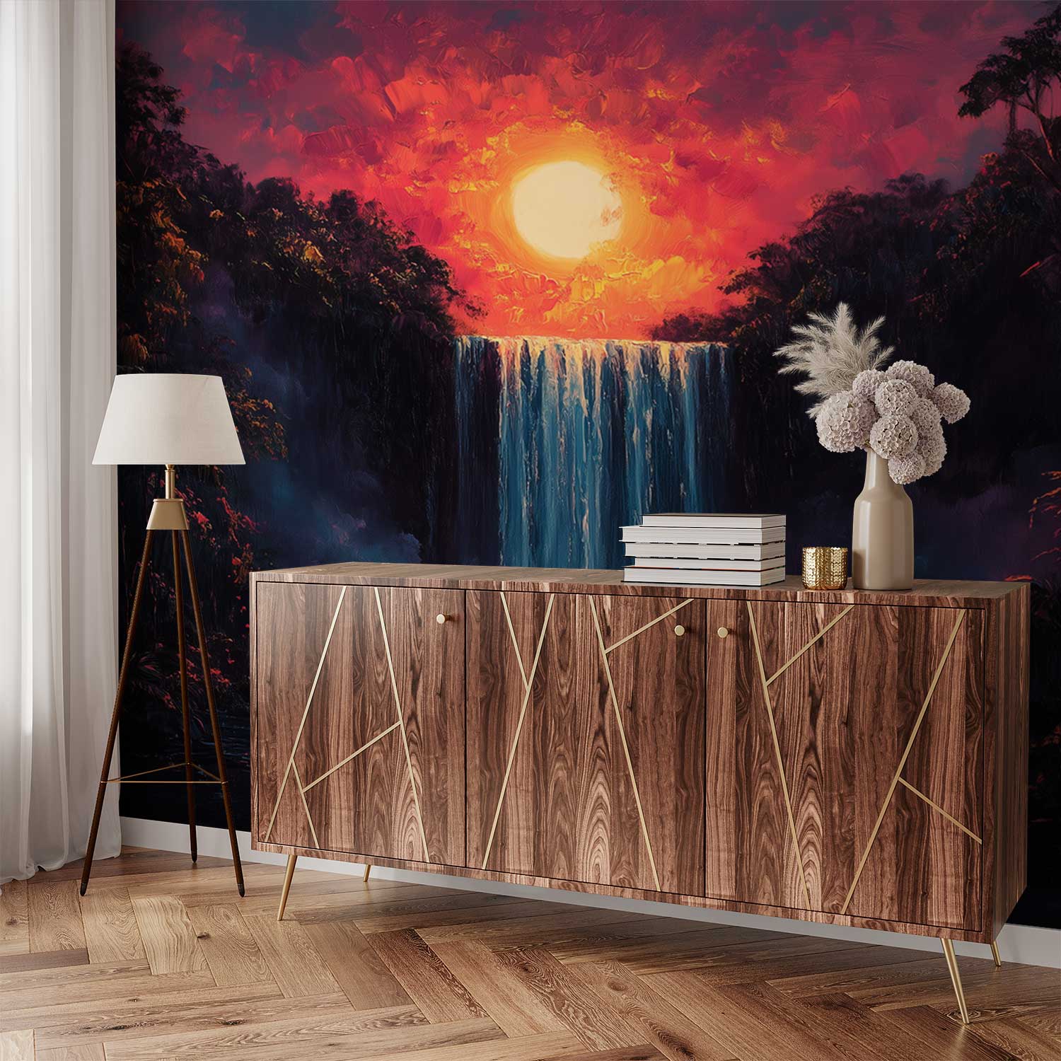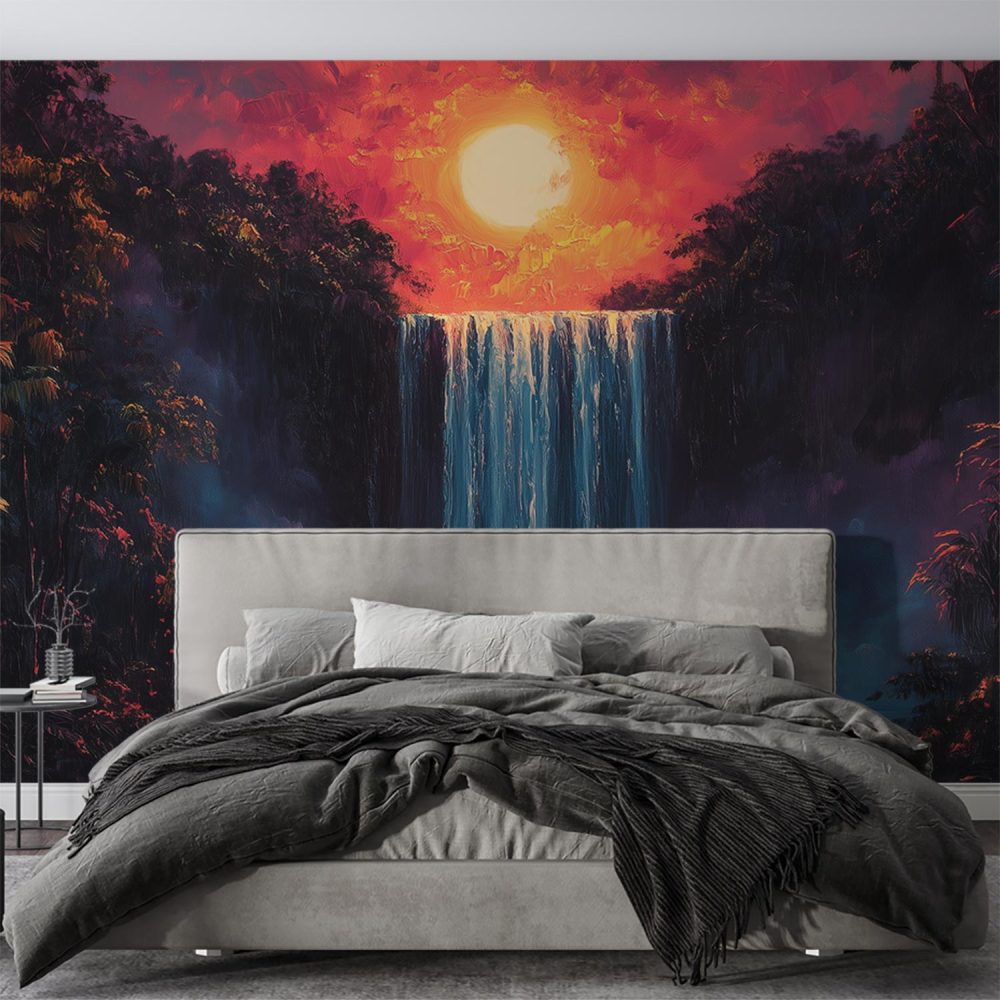 Terug naar collectie / Behang / Zonnige waterval in kleuren behang