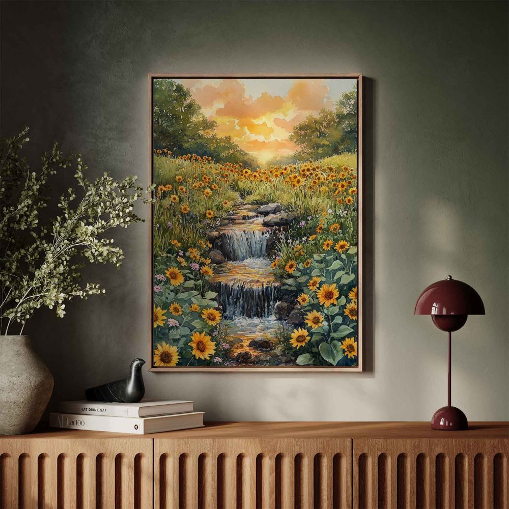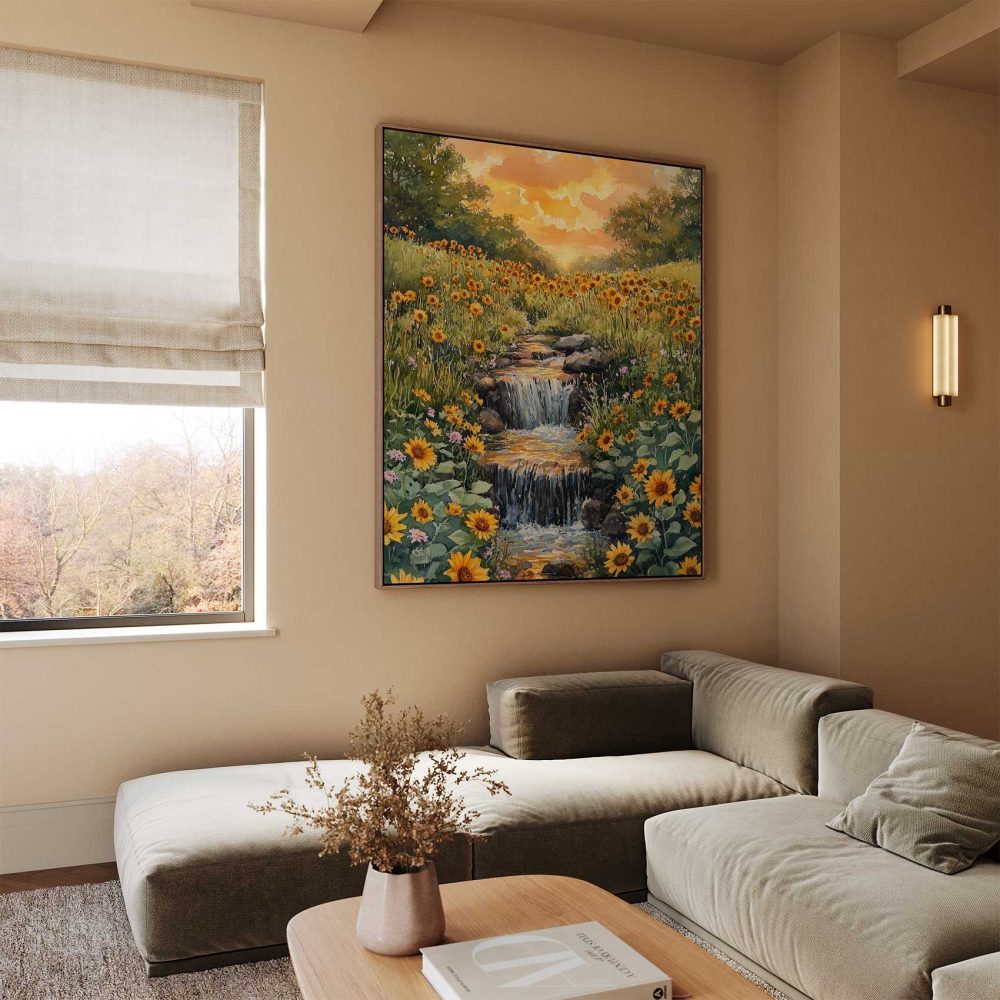 Terug naar collectie / Schilderijen / Bloemen Schilderij / Zonnige waterval in waterverf