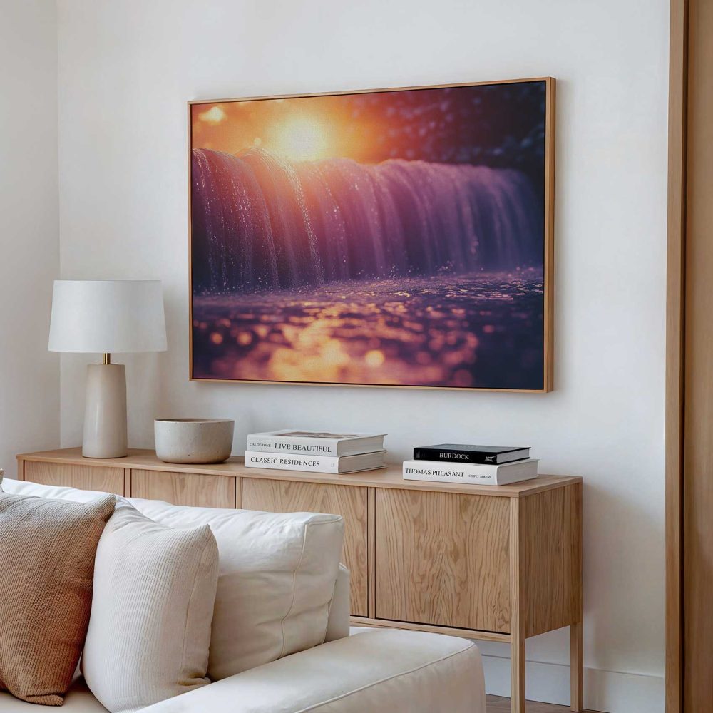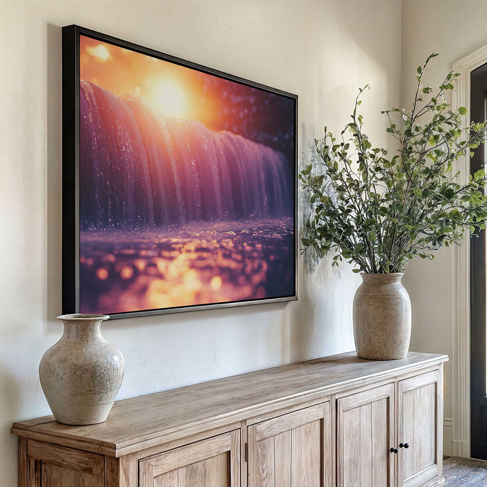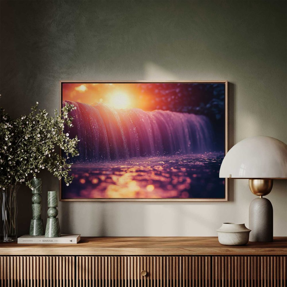 Terug naar collectie / Schilderijen / Bergen Schilderij / Zonnige Waterval Sereniteit