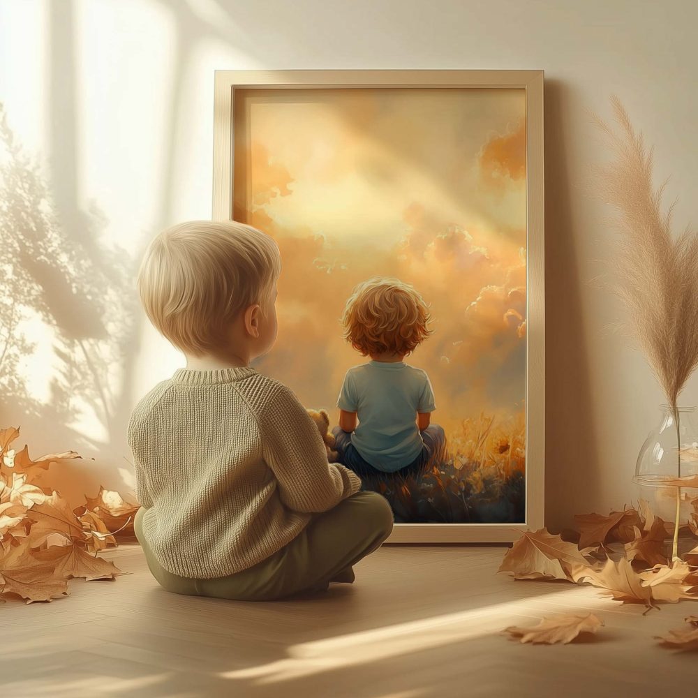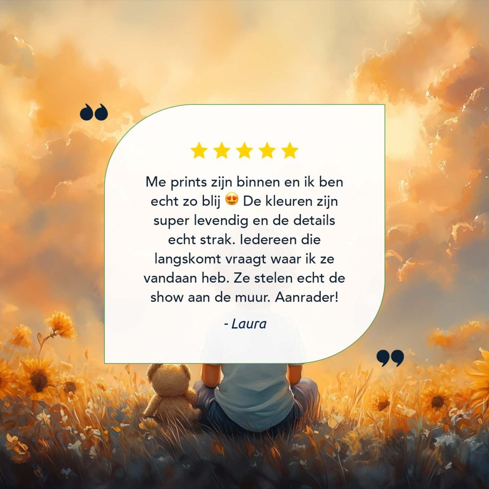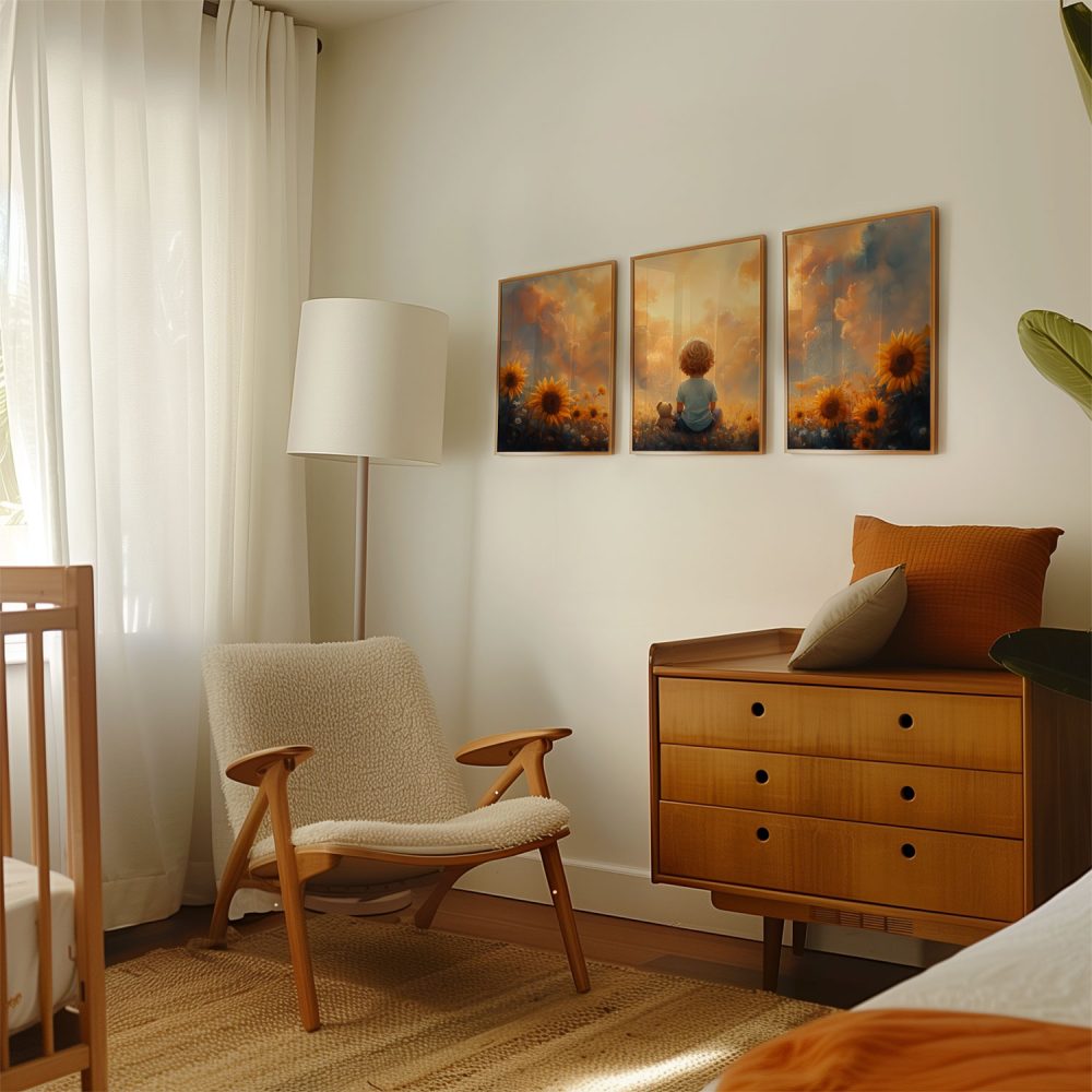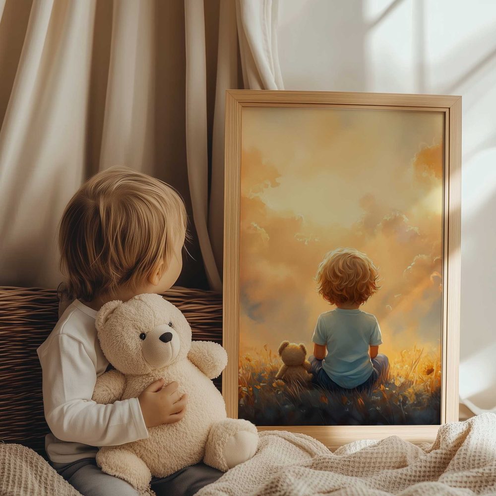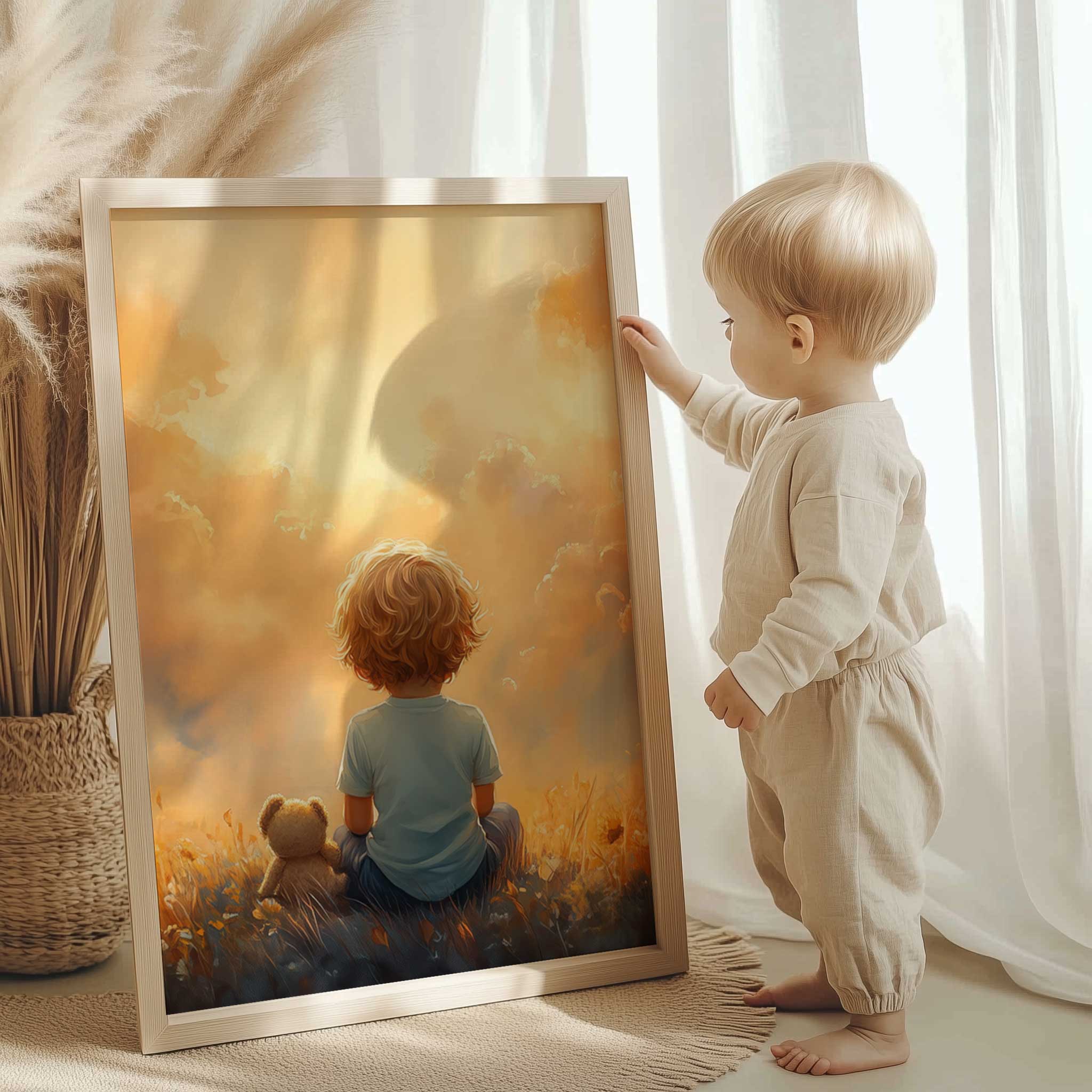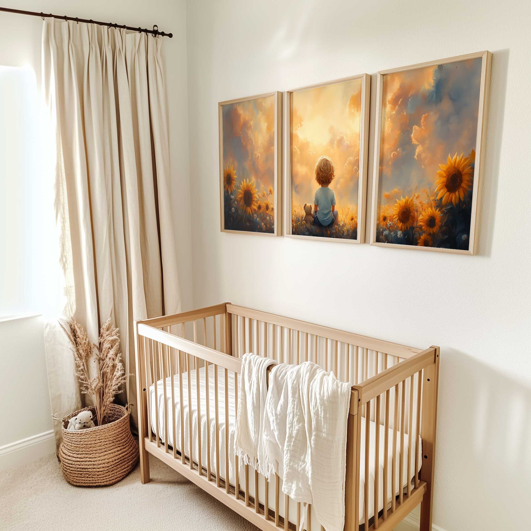 Terug naar collectie / Kinderkamer posters / Bloemen posters / Zonnige Zonnebloemen en een Dromerige Jongen