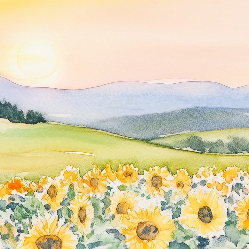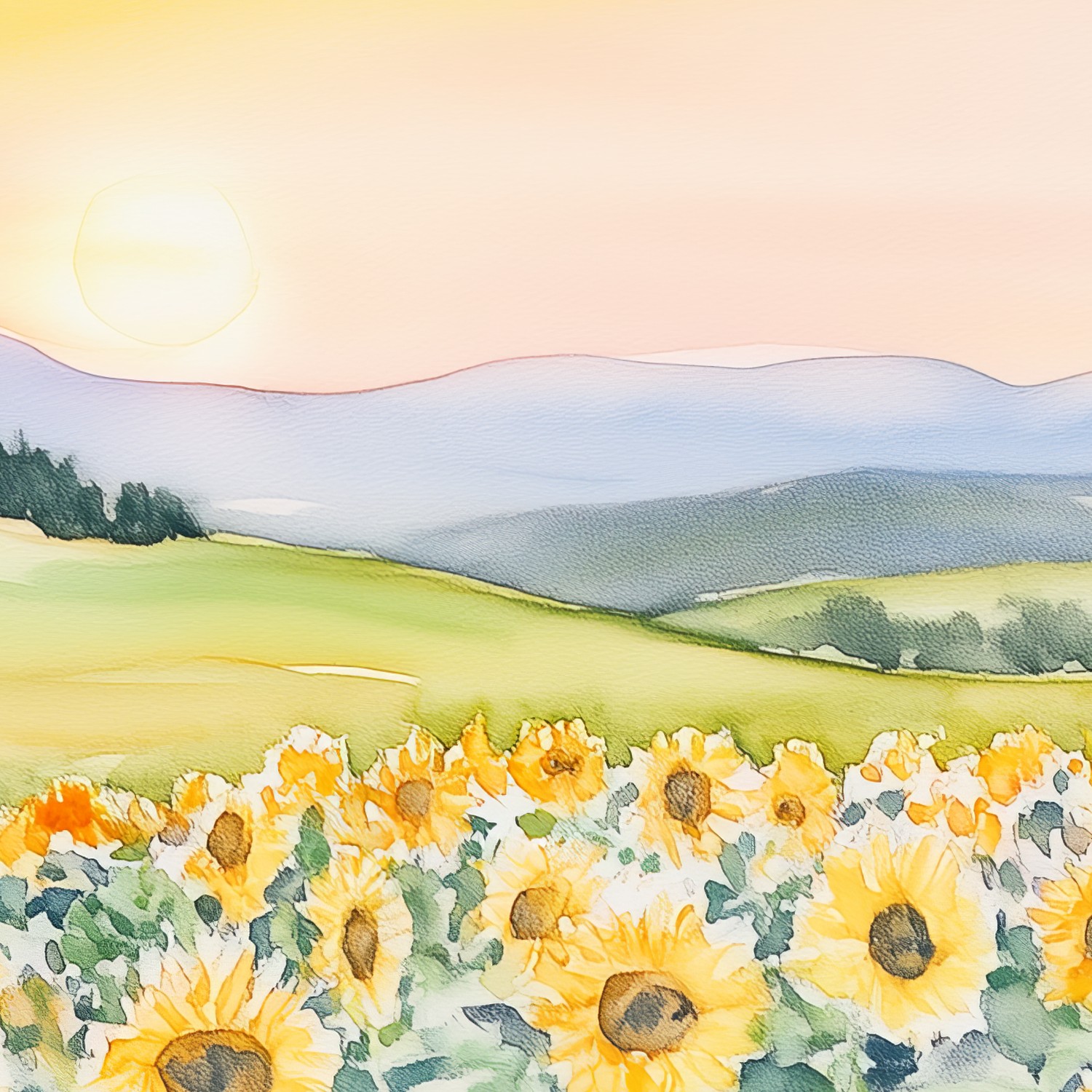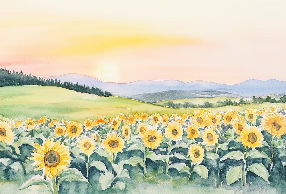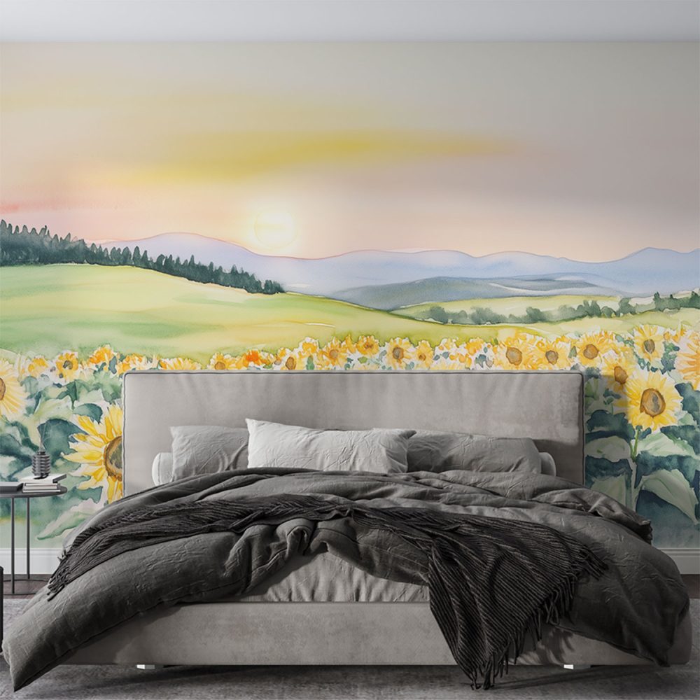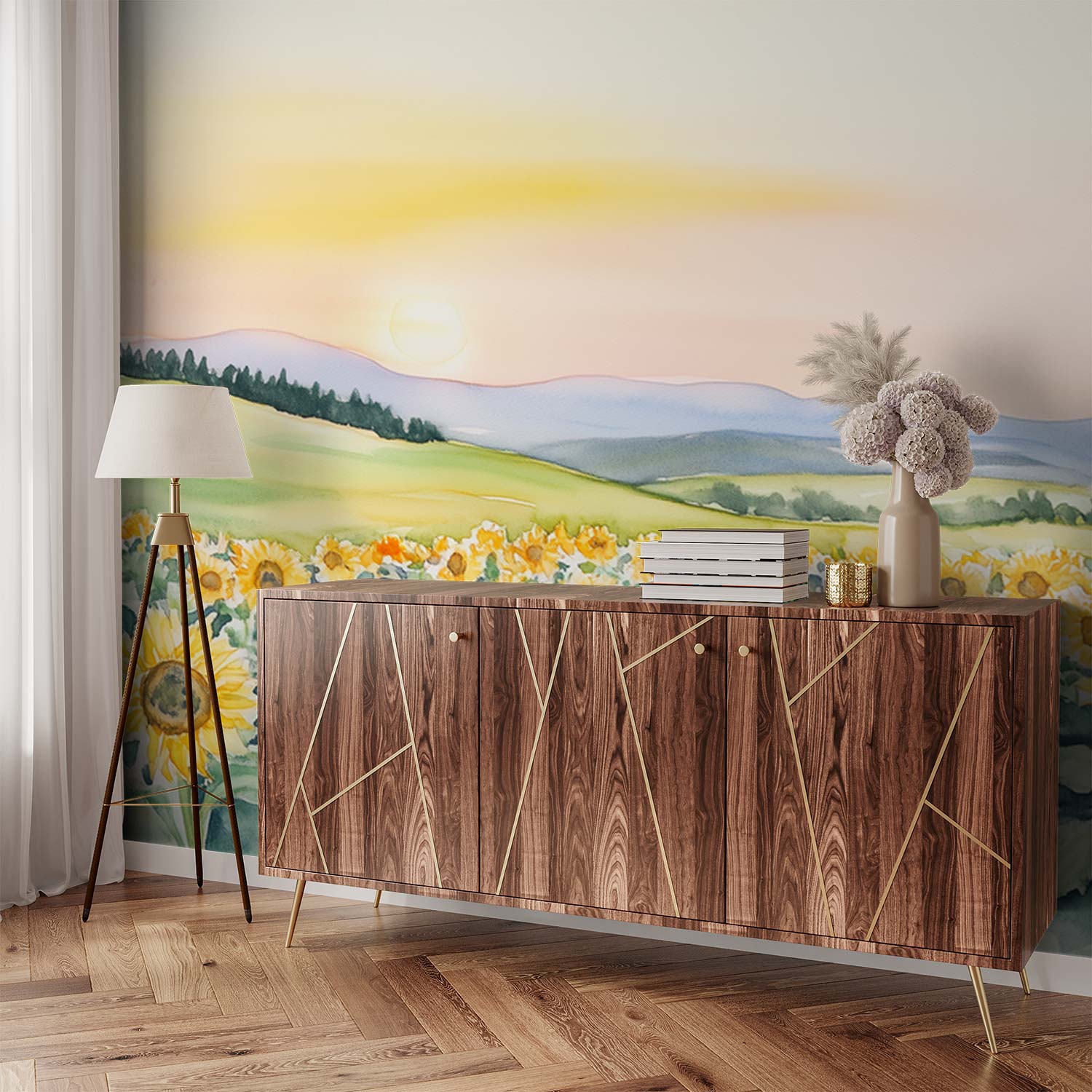 Zonnige Zonnebloemen Waterverfschilderij behang