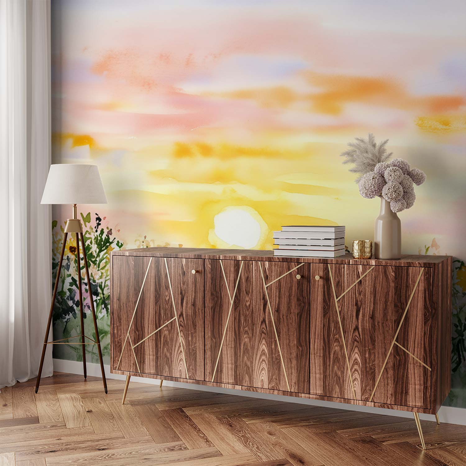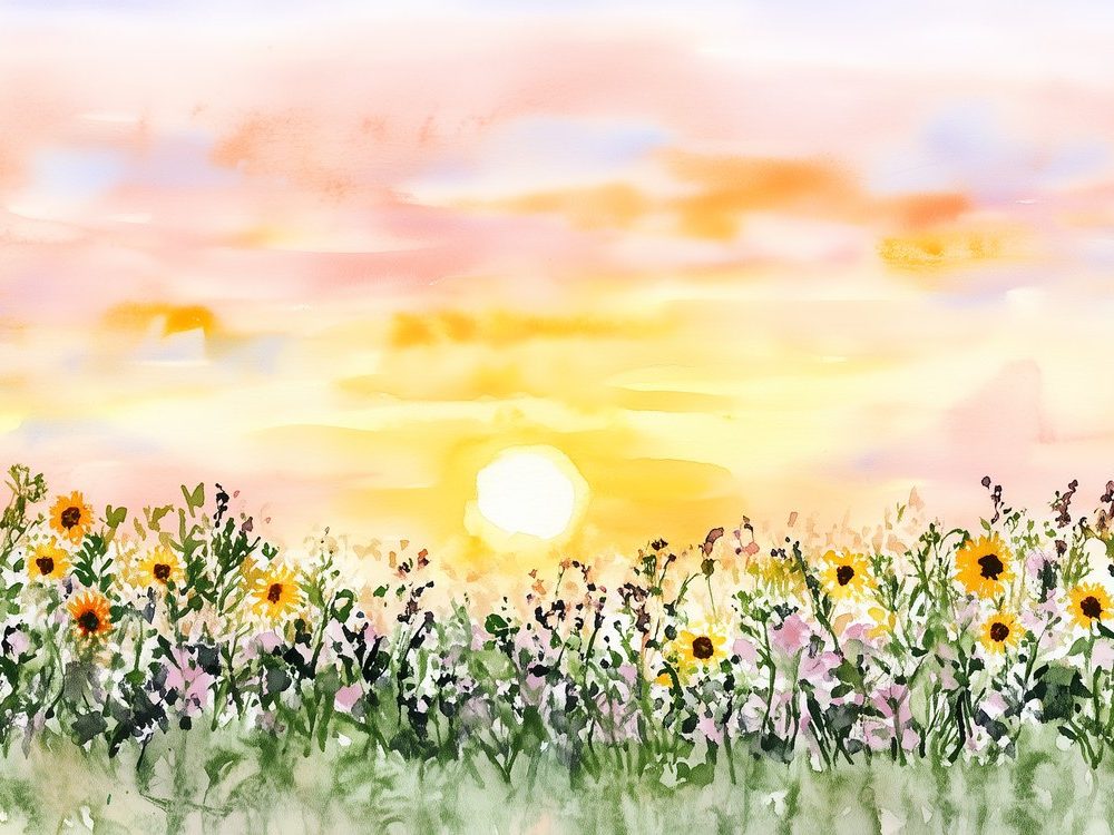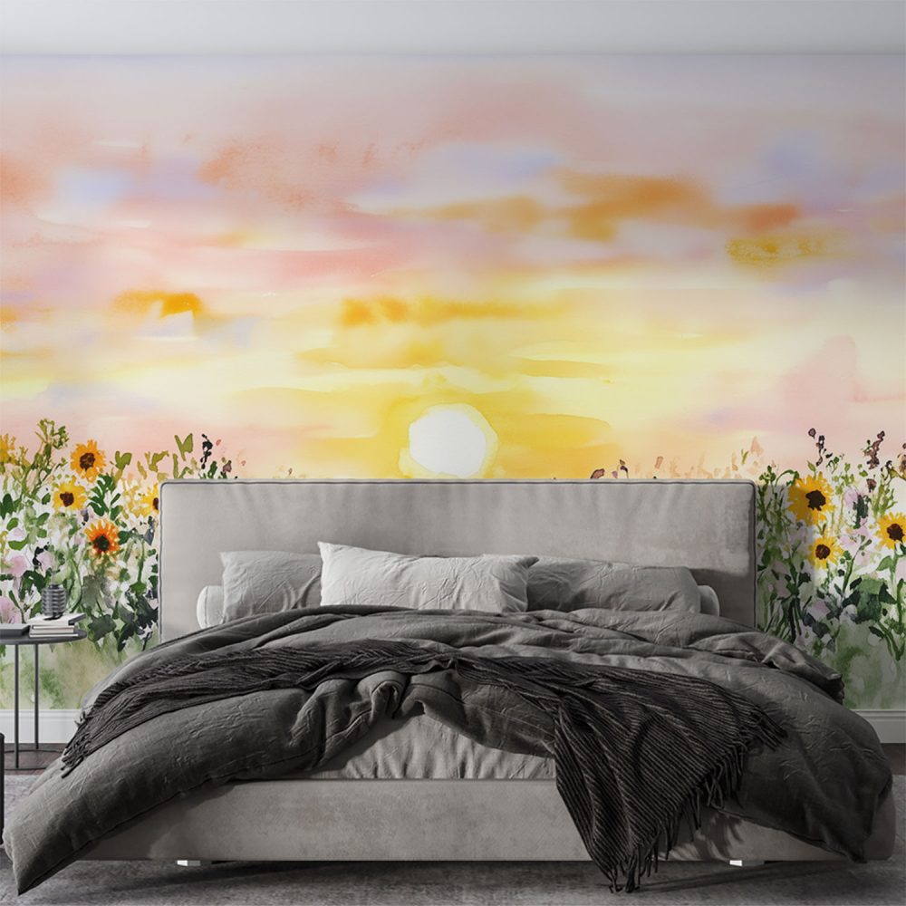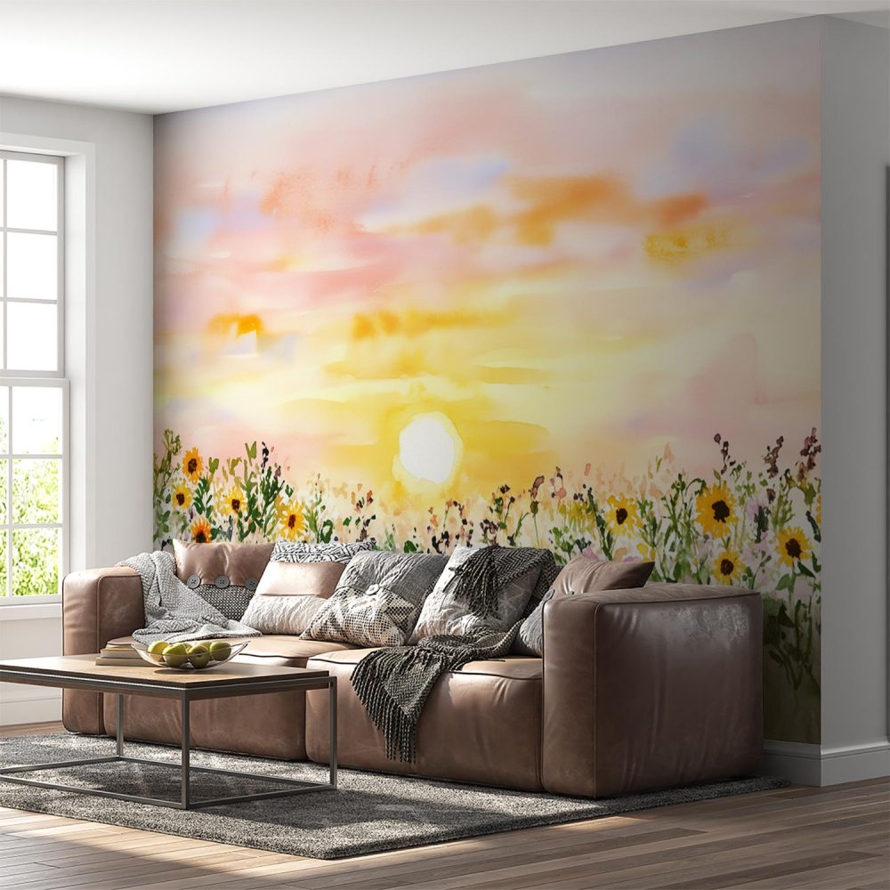 Terug naar collectie / Behang / Abstract behang / Zonnige zonnebloemveldschilderij behang