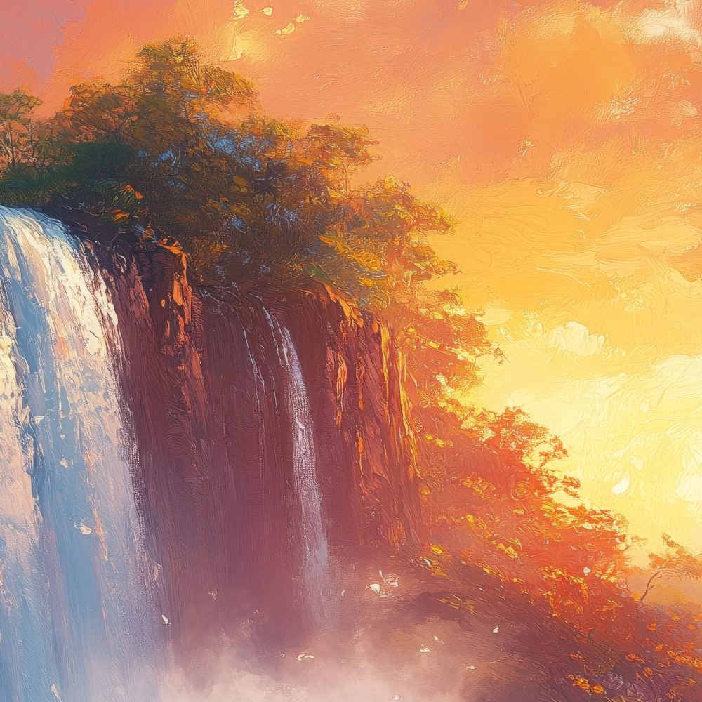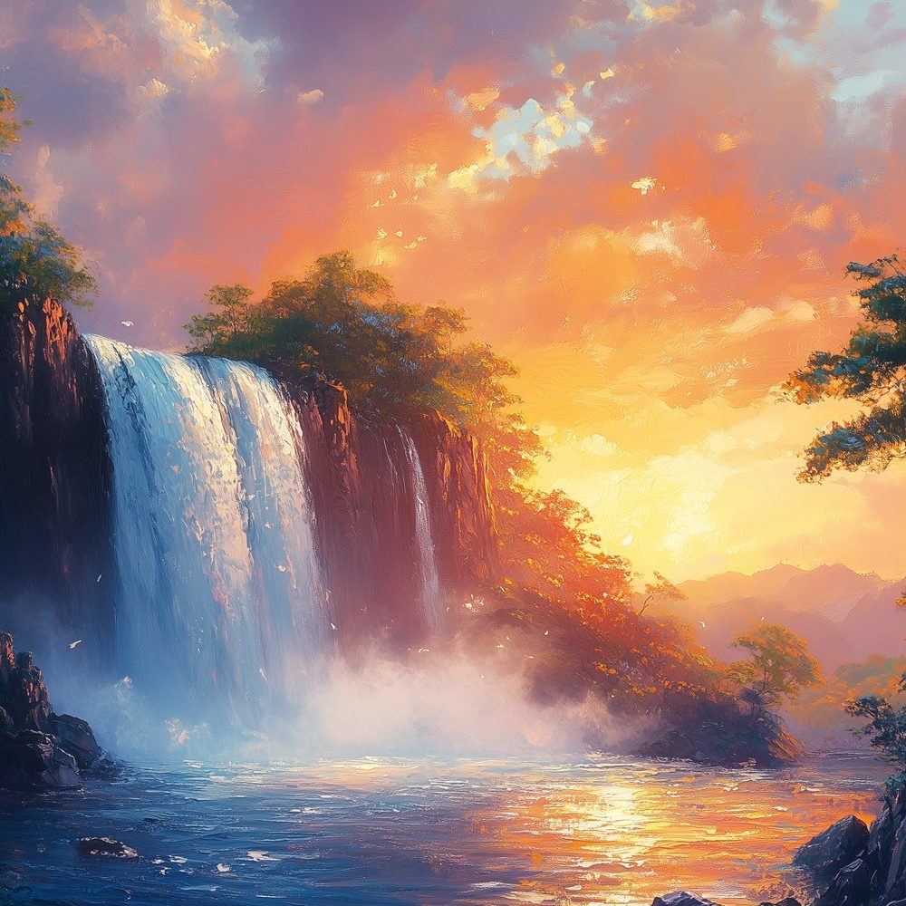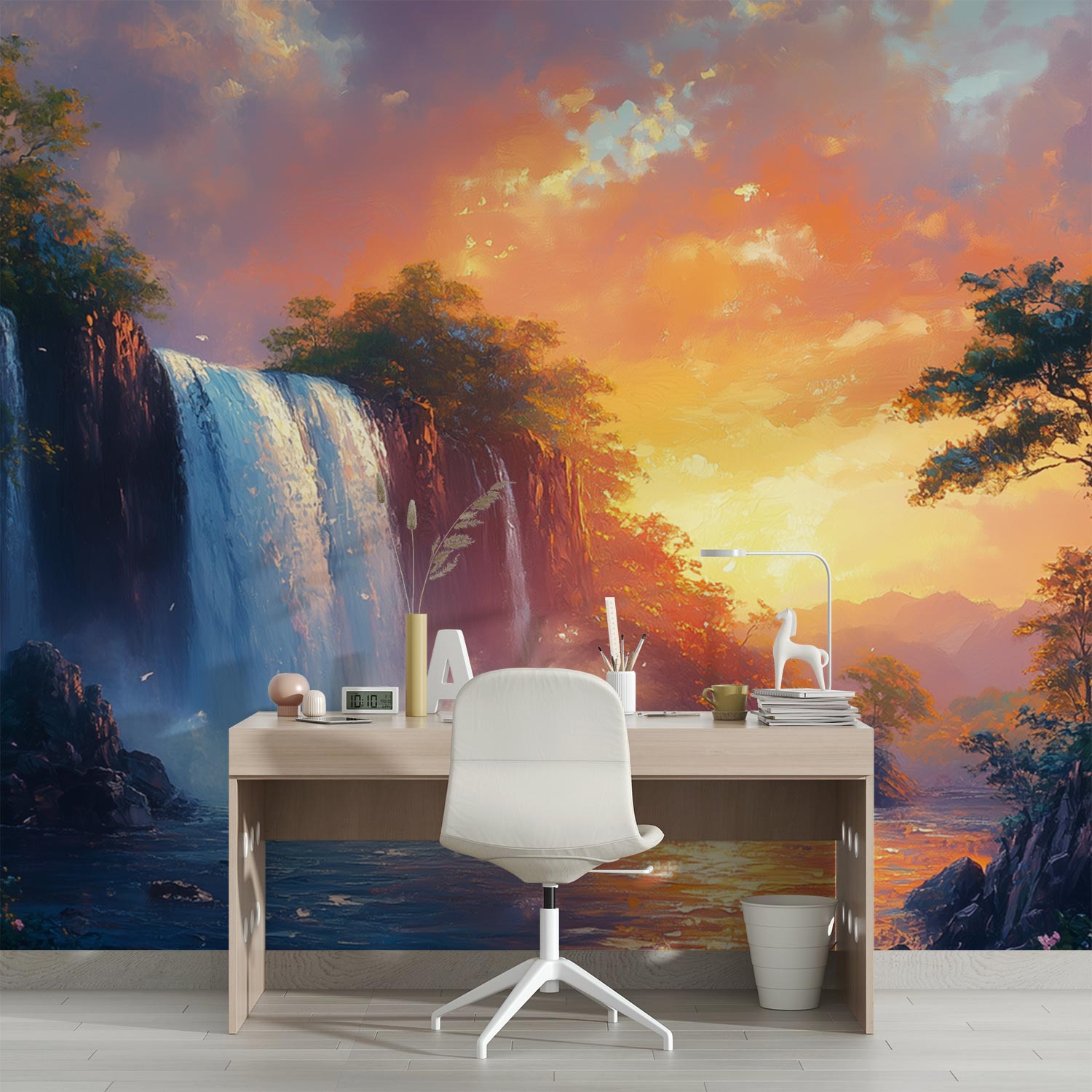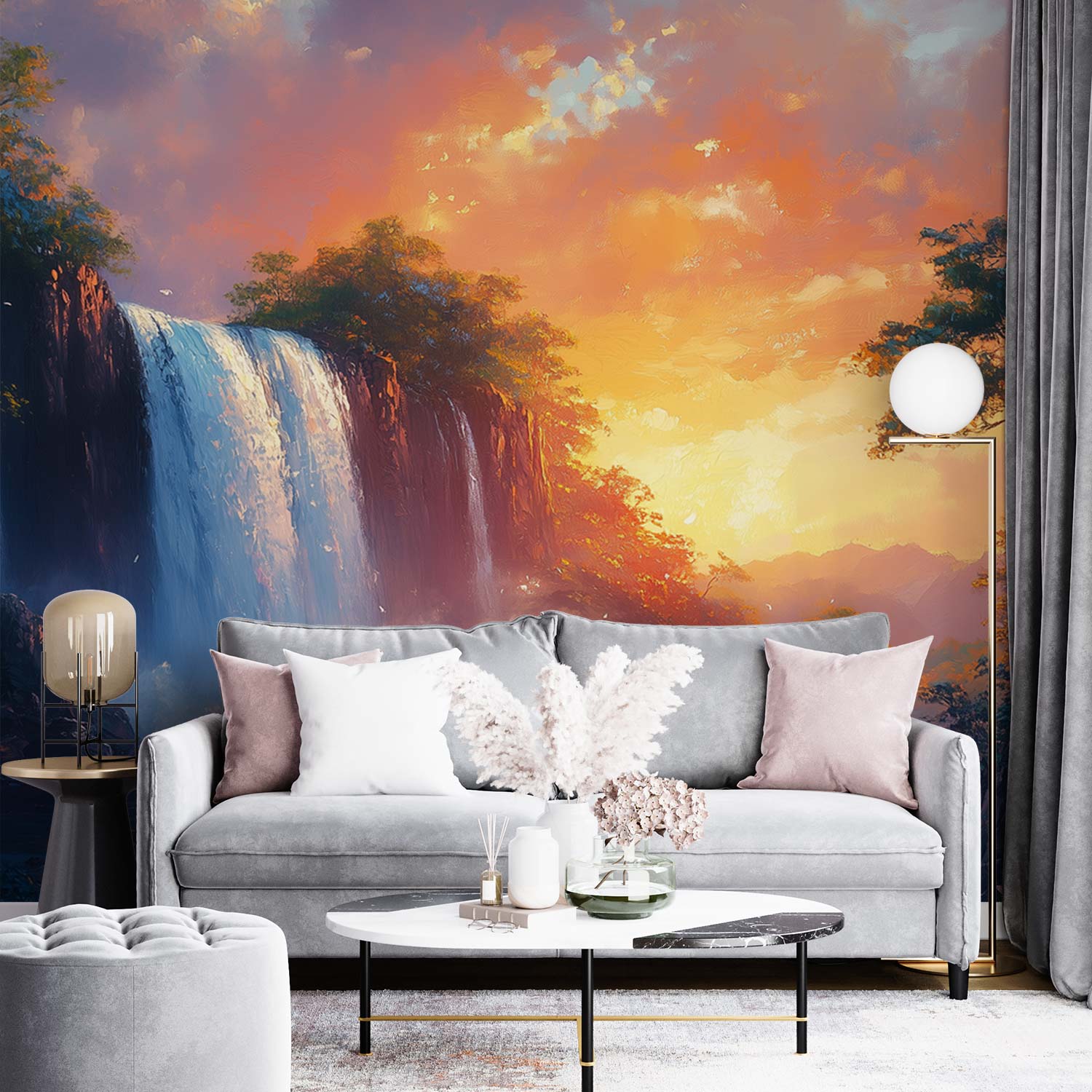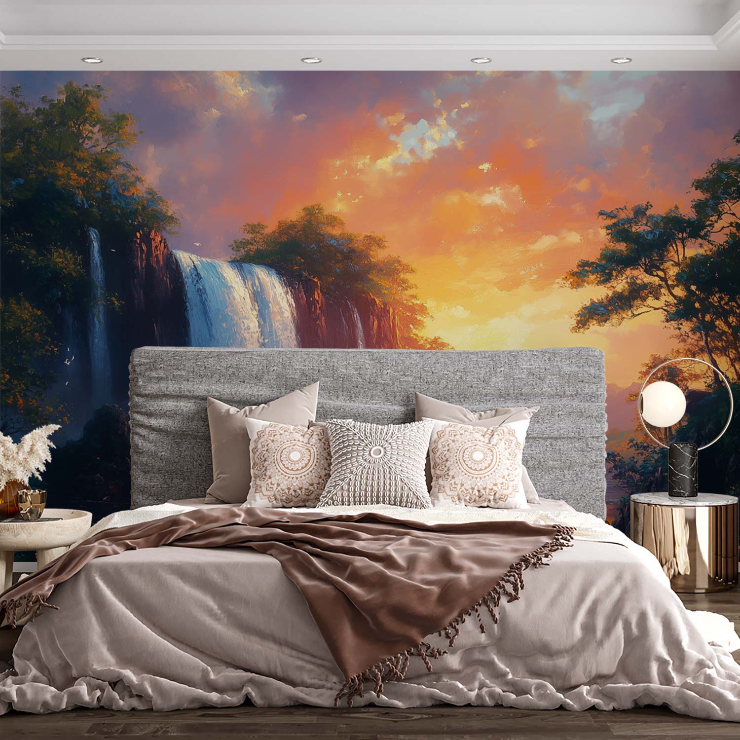 Terug naar collectie / Behang / Zonsondergang bij waterval behang