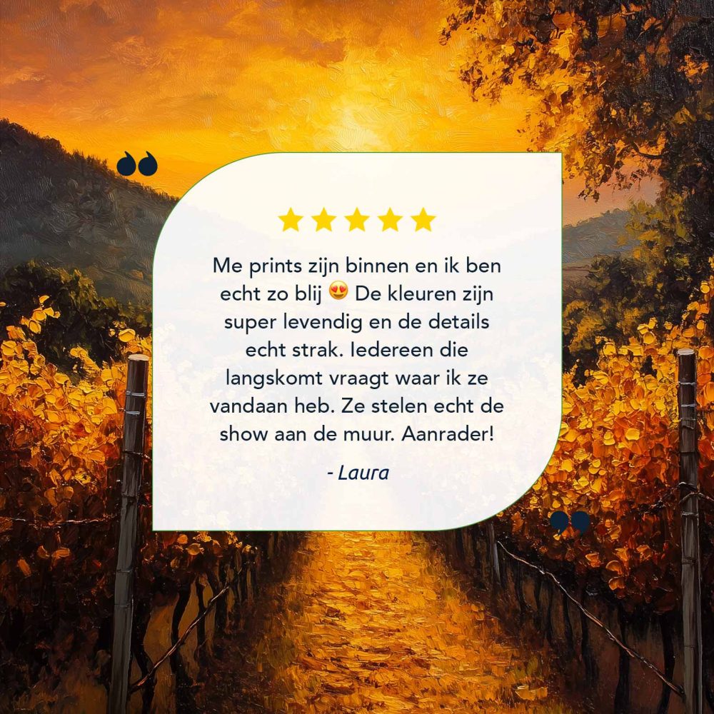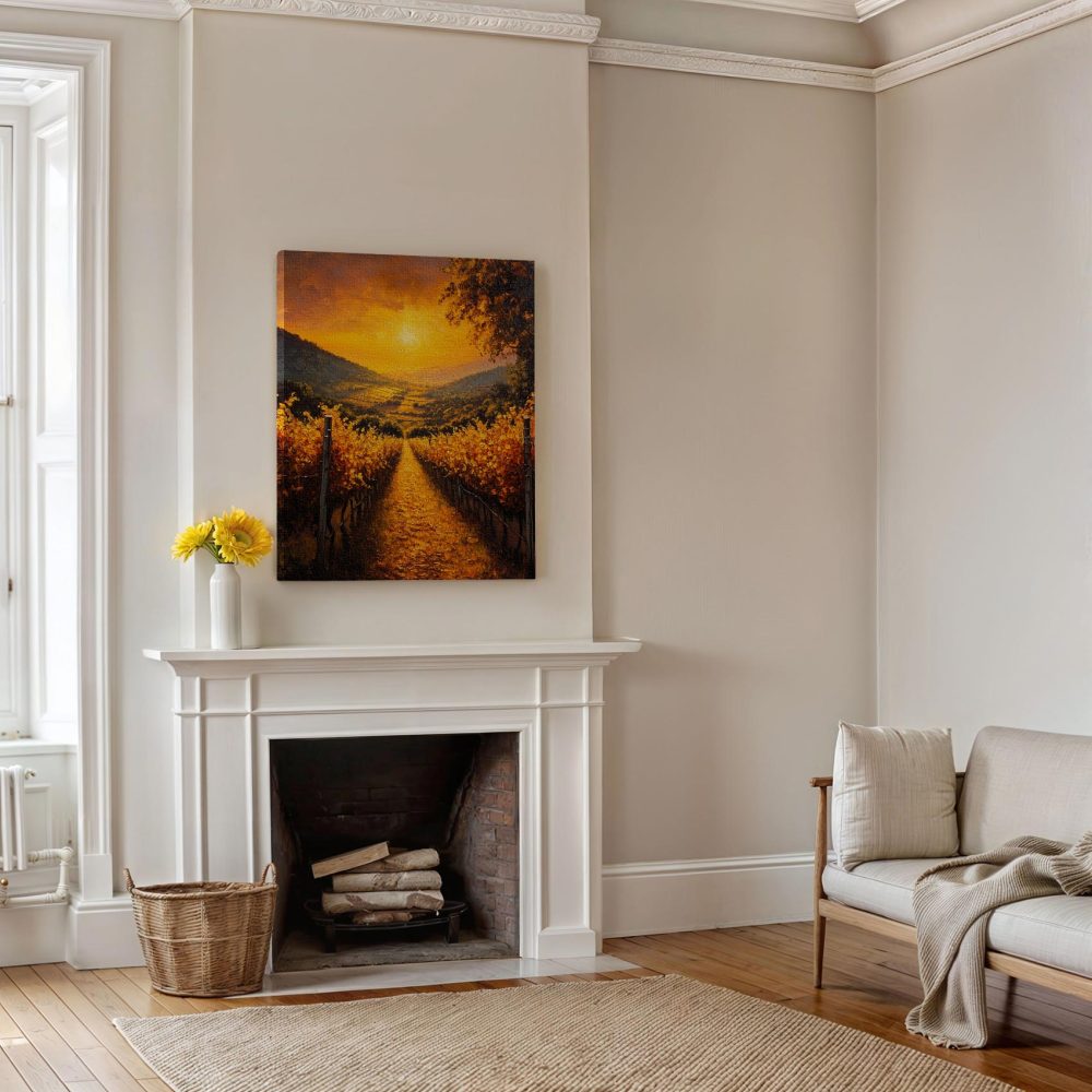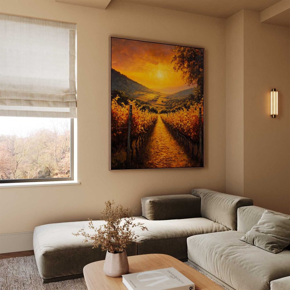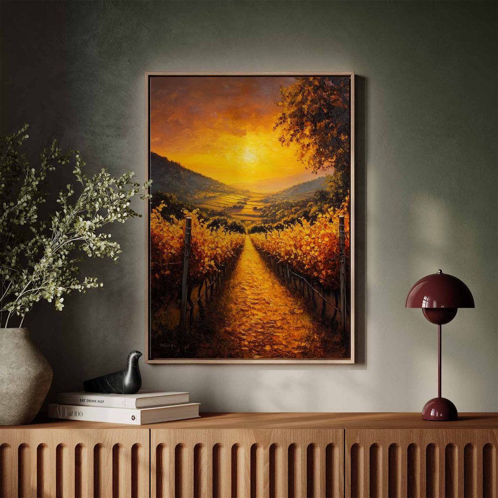 Terug naar collectie / Schilderijen / Bergen Schilderij / Zonsondergang in wijngaard