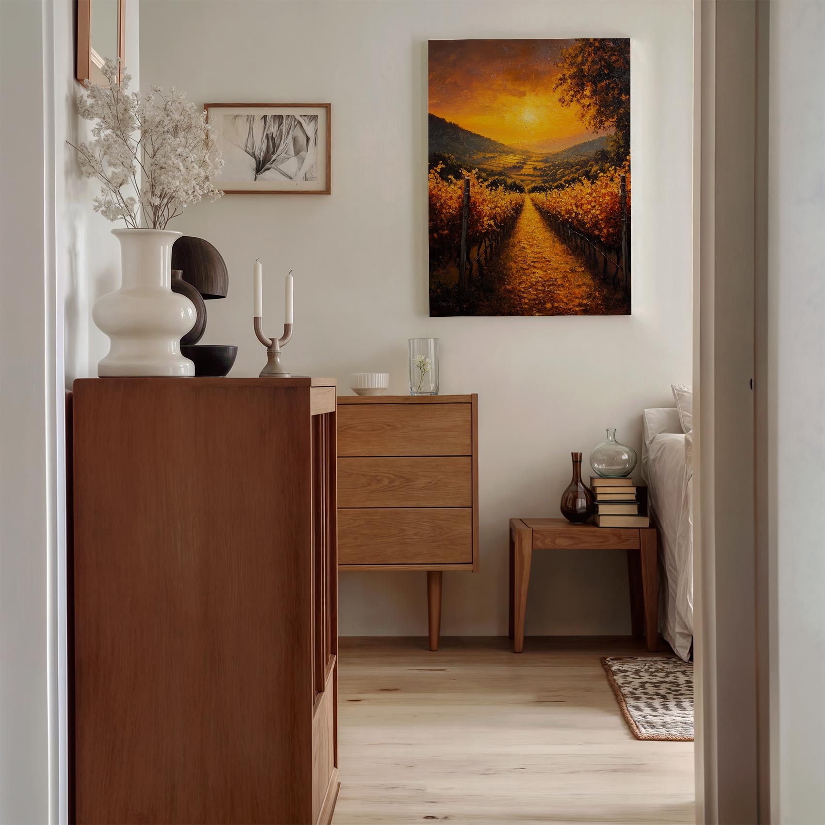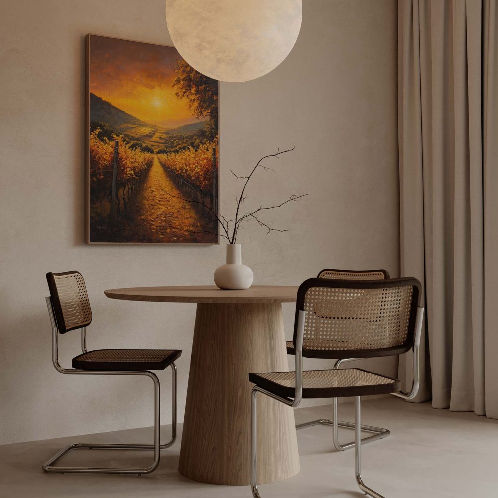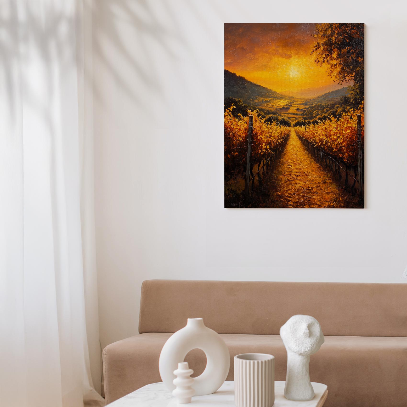 Terug naar collectie / Schilderijen / Bergen Schilderij / Zonsondergang in wijngaard