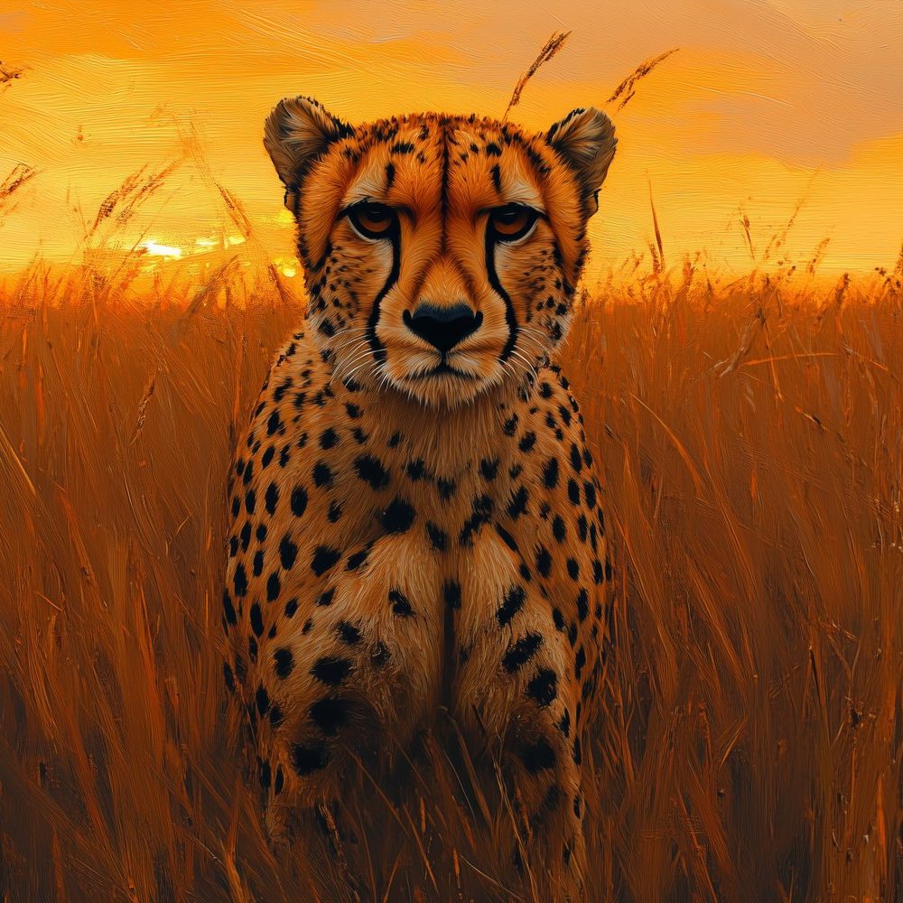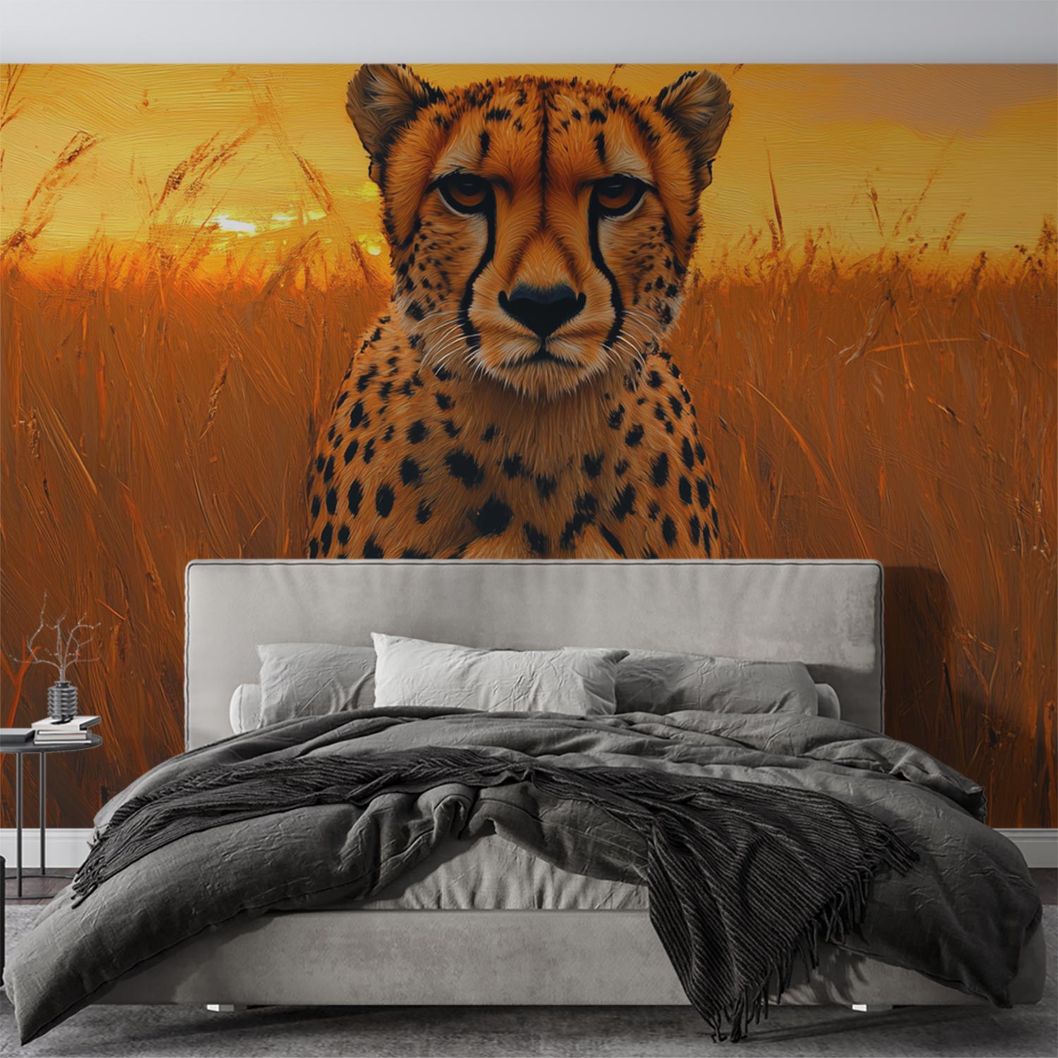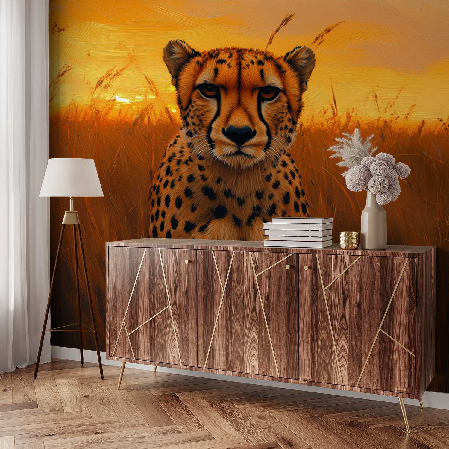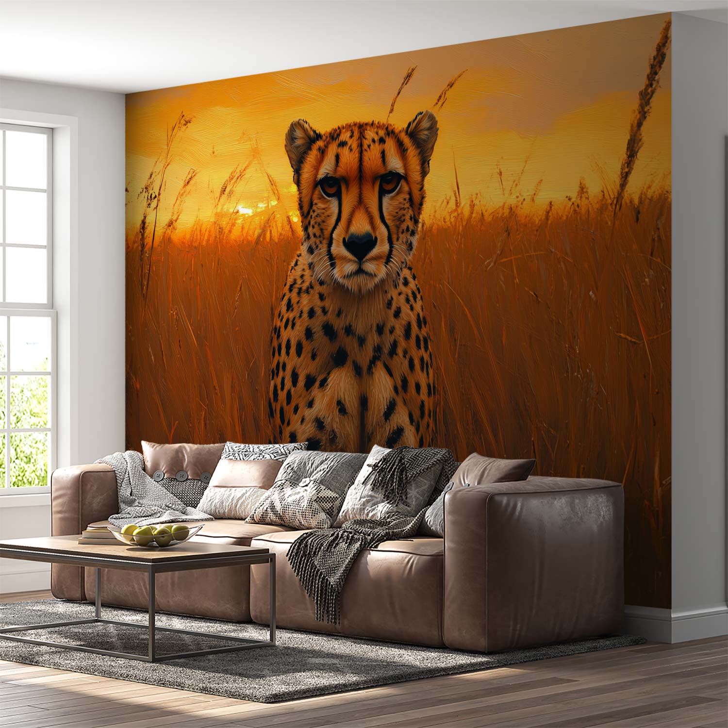 Terug naar collectie / Behang / Zonsondergang met jagende cheetah behang