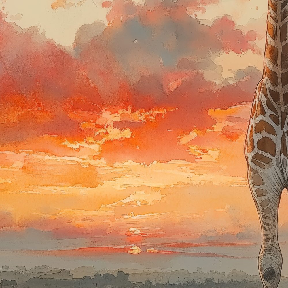 Zonsondergang met majestueuze giraffe behang