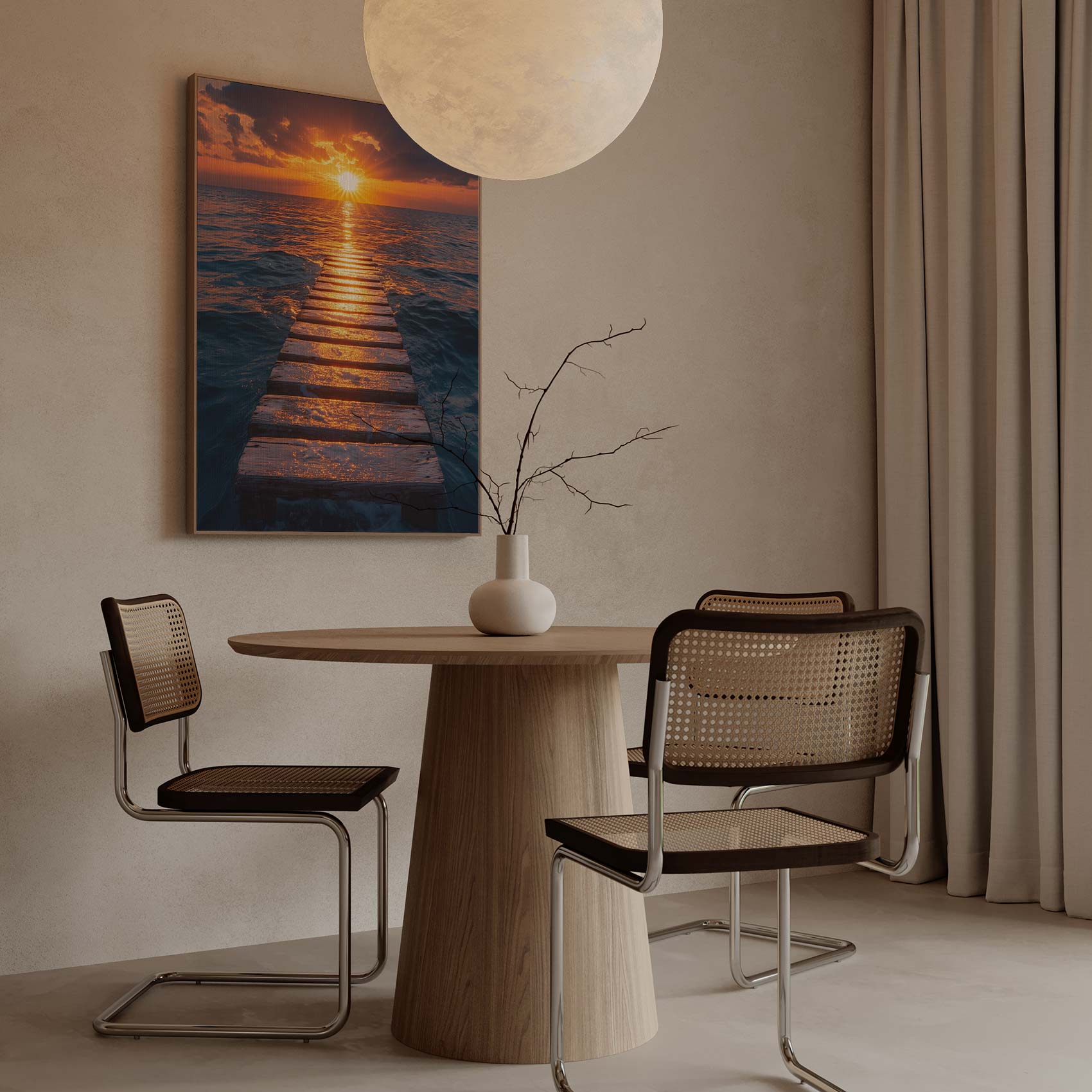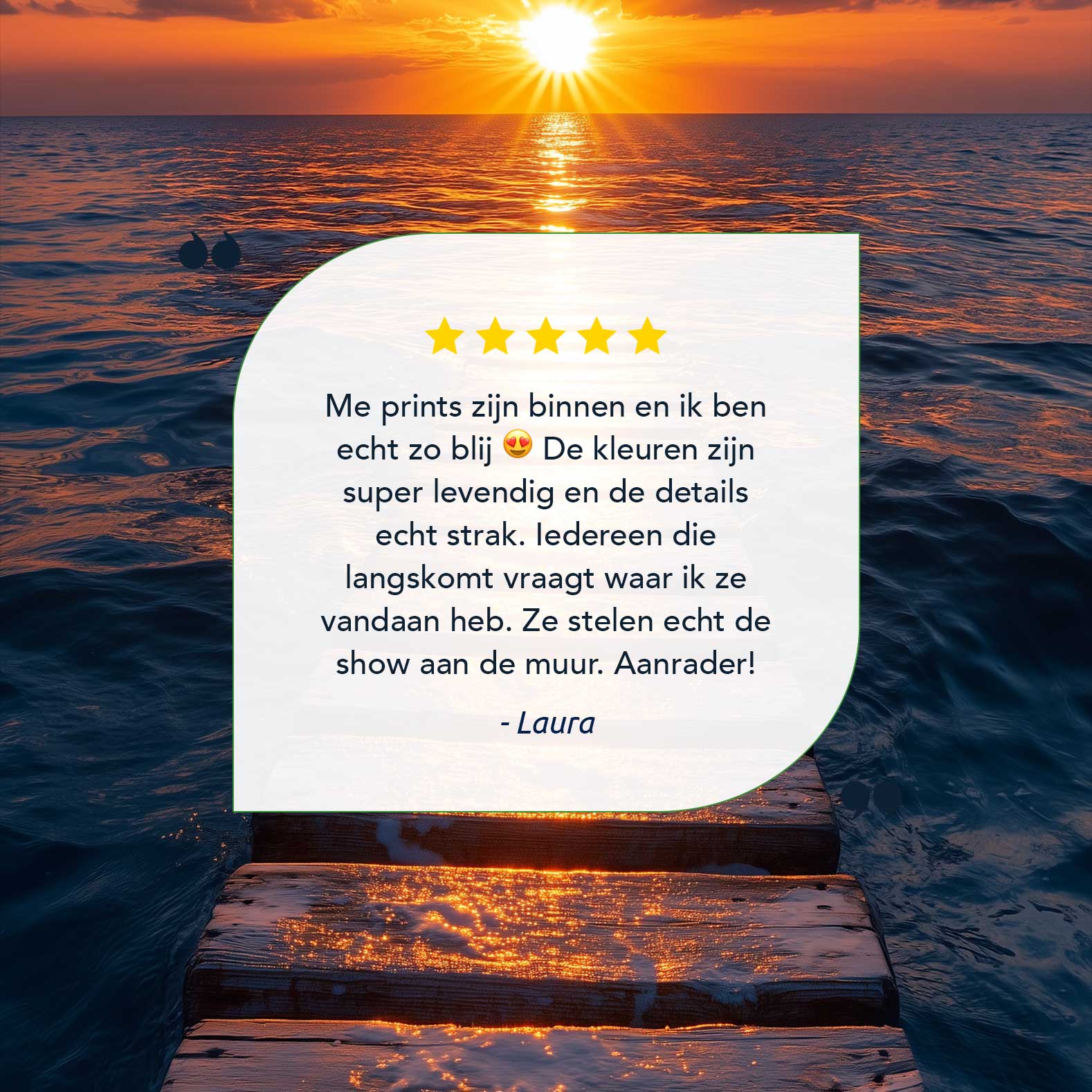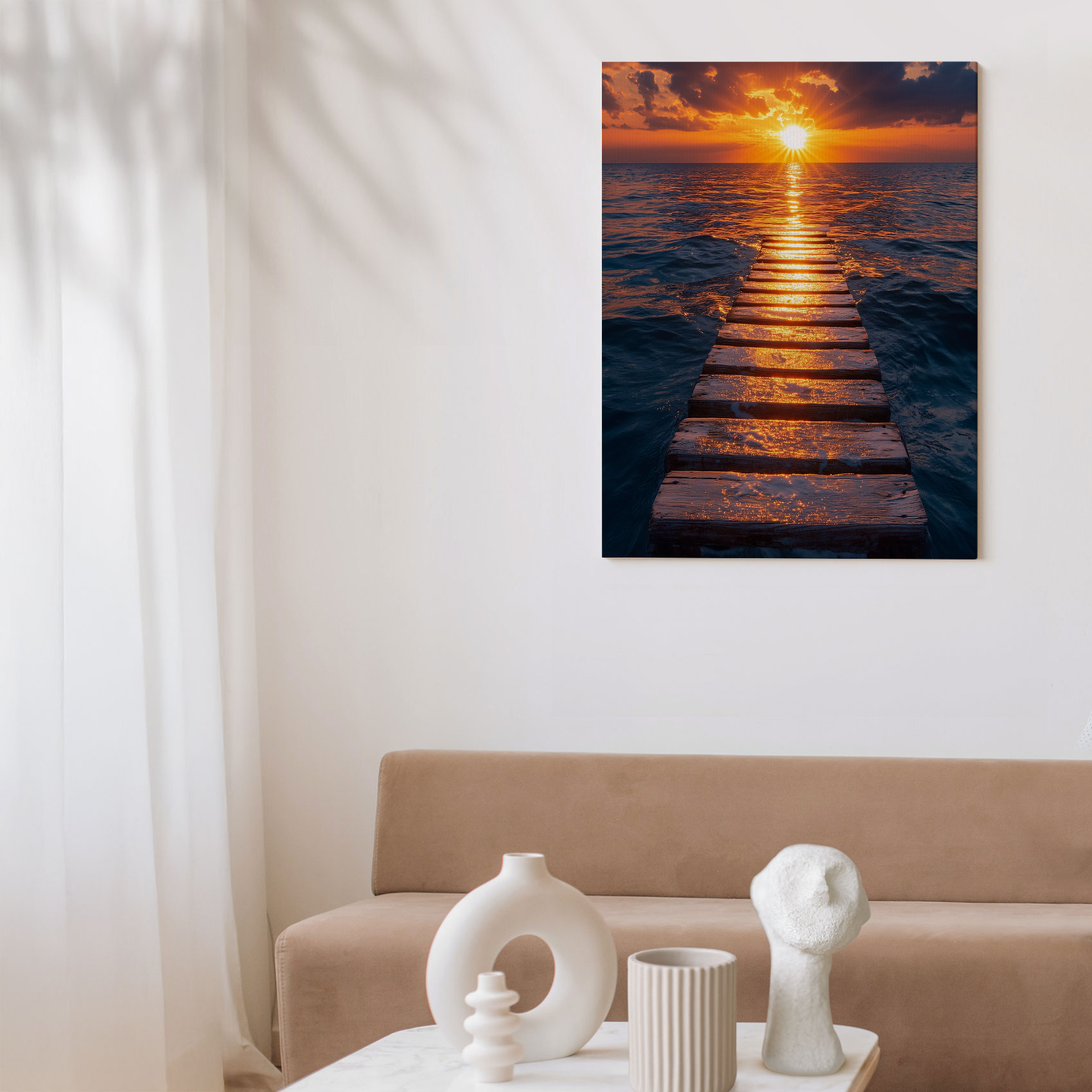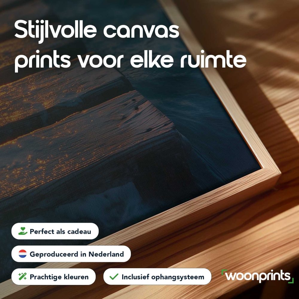 Terug naar collectie / Schilderijen / Fotografie Schilderij / Zonsondergang op houten pier
