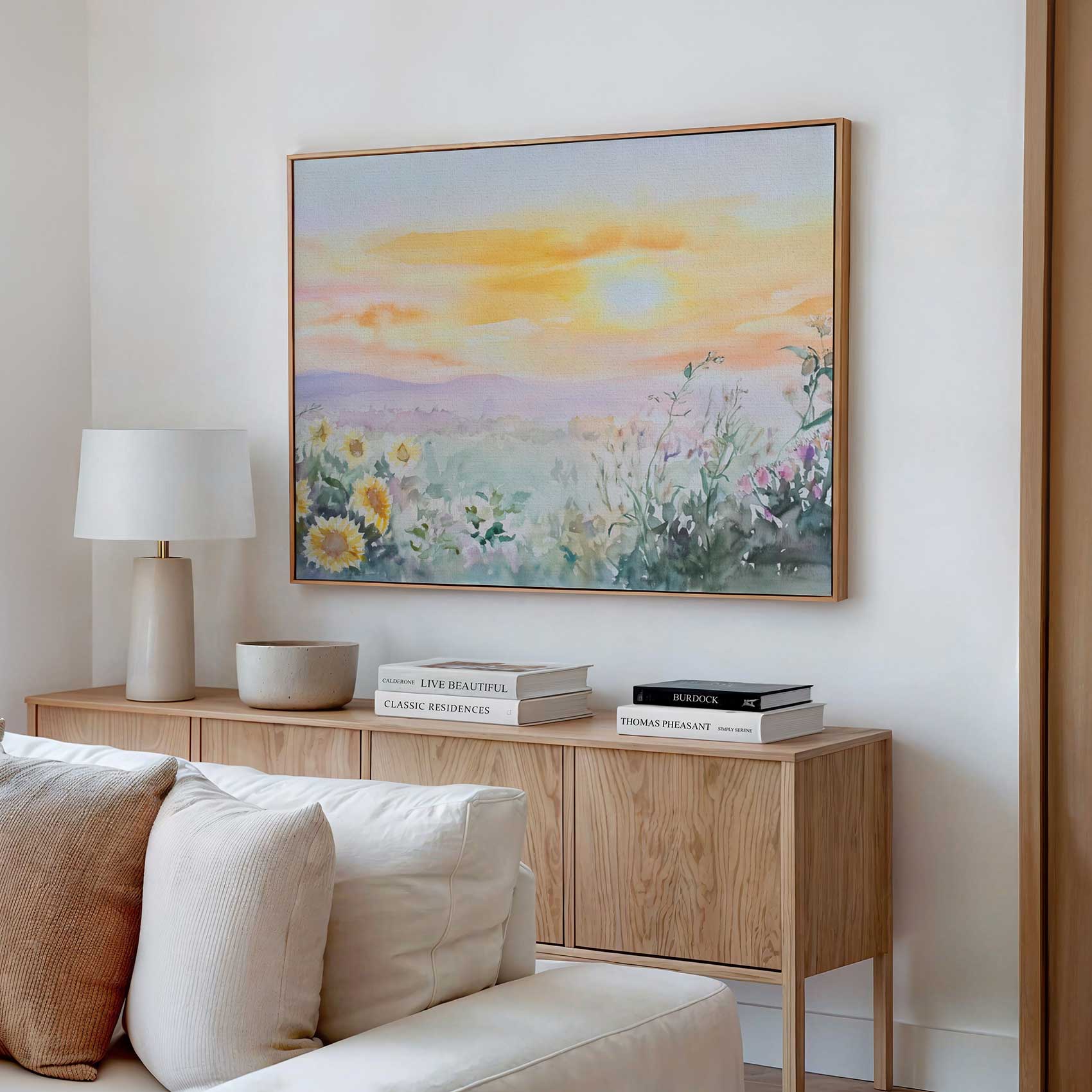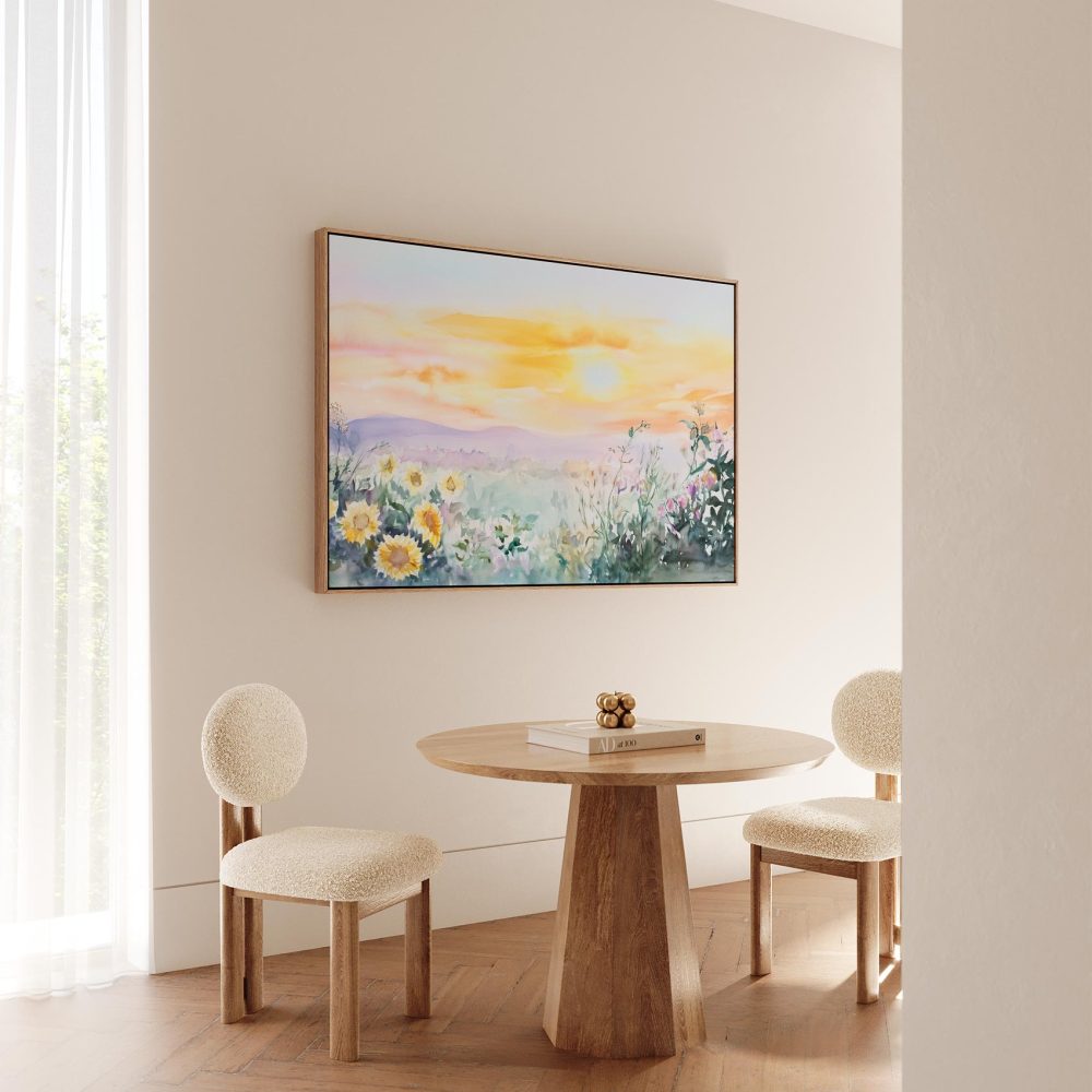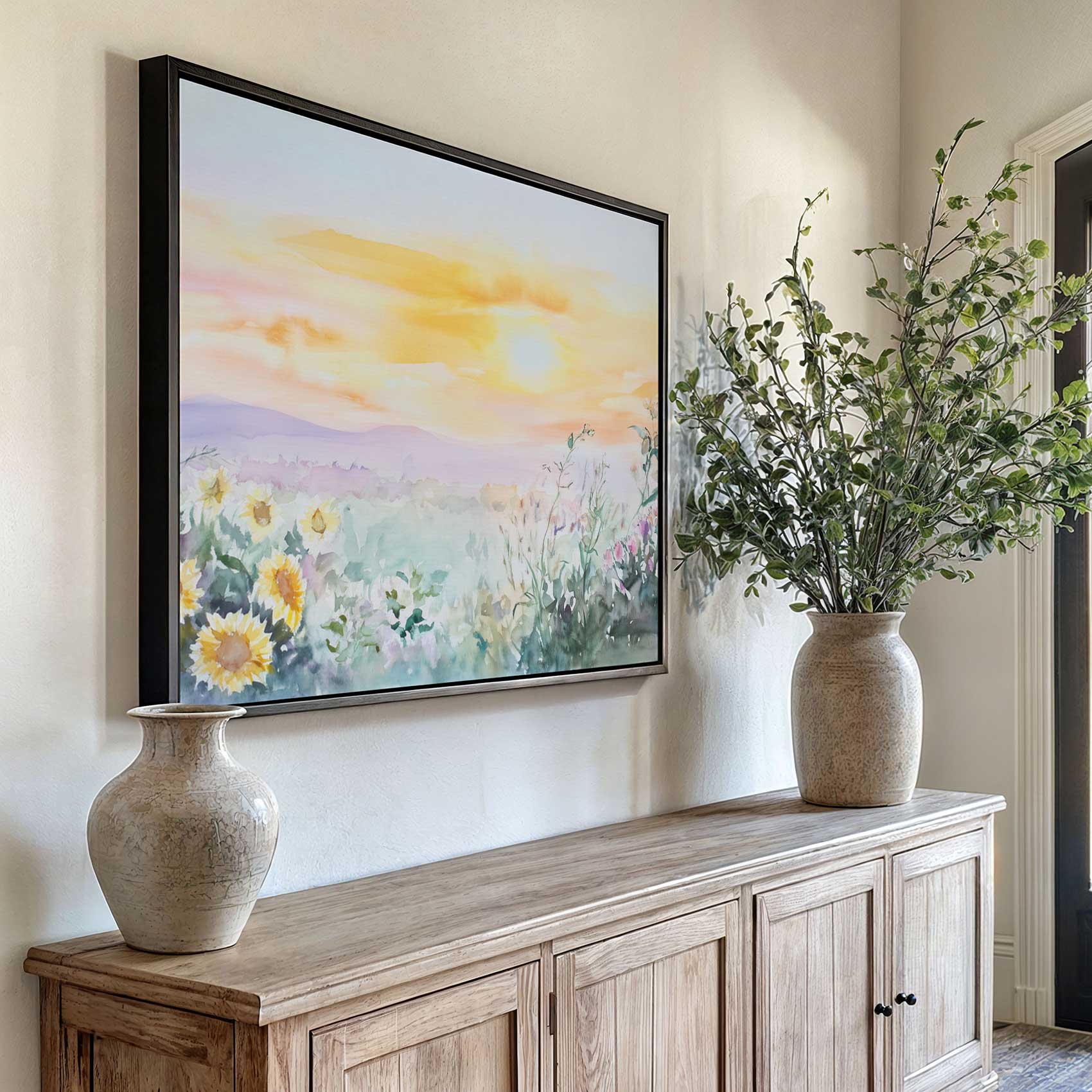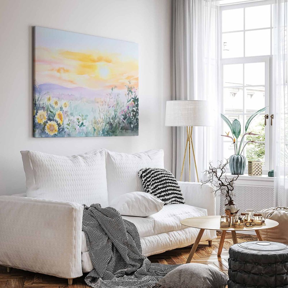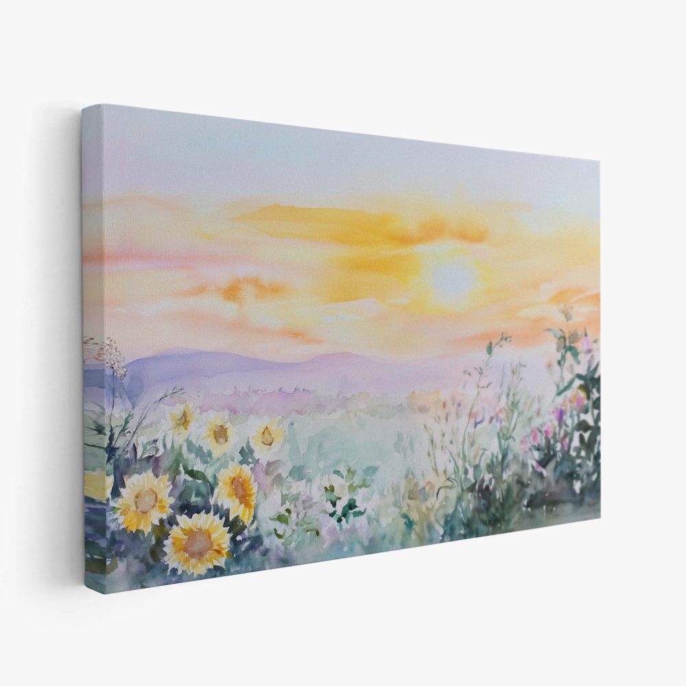 Terug naar collectie / Schilderijen / Bloemen Schilderij / Zonsondergang tussen zonnebloemen