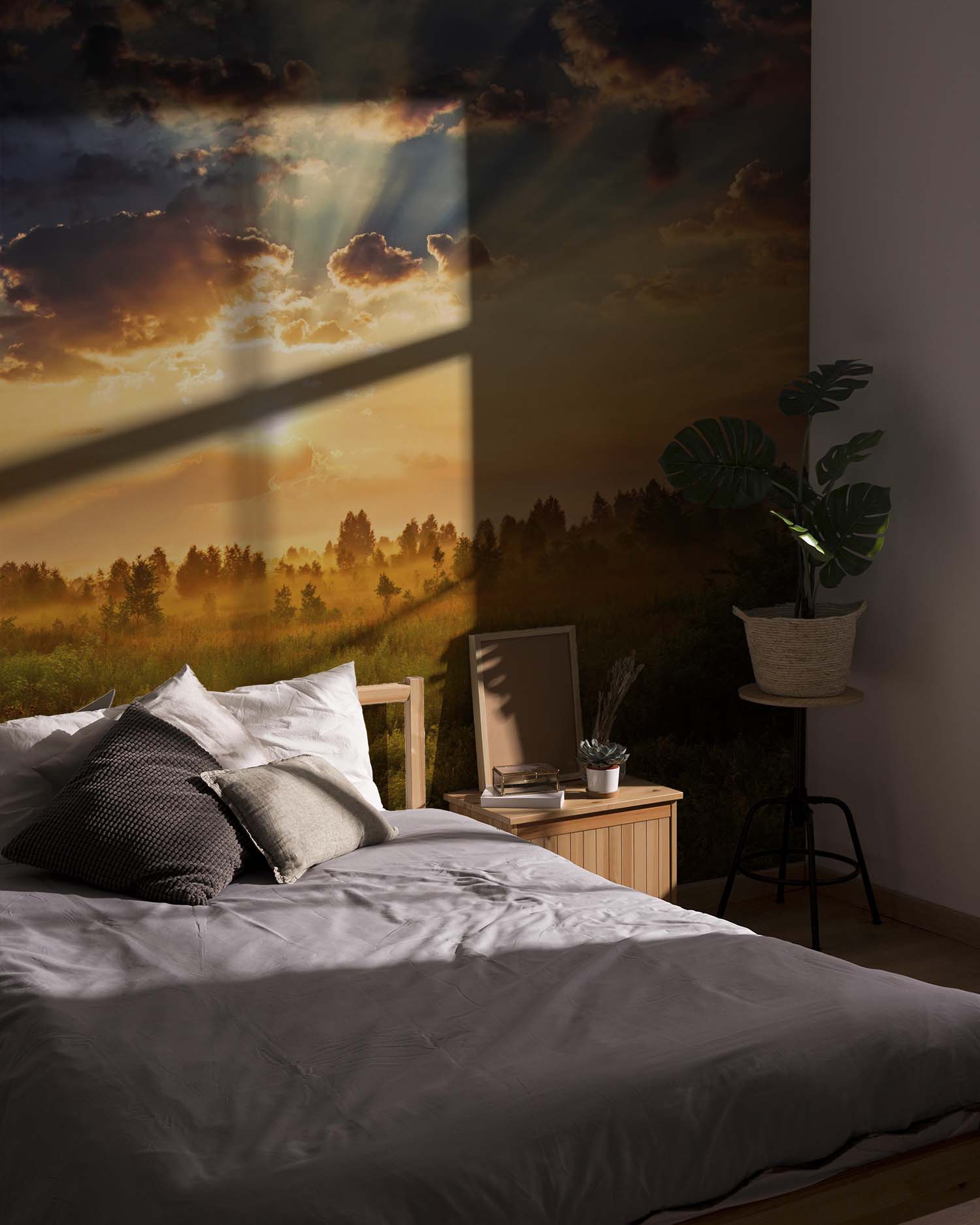 U ontvangt een staal van 15 × 20 cm op Variovlies behang, met dezelfde print en structuur als het uiteindelijke product. Zo kunt u thuis rustig beoordelen of het ontwerp goed past.