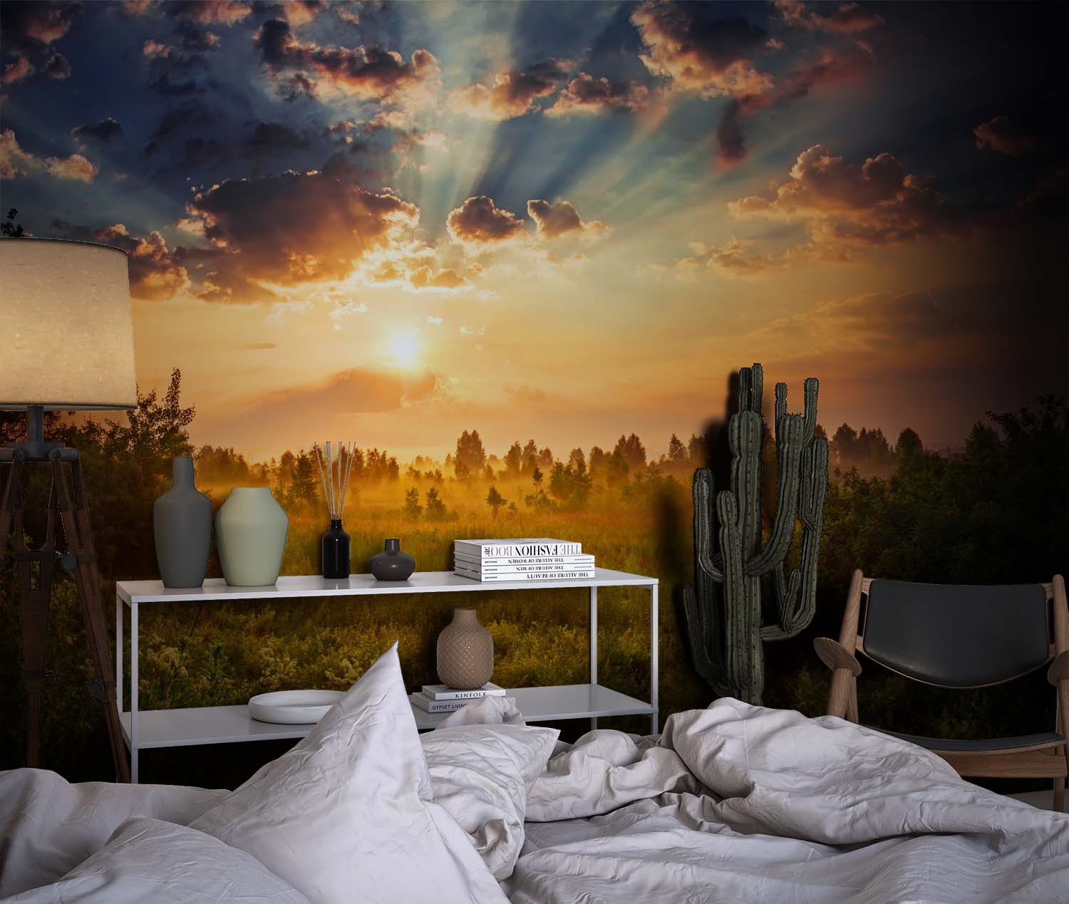 Terug naar collectie / Behang / Zonsondergang Velden Natuur Behang