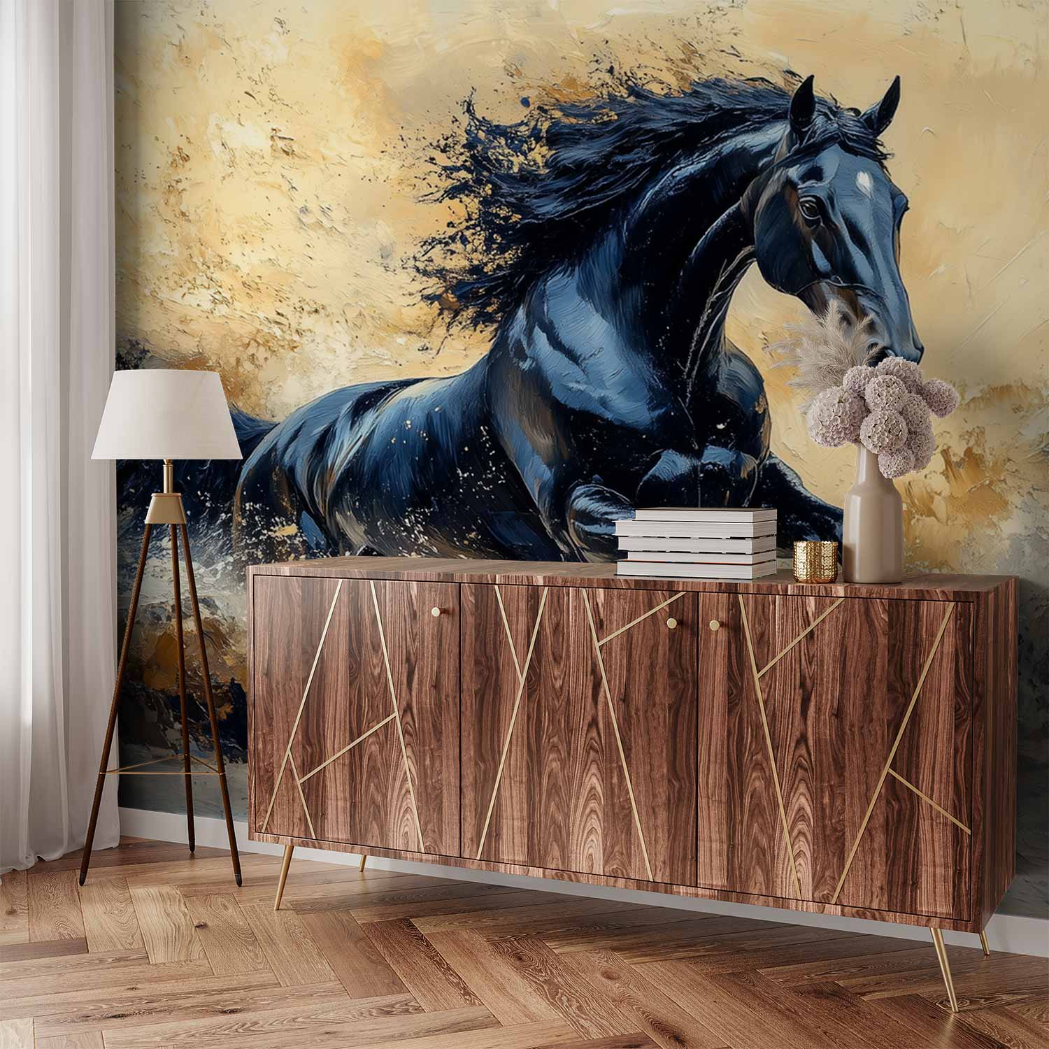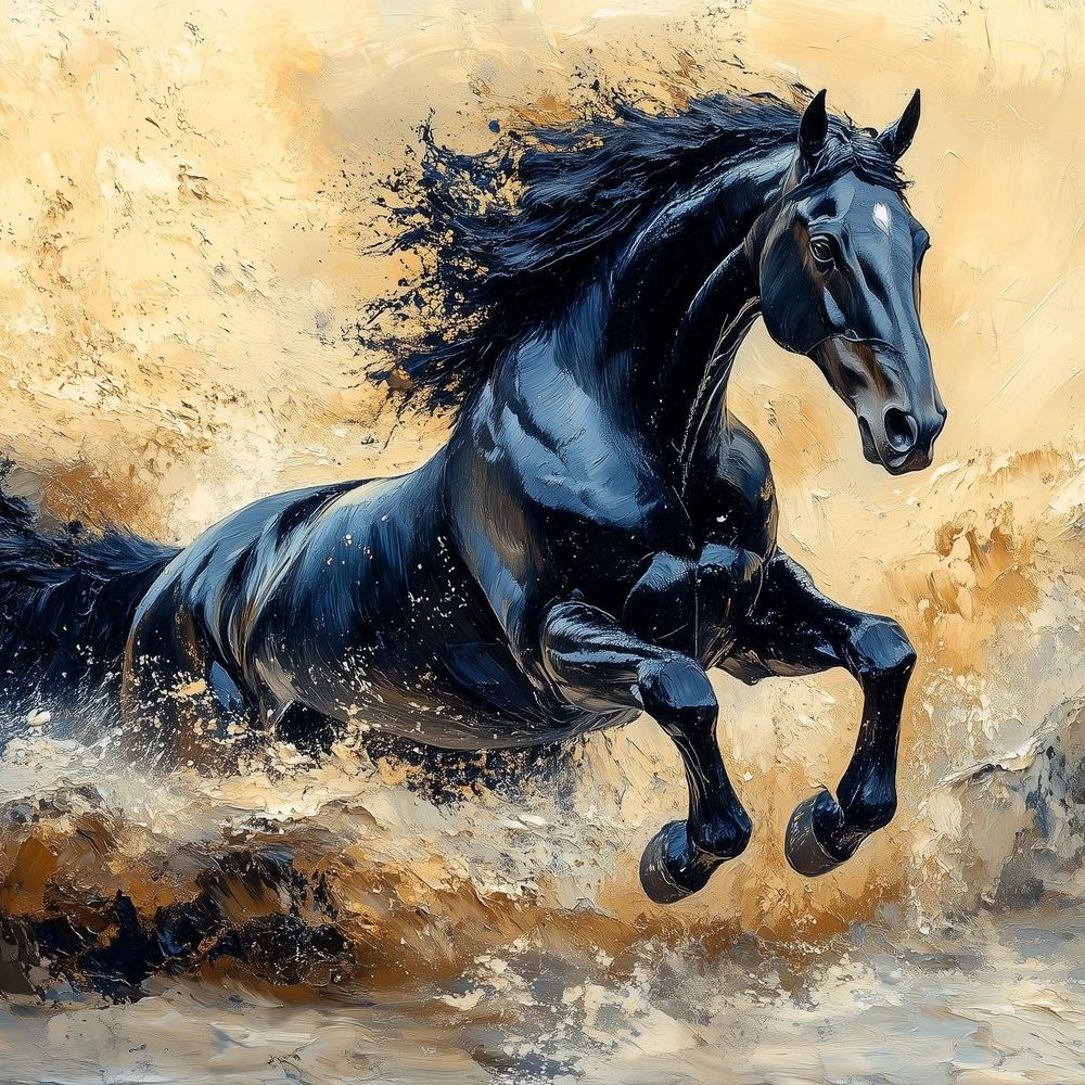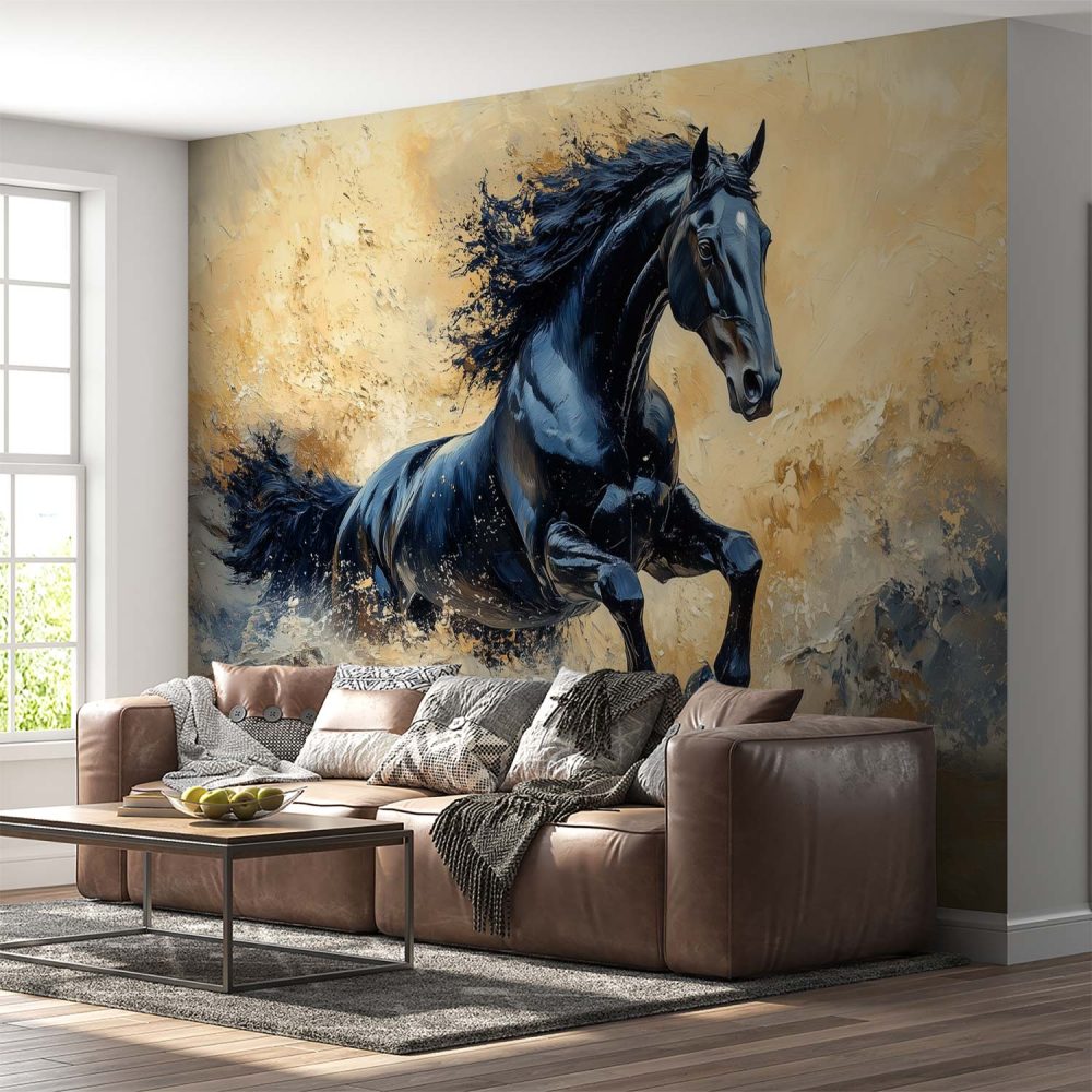 Terug naar collectie / Behang / Abstract behang / Zwart galopperend paard behang