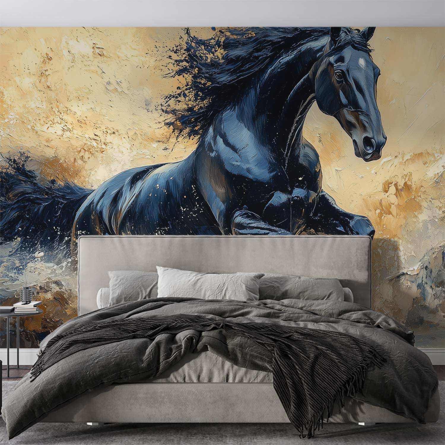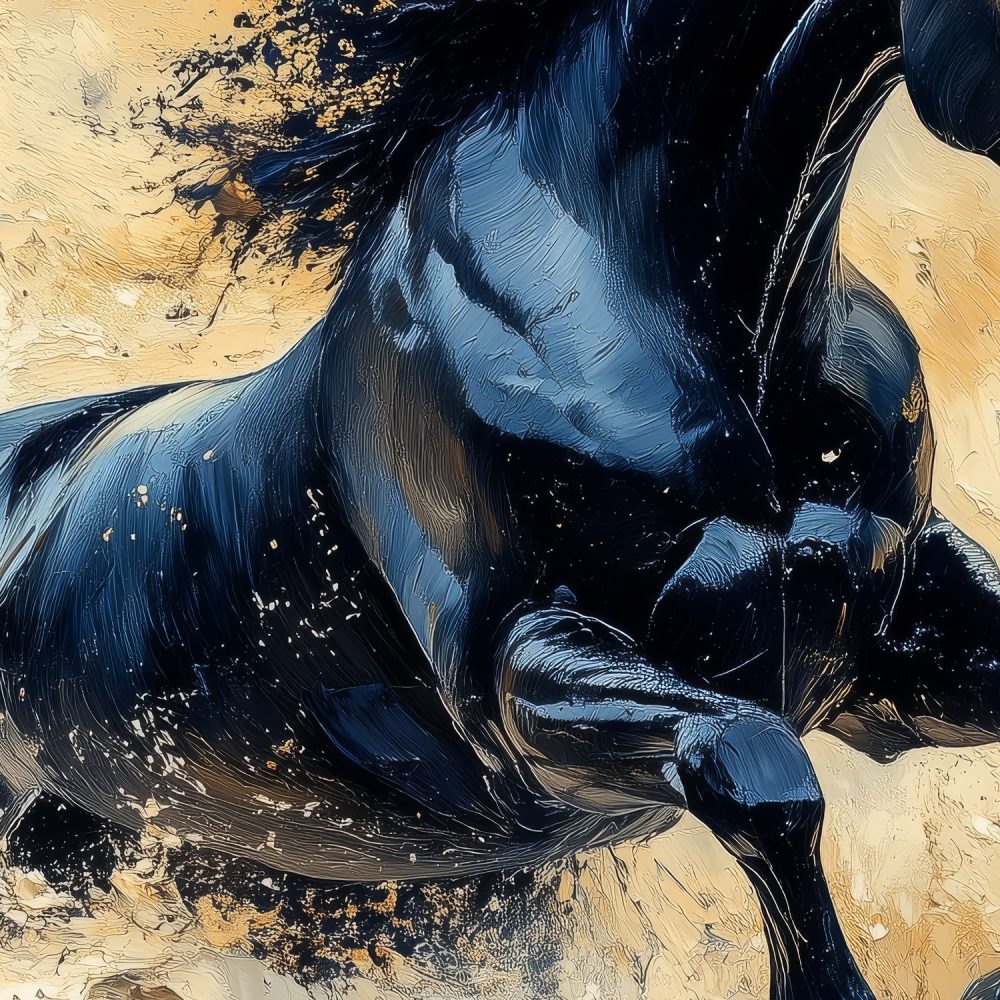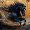 Zwart galopperend paard behang