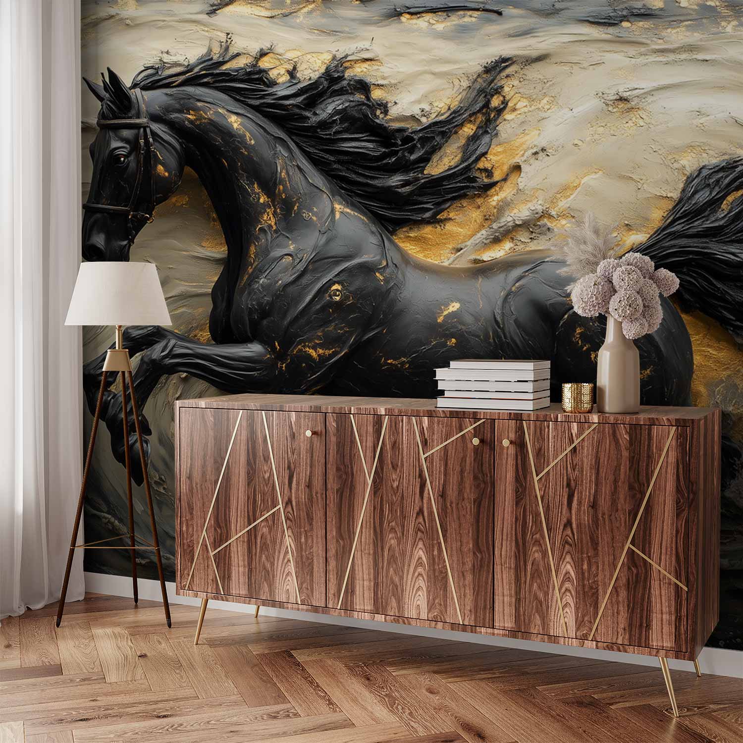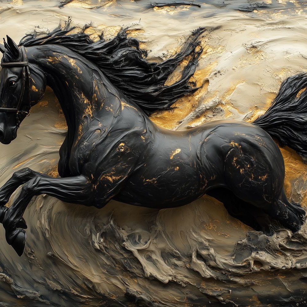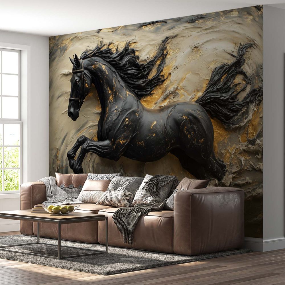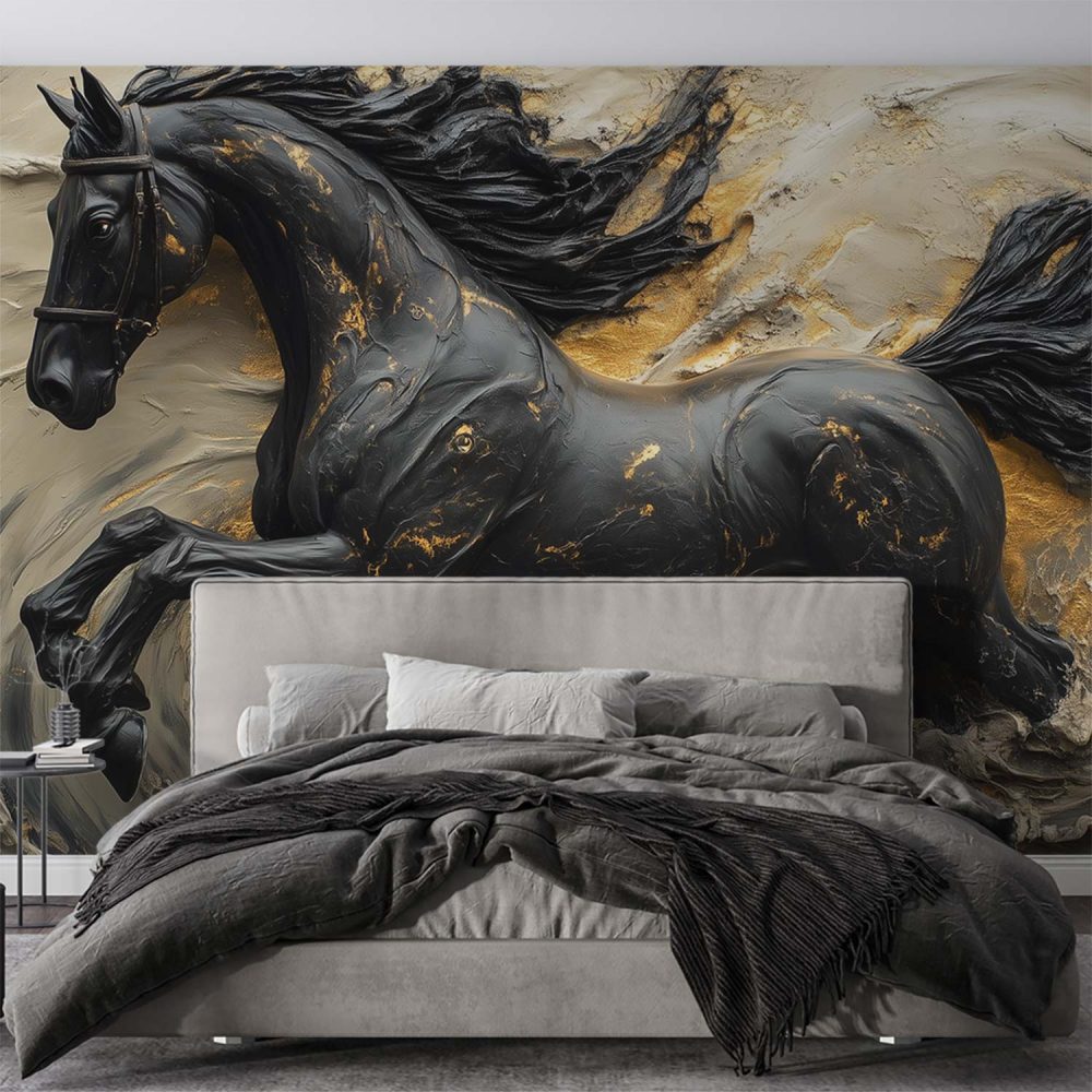 Zwart-Gouden Galopperend Paard behang