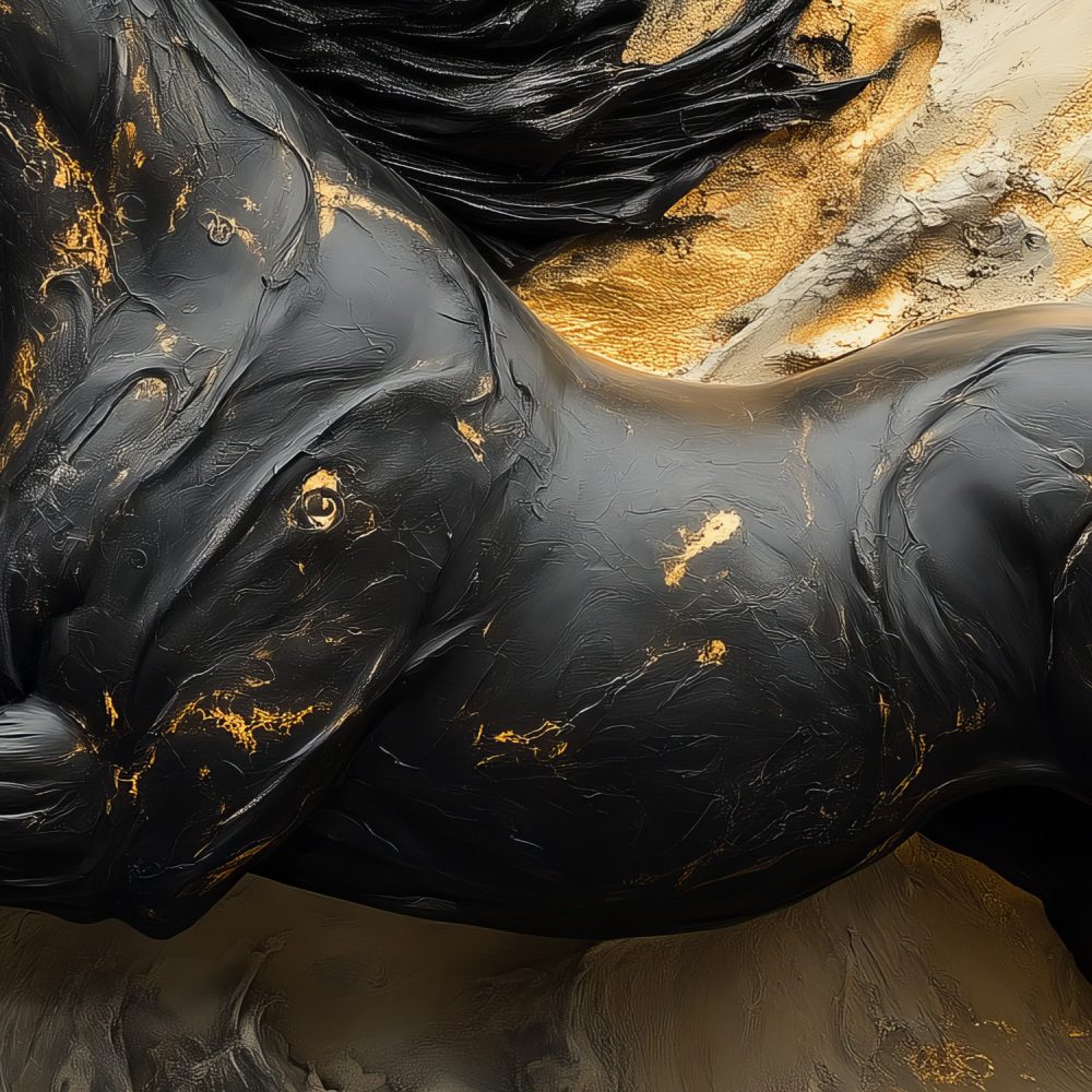 Terug naar collectie / Behang / Zwart-Gouden Galopperend Paard behang