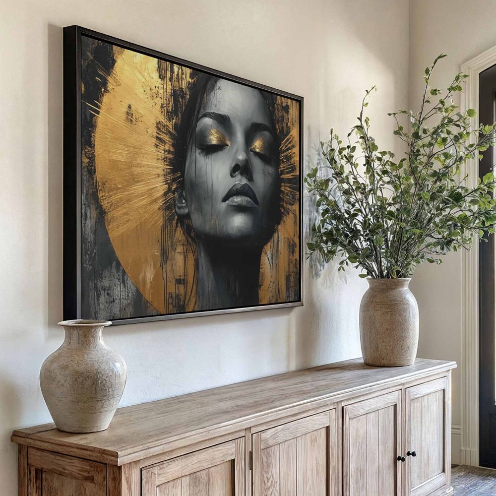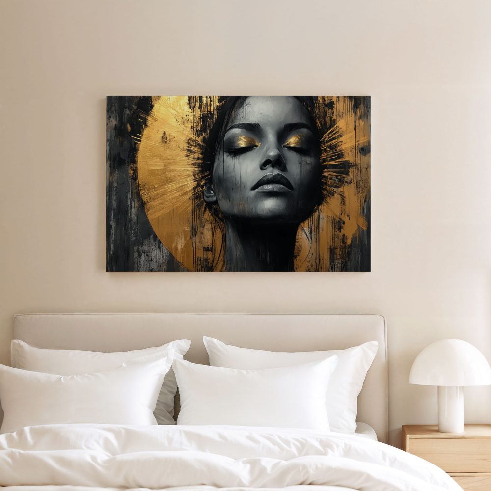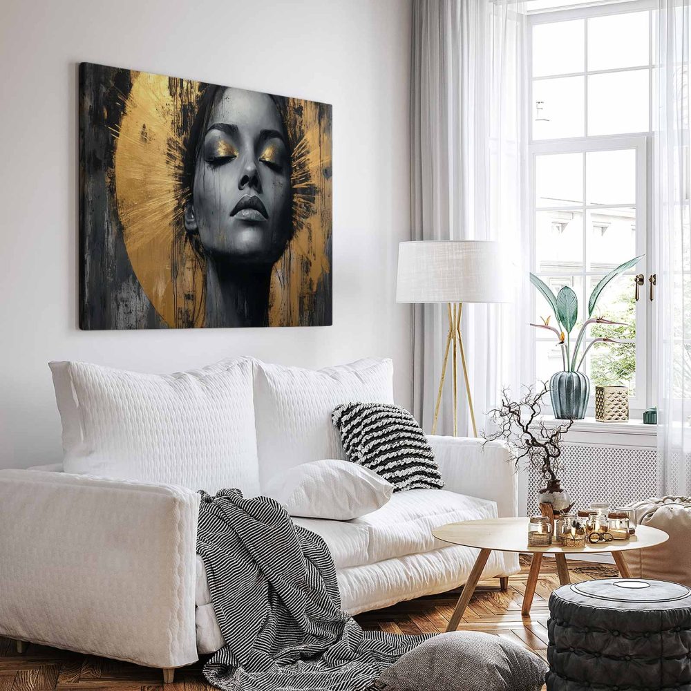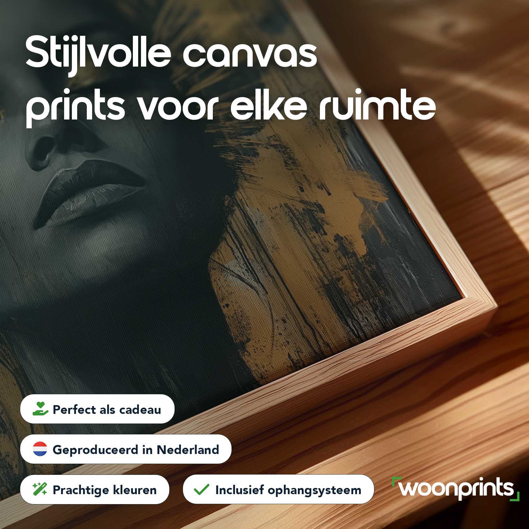 Terug naar collectie / Schilderijen / Abstract Schilderij / Zwart-gouden mysterieuze vrouw