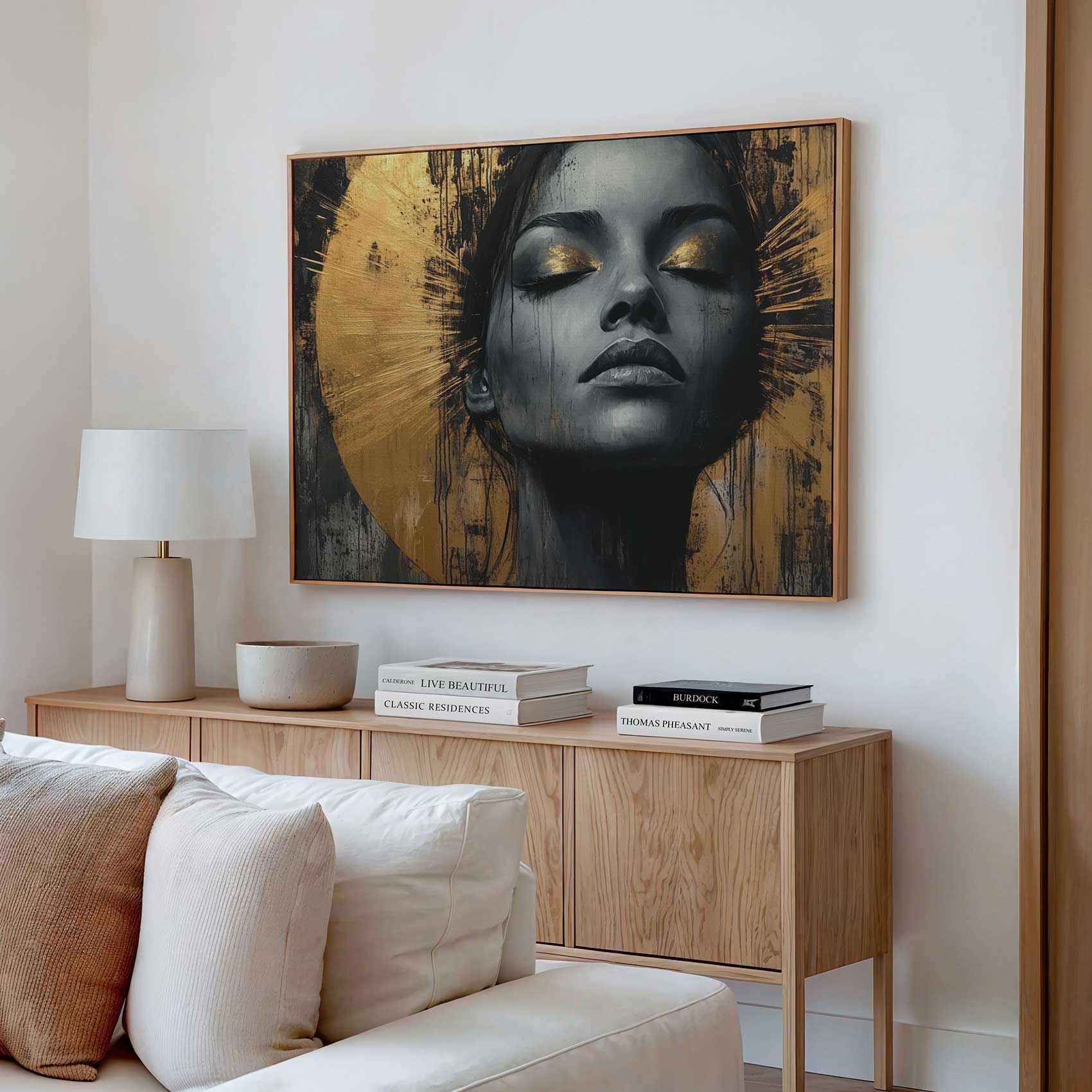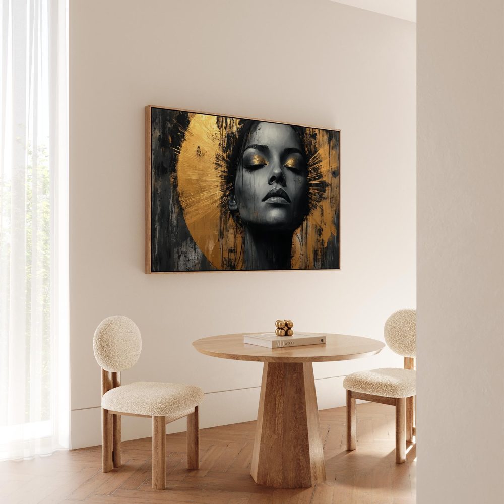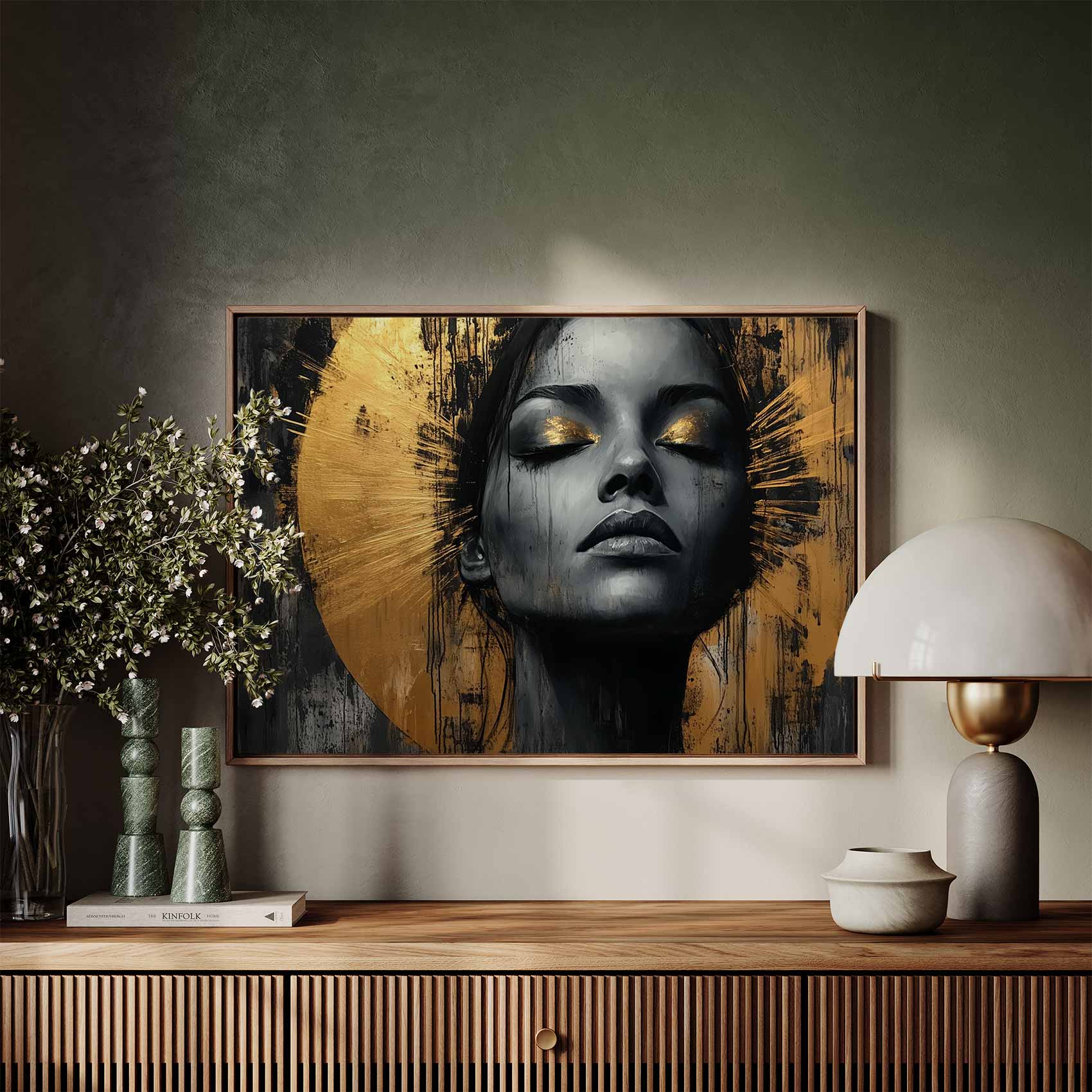Terug naar collectie / Schilderijen / Abstract Schilderij / Zwart-gouden mysterieuze vrouw