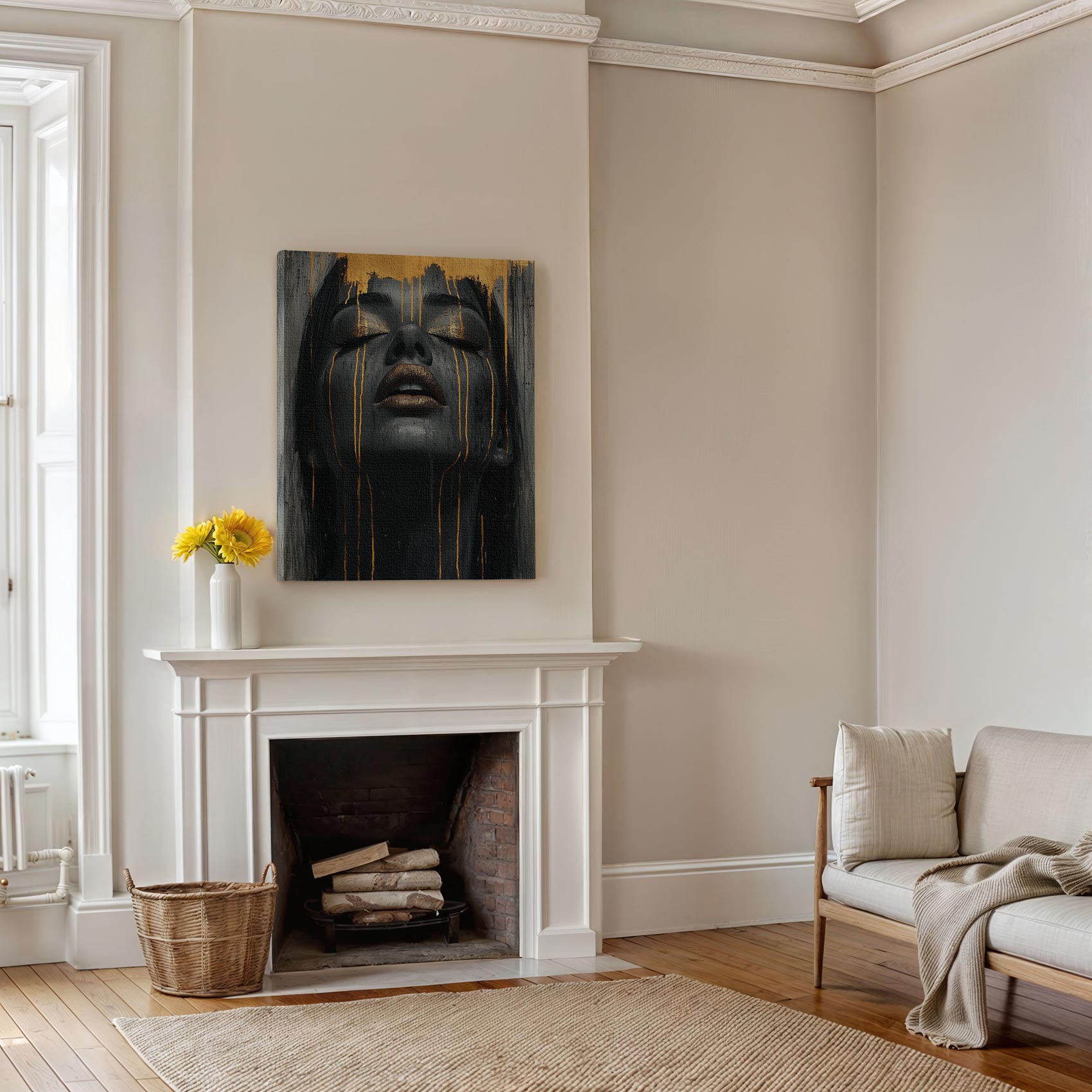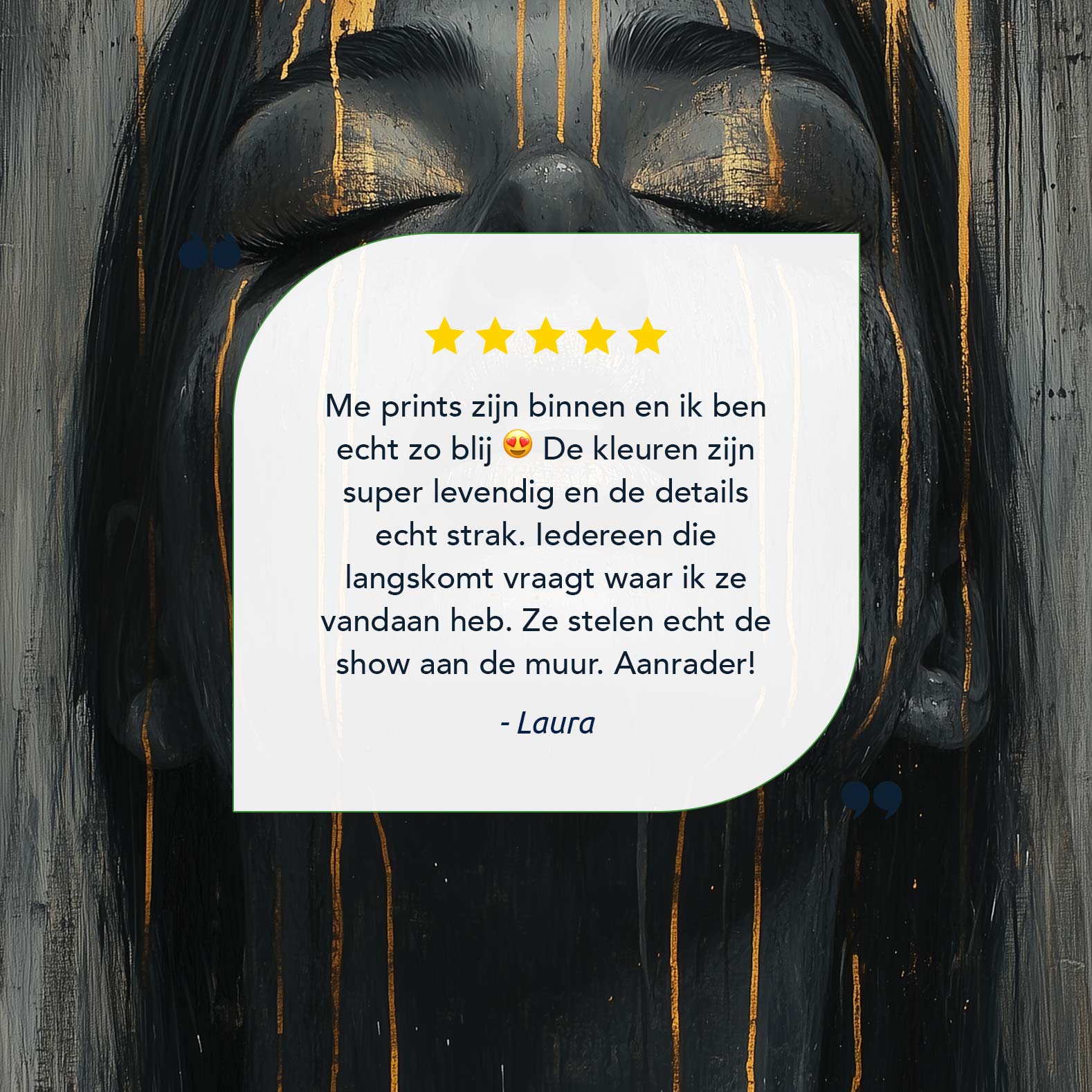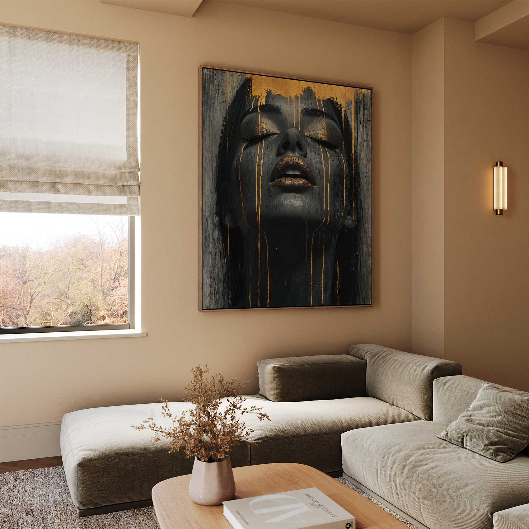 Terug naar collectie / Schilderijen / Abstract Schilderij / Zwart-gouden serene vrouwenportret