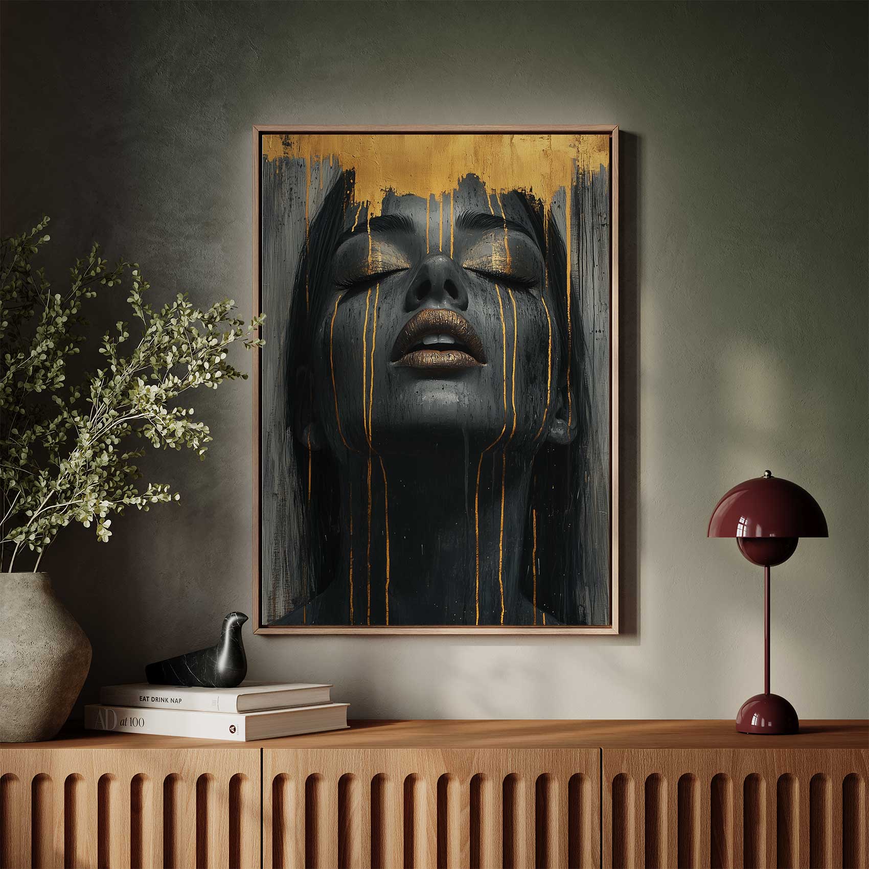 Zwart-gouden serene vrouwenportret