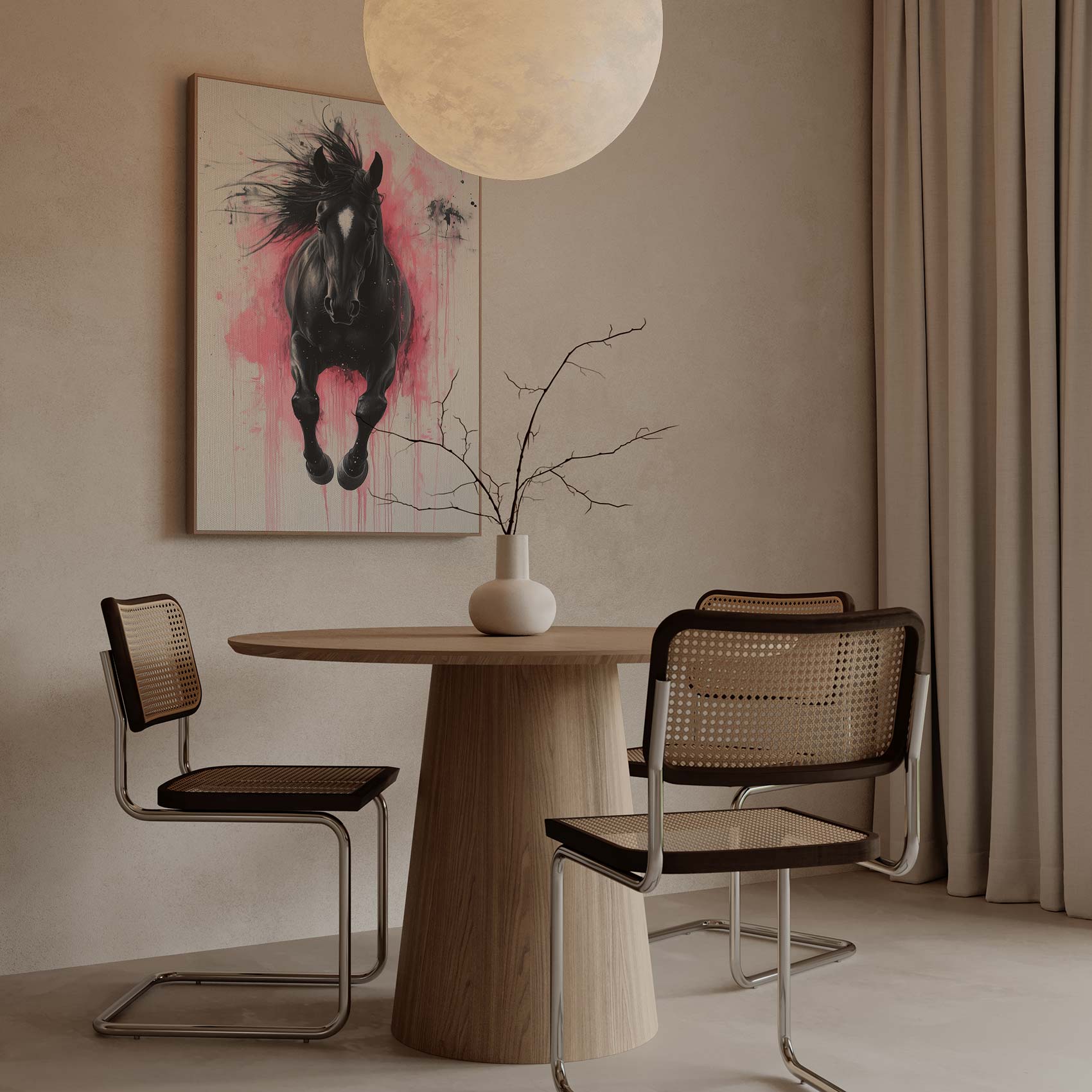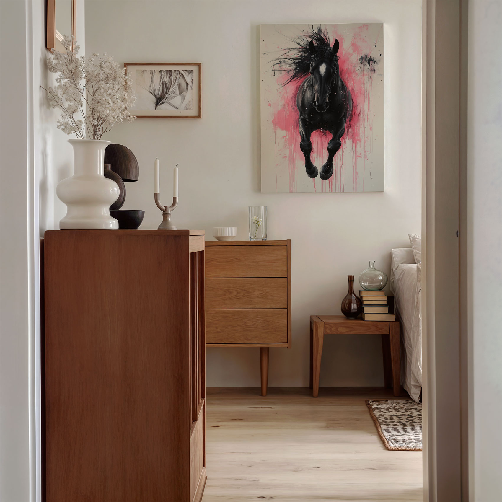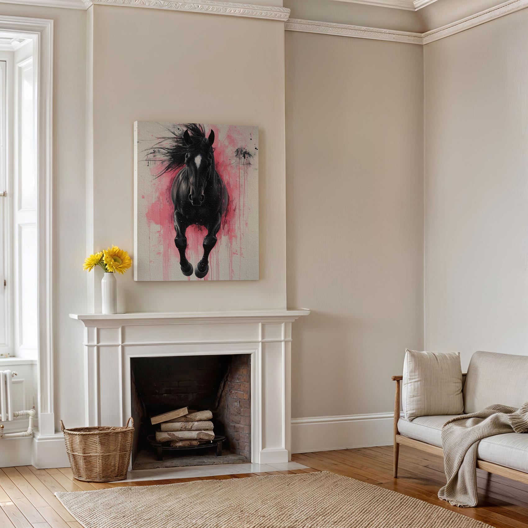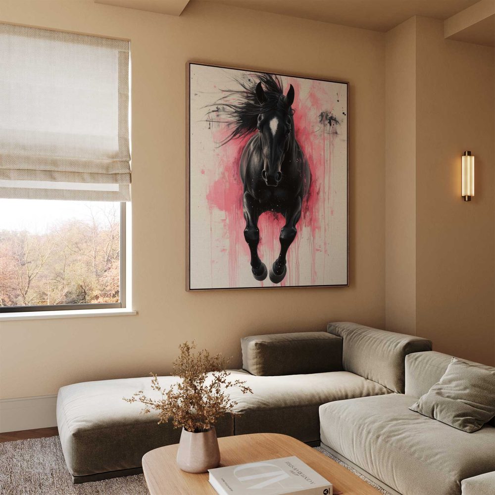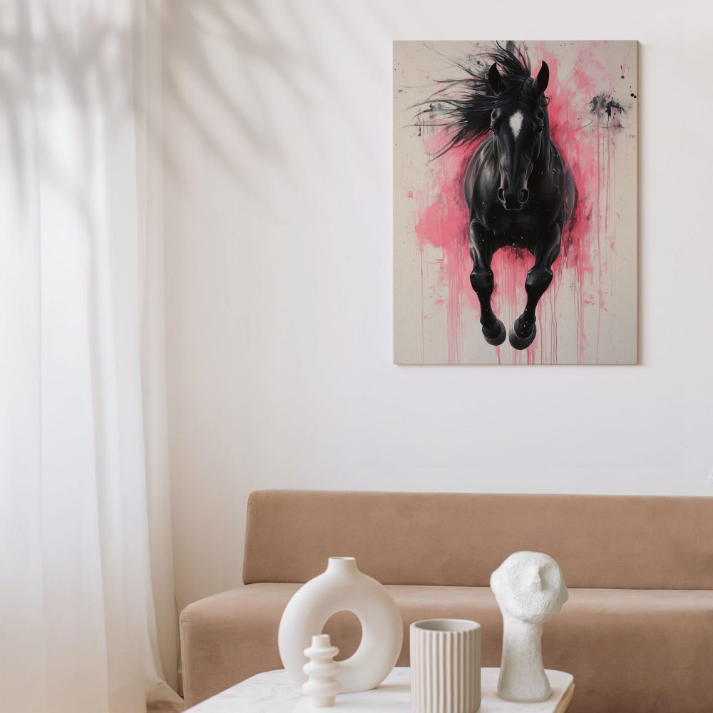 Terug naar collectie / Schilderijen / Abstract Schilderij / Zwart paard in dynamische galop