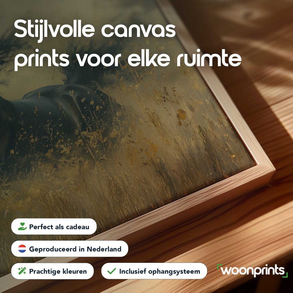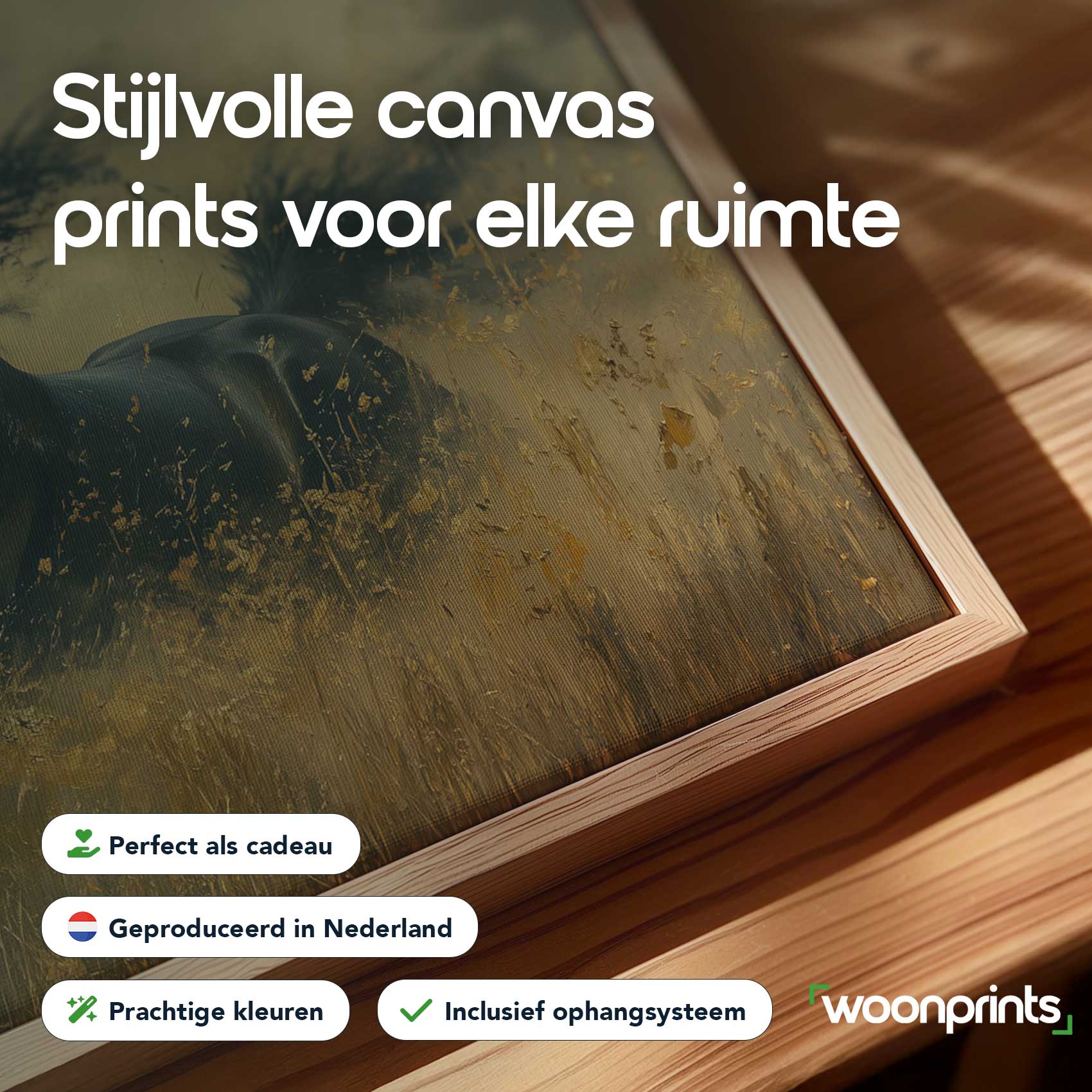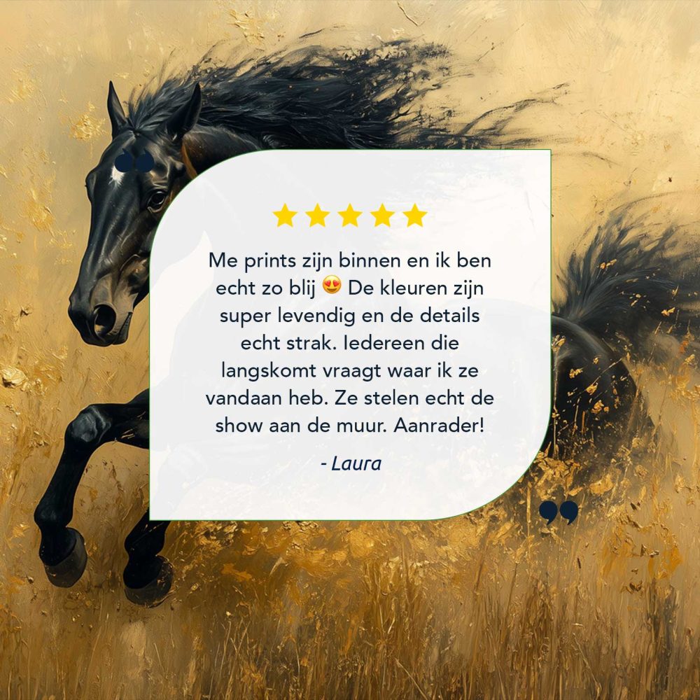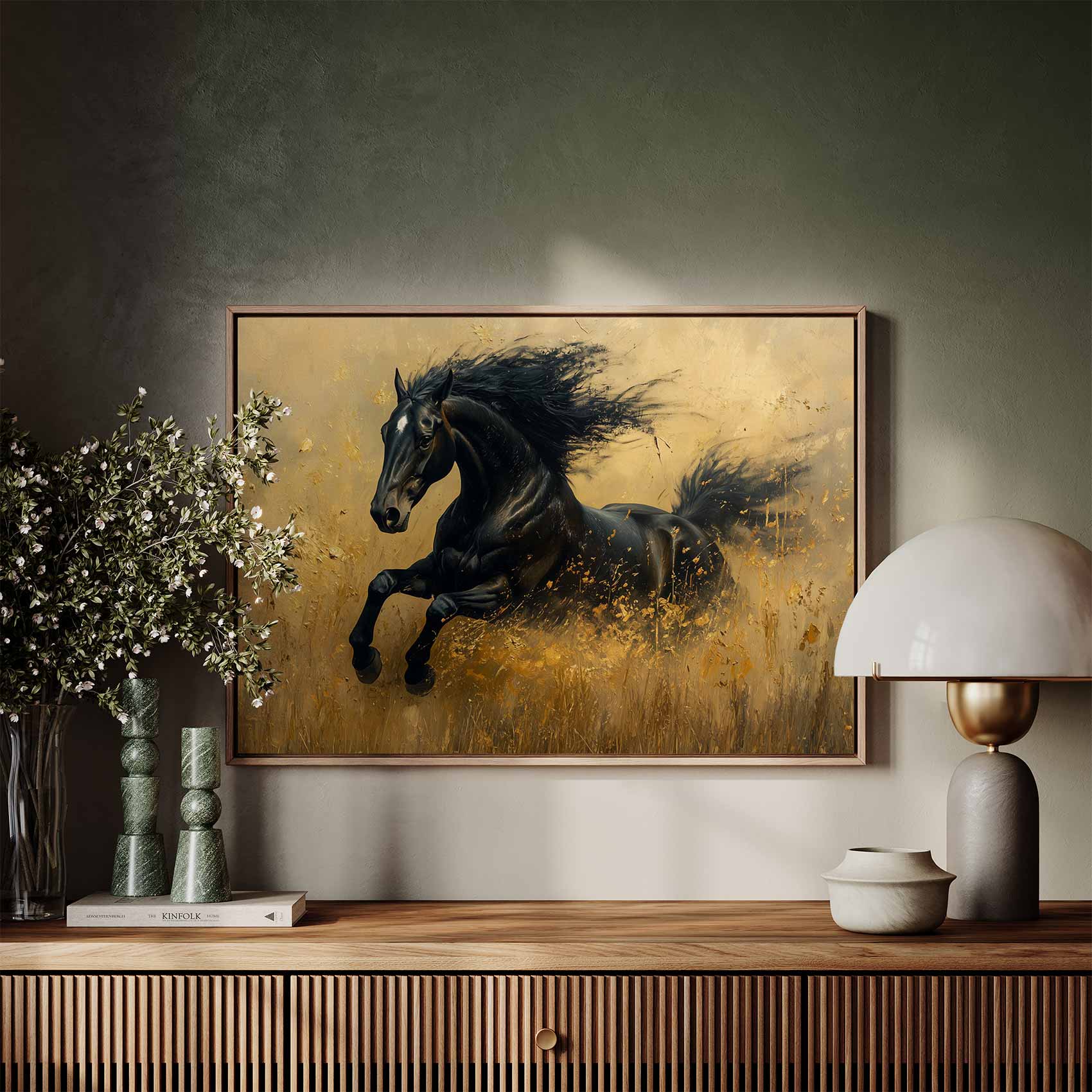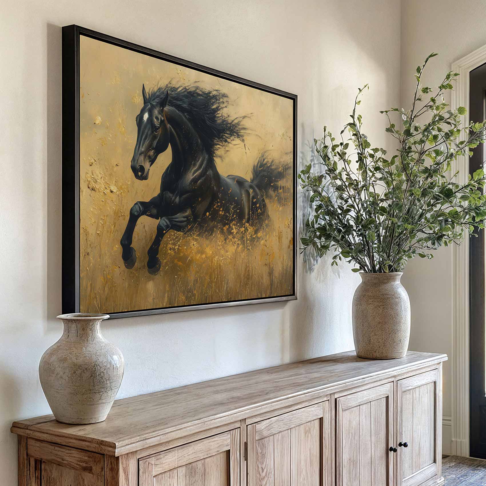 Terug naar collectie / Schilderijen / Dieren Schilderij / Zwart paard in gouden veld