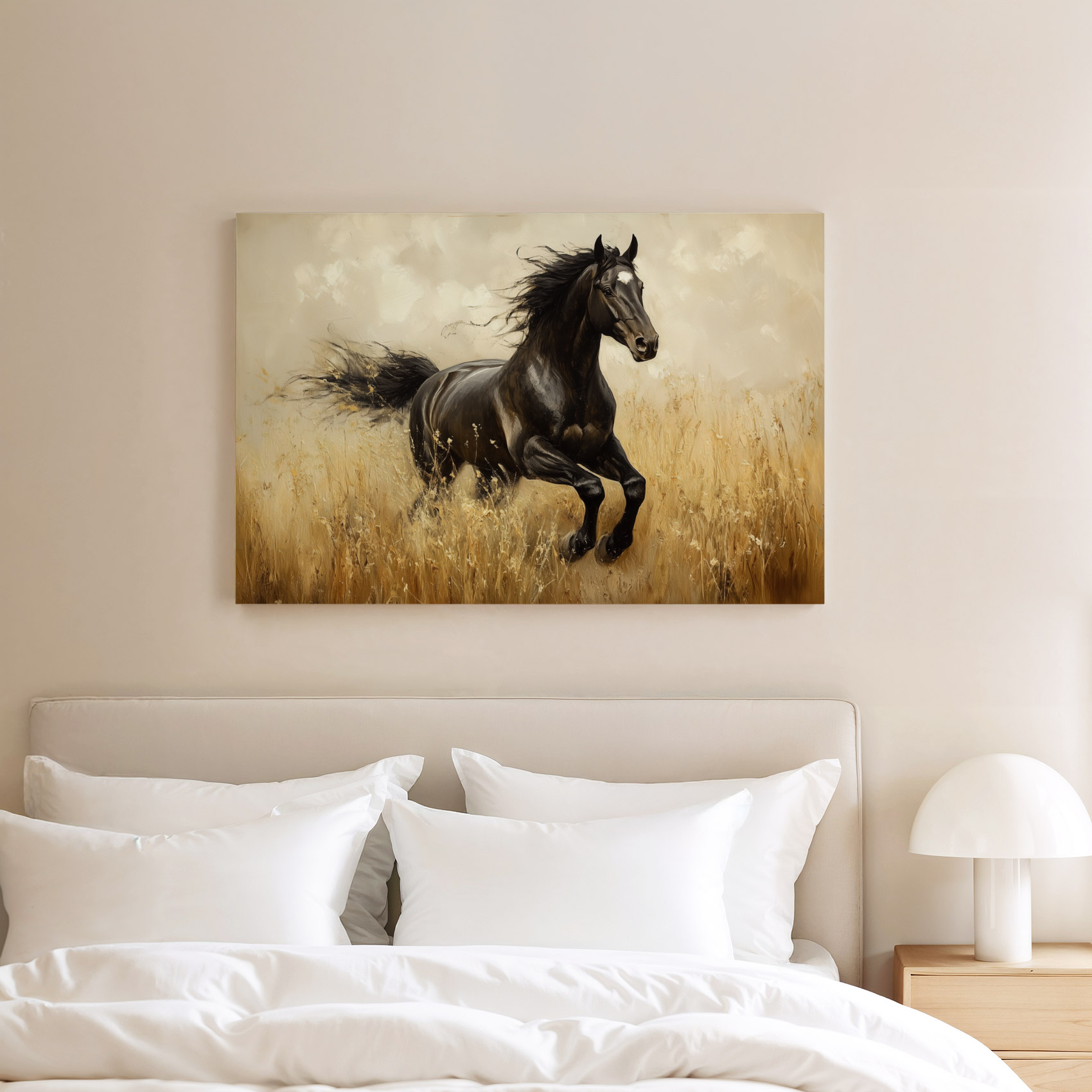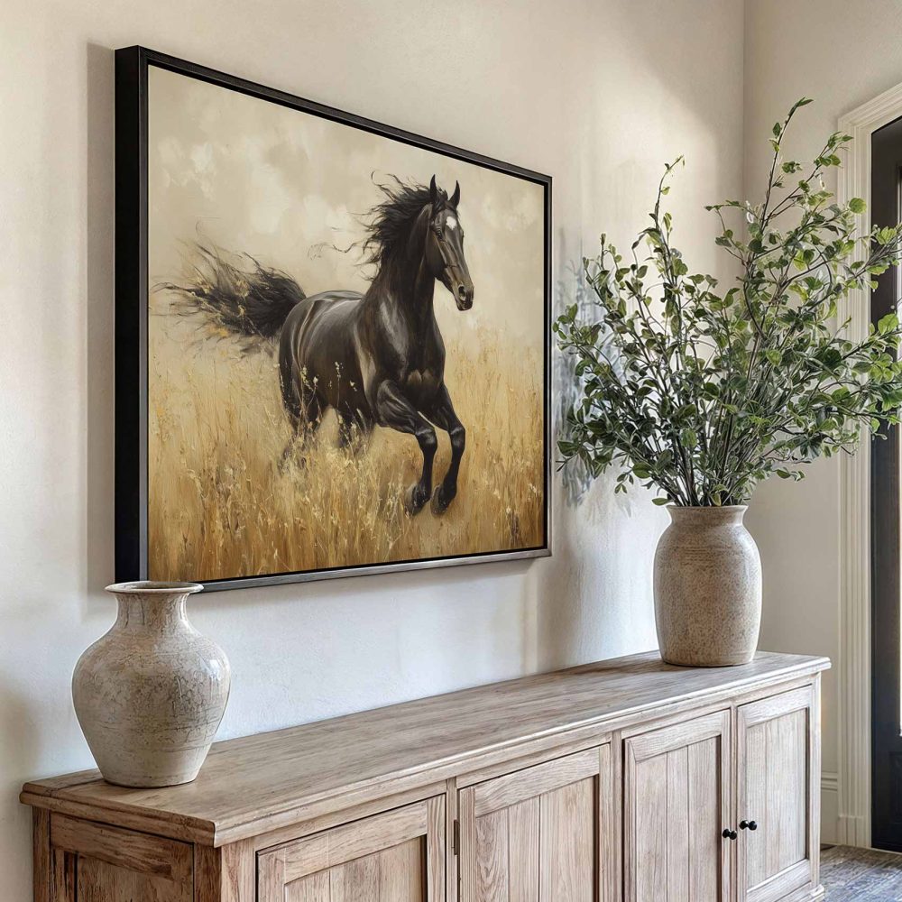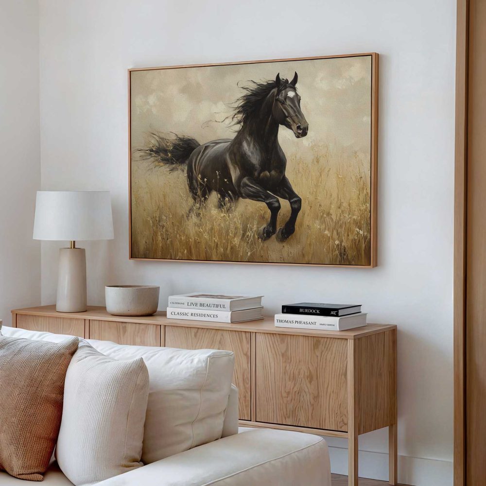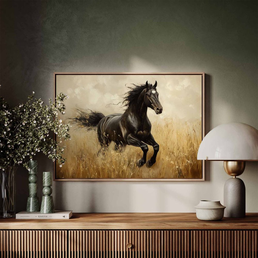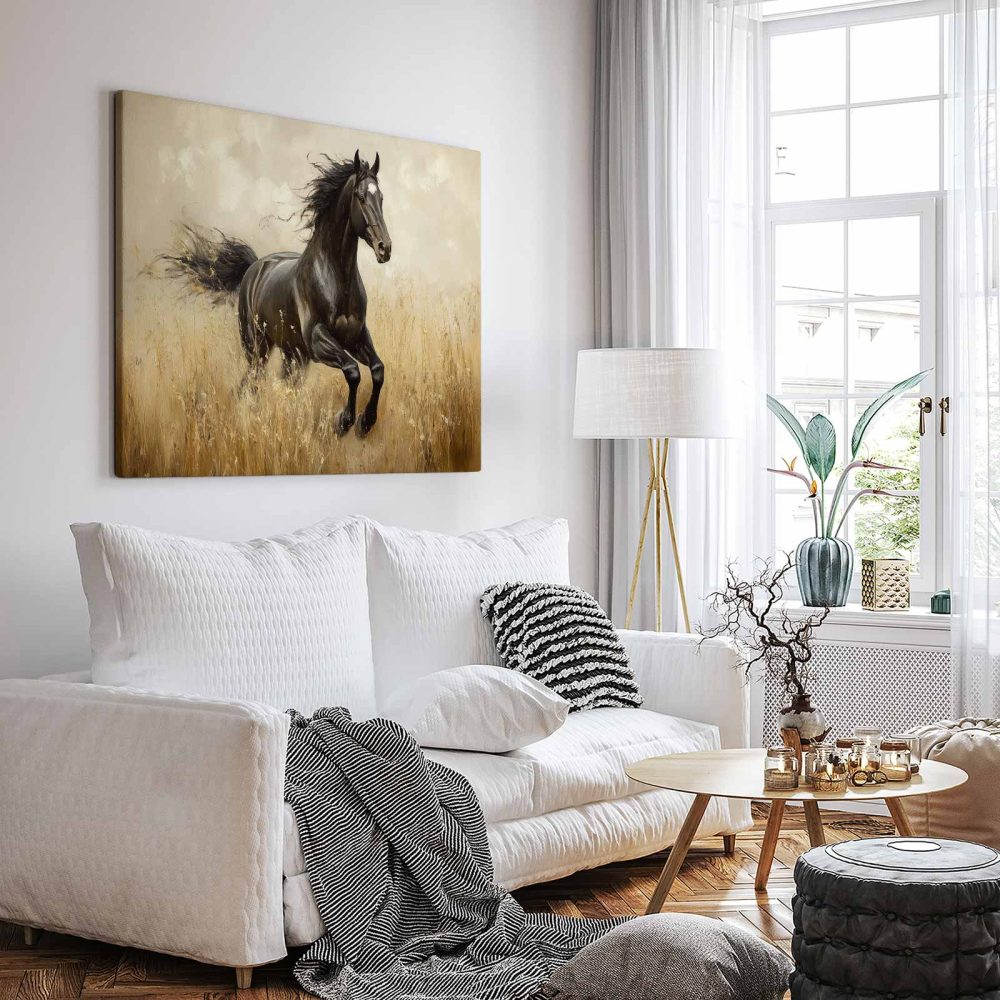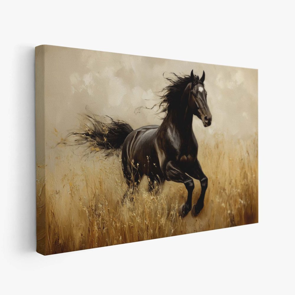 Terug naar collectie / Schilderijen / Dieren Schilderij / Zwart paard in volle galop